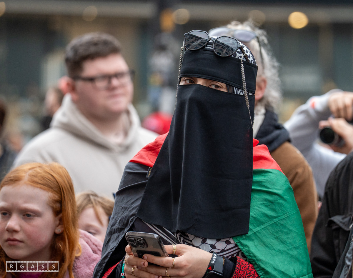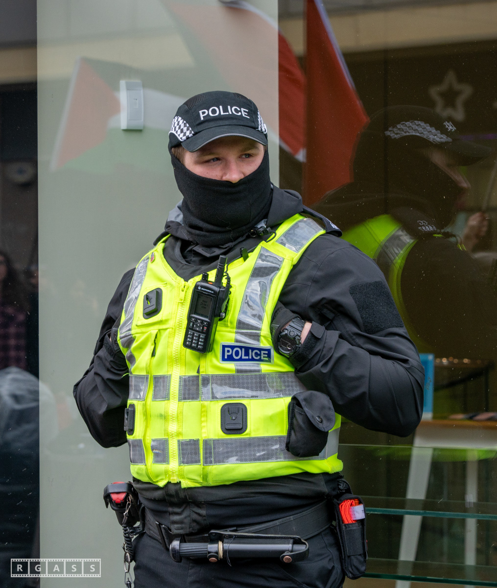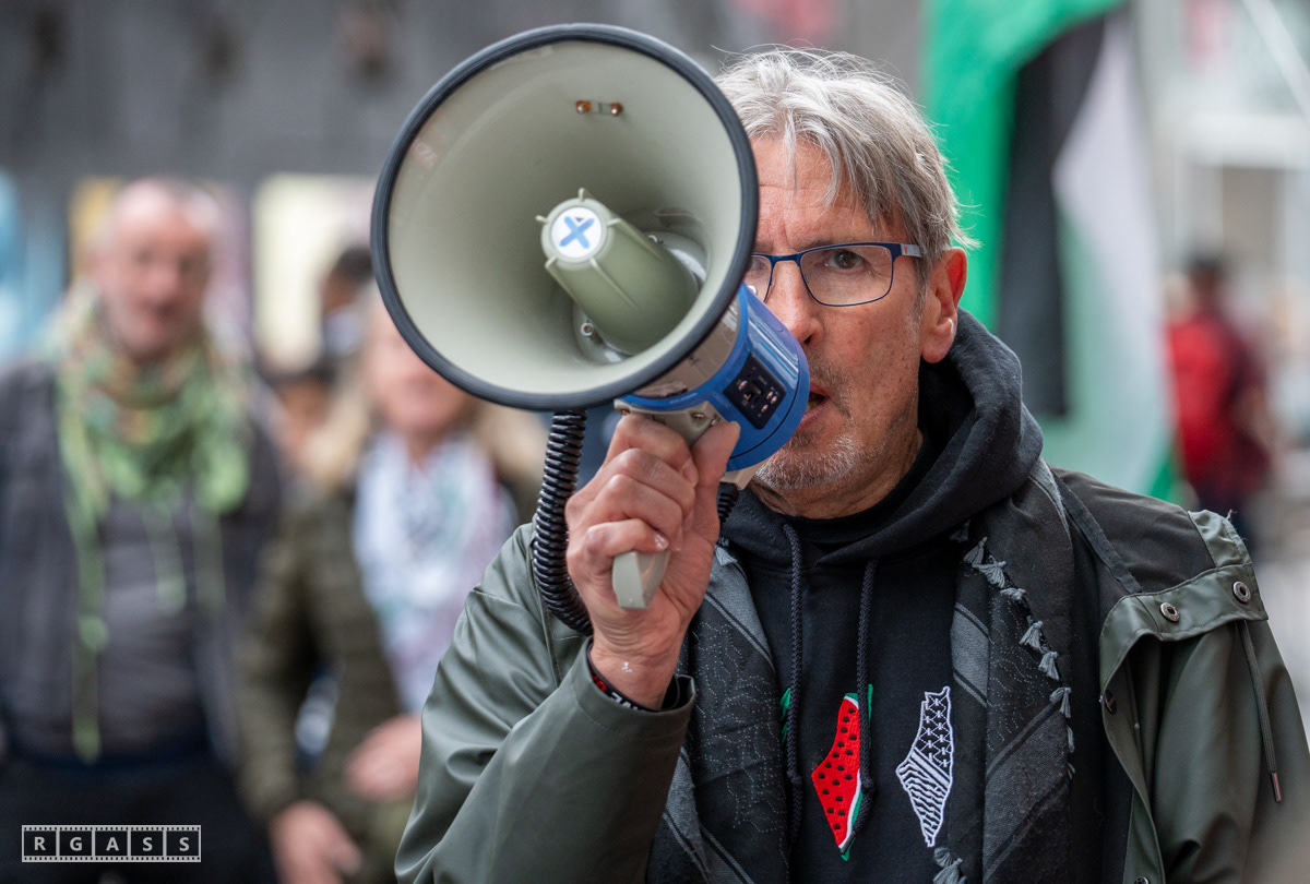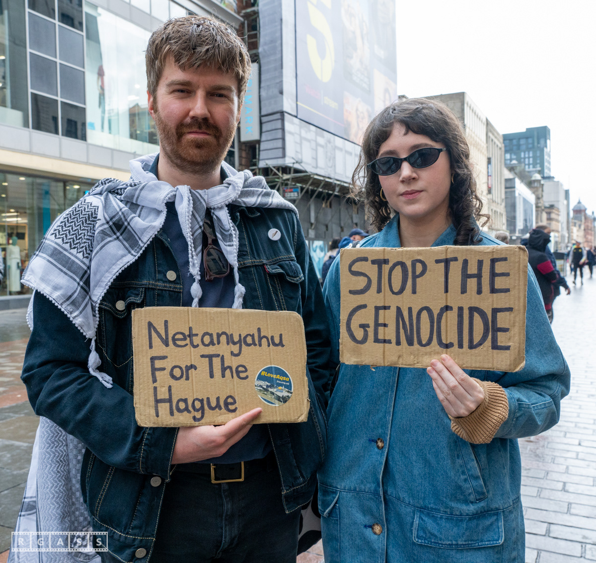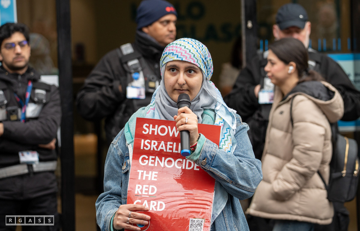 Glasgow uk. 22 March 2025. Pro-Palestine supporters at the weekly protest outside Barclays Bank on Argyll Street Glasgow