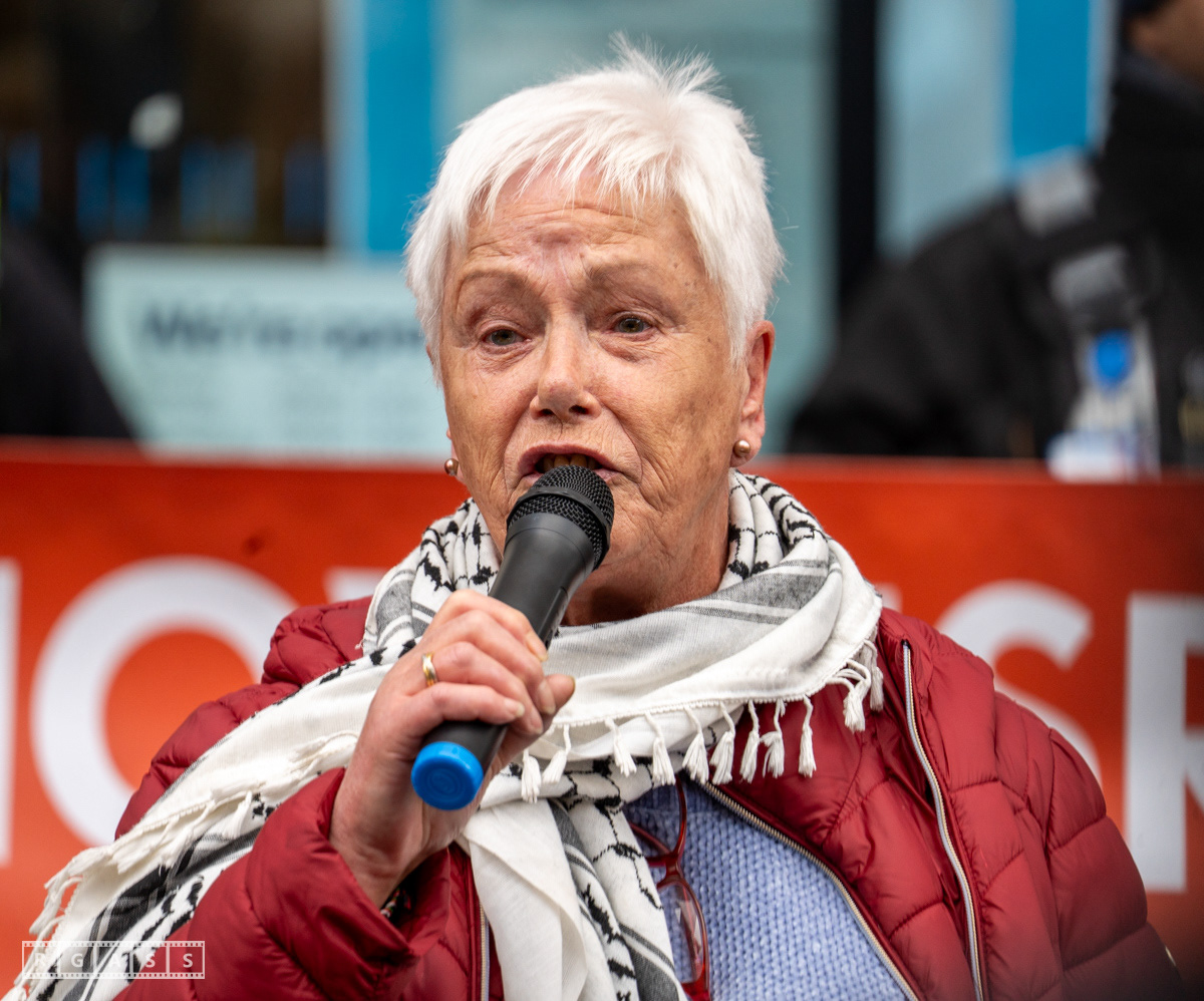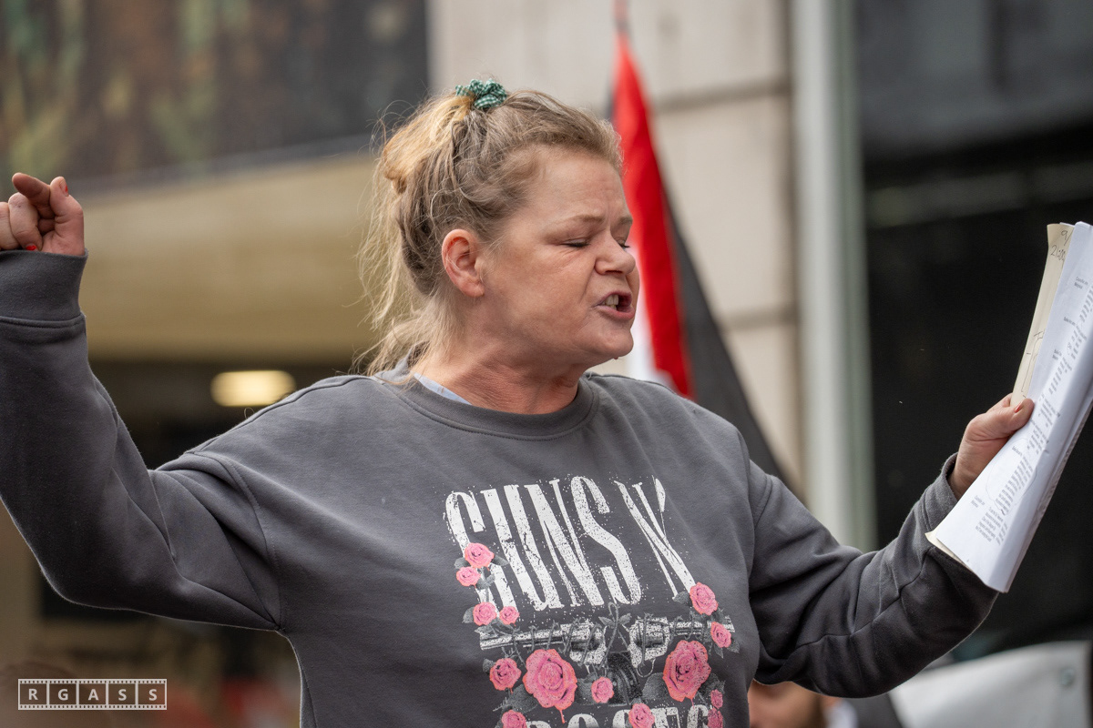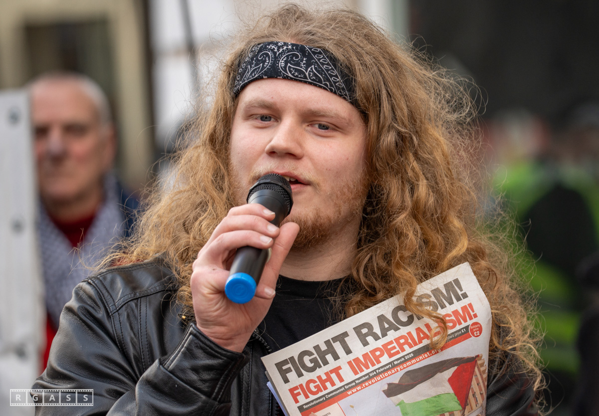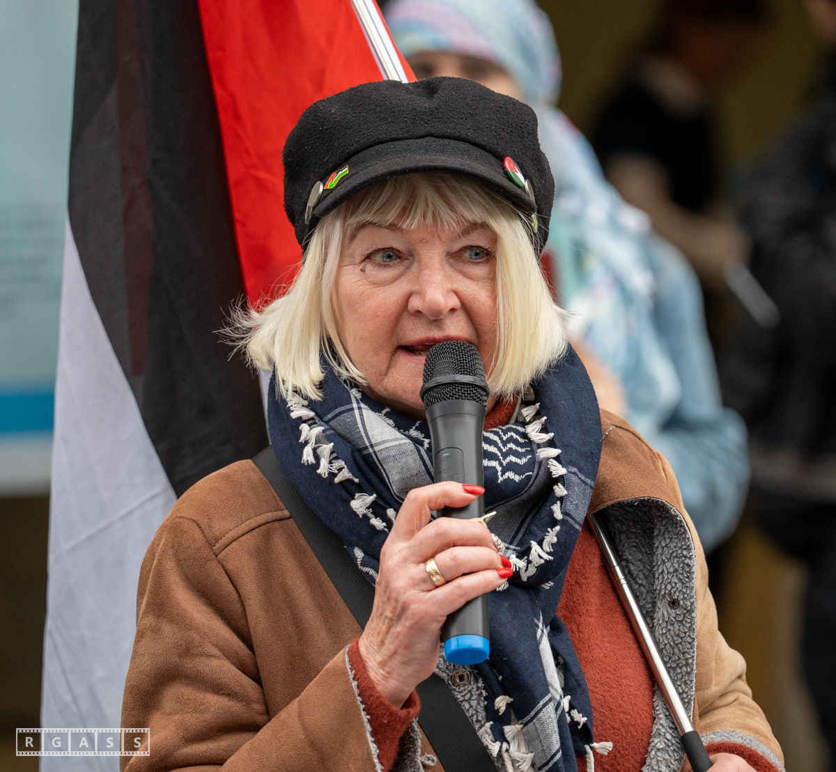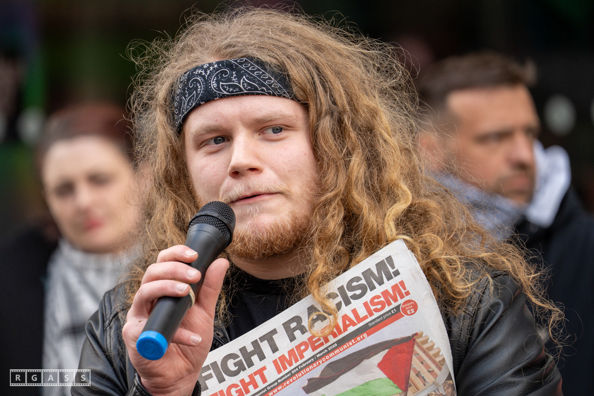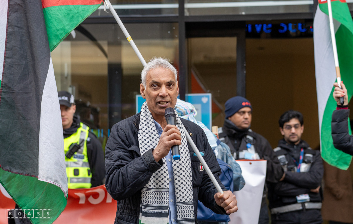 Glasgow uk. 22 March 2025. Pro-Palestine supporters at the weekly protest outside Barclays Bank on Argyll Street Glasgow