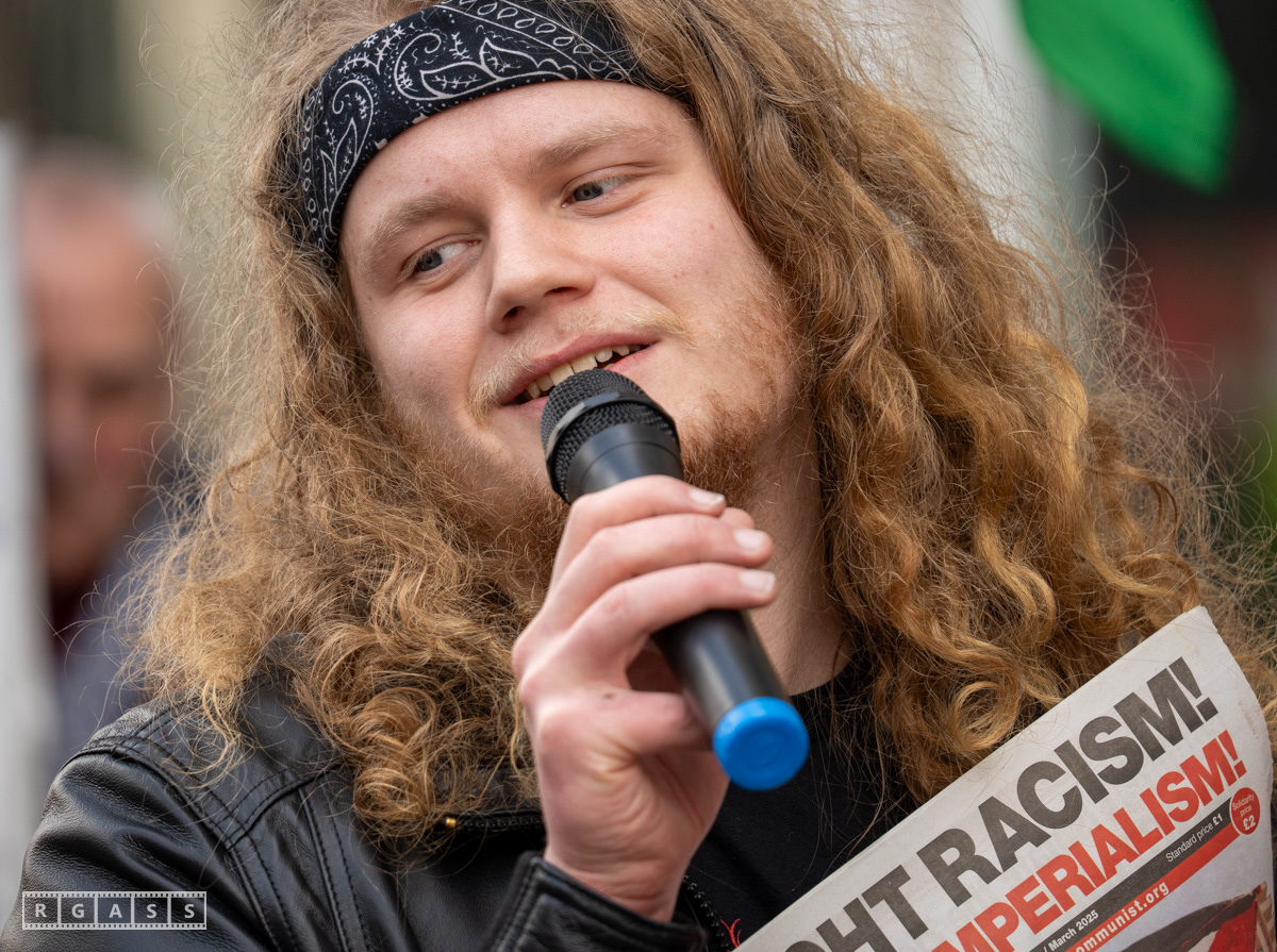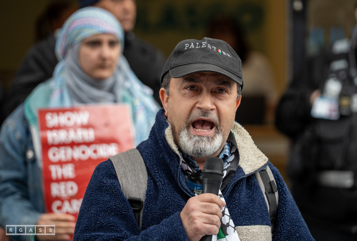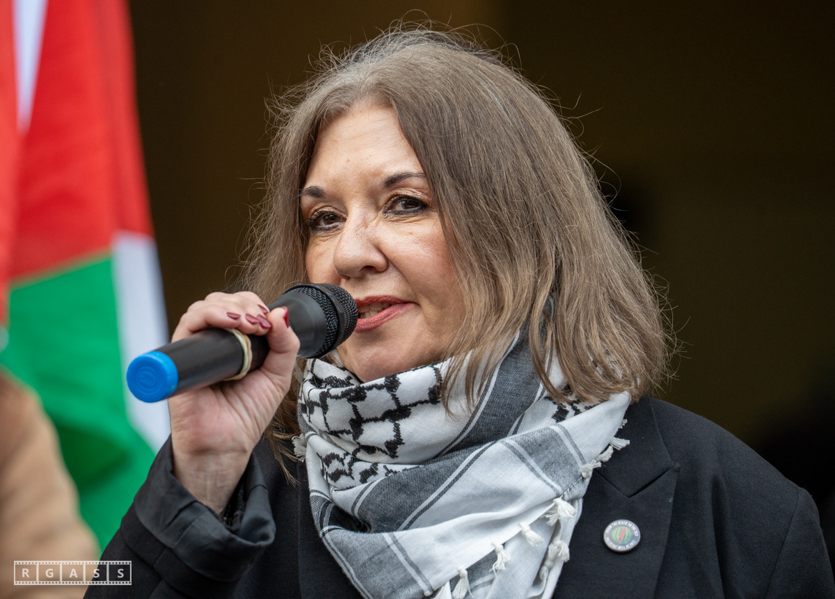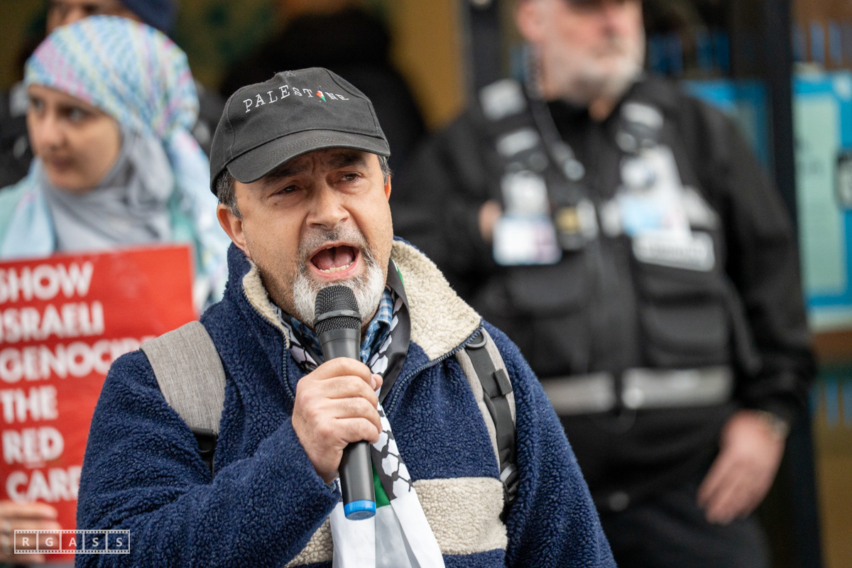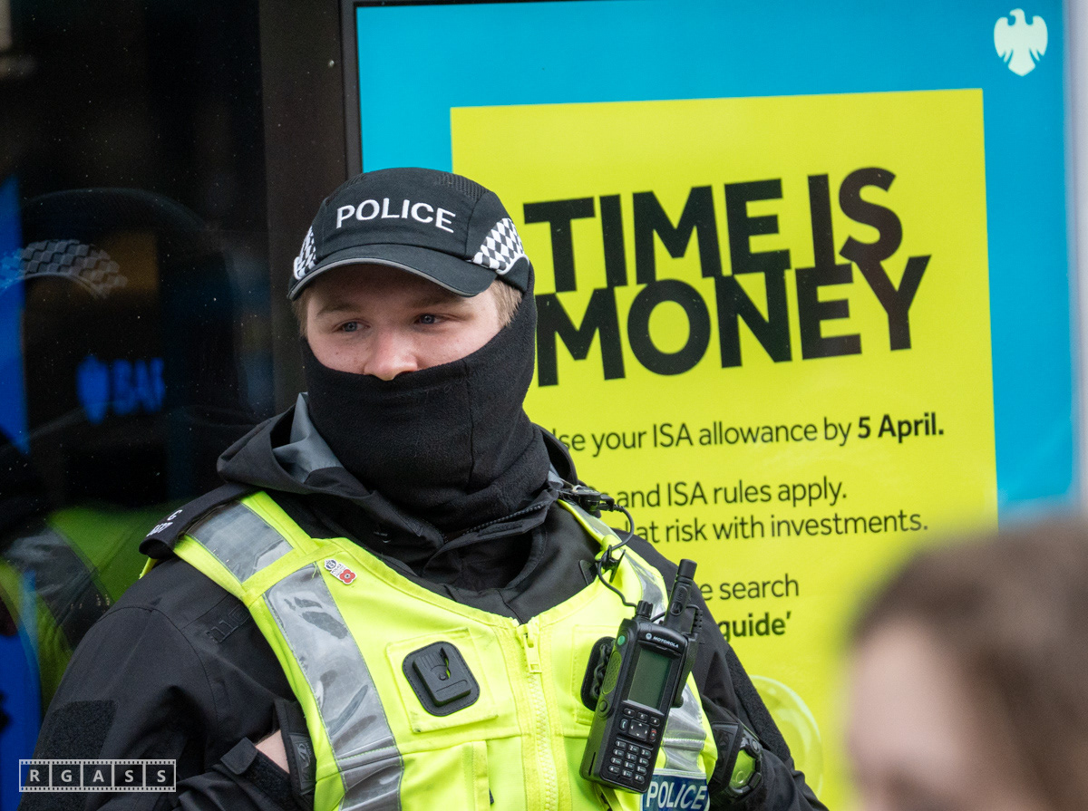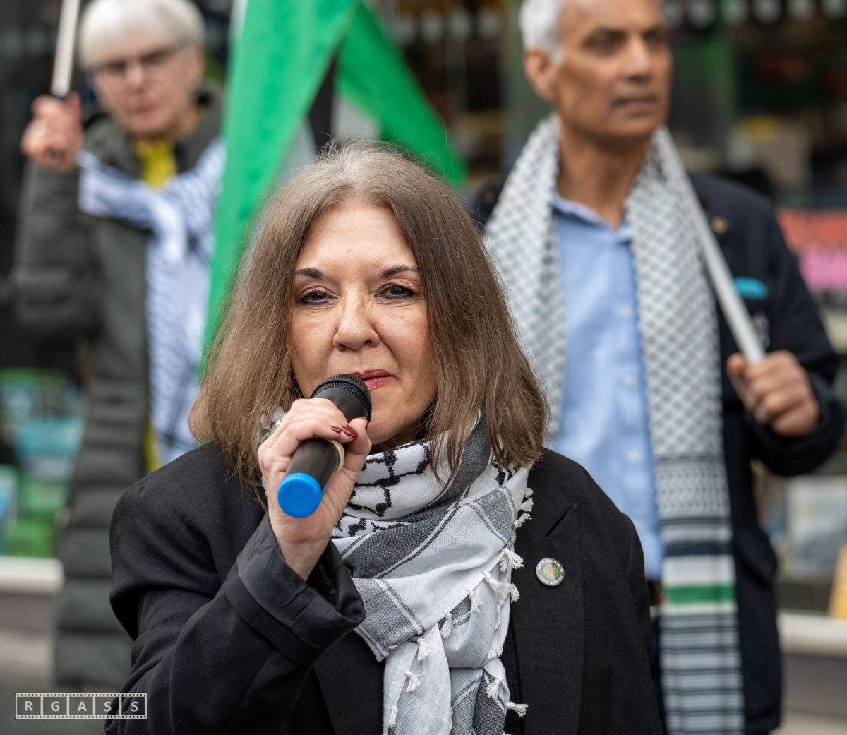 Glasgow uk. 22 March 2025. Pro-Palestine supporters at the weekly protest outside Barclays Bank on Argyll Street Glasgow