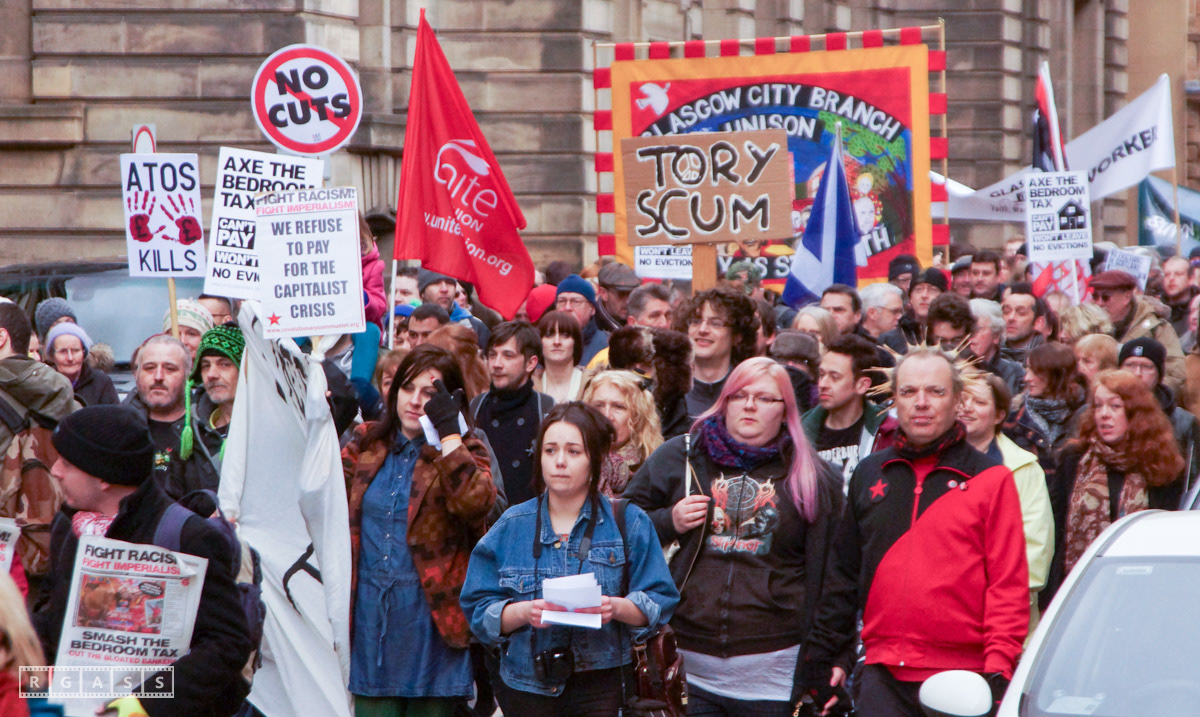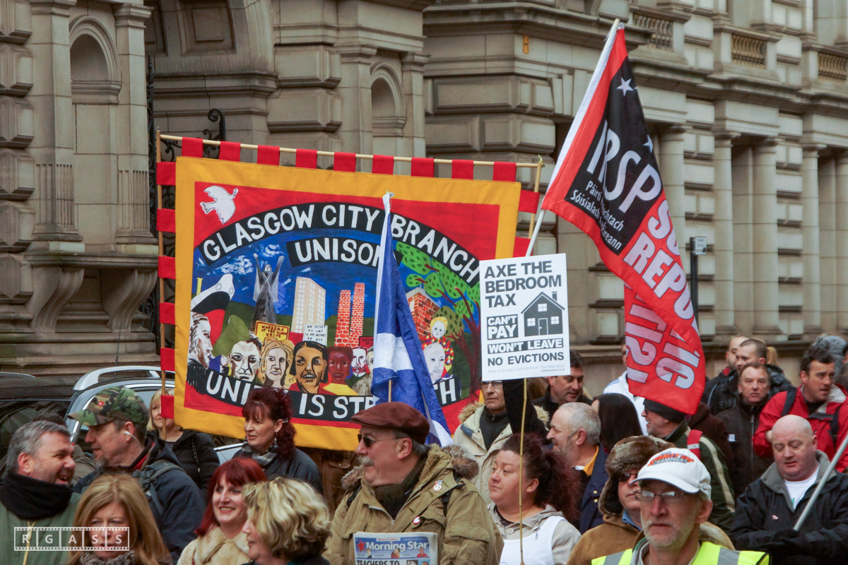 Protest march in Glasgow from Glasgow Green to George Square against the Governments new Bedroom tax