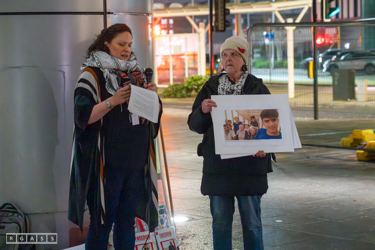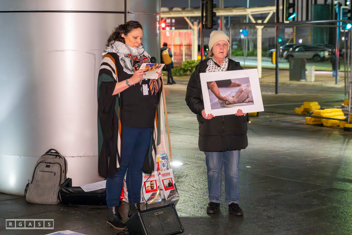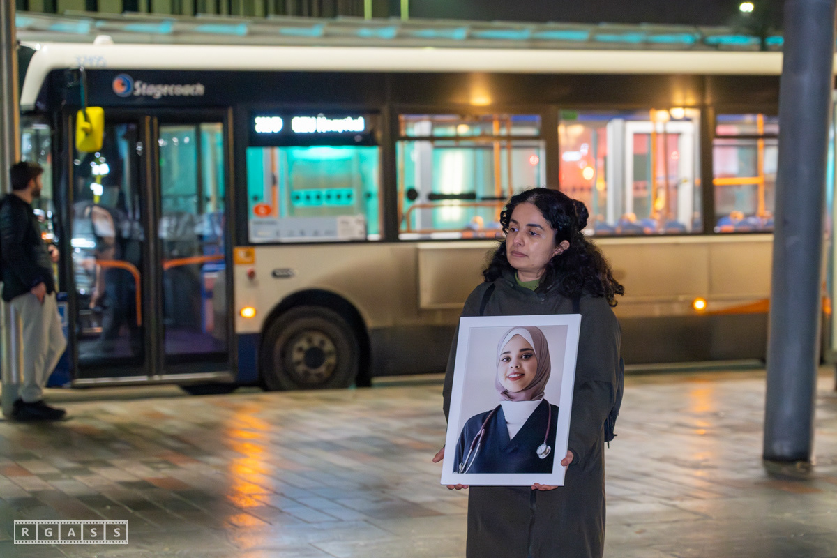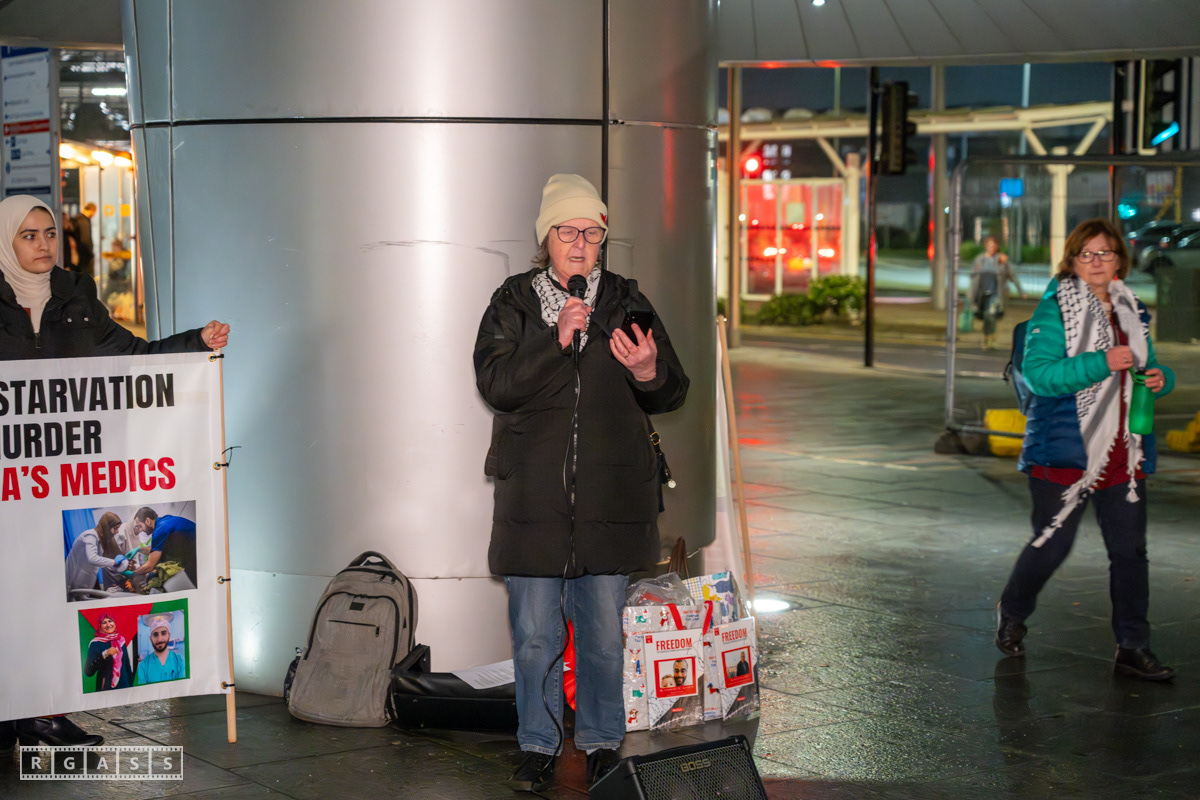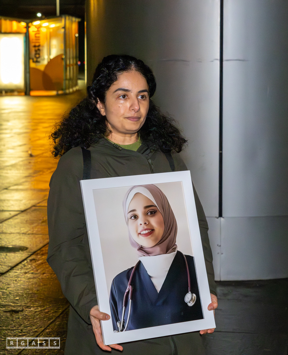 Glasgow, UK. 31 January 2025. Health Workers 4 Palestine vigil outside the main entrance to the Queen Elizabeth Hospital.