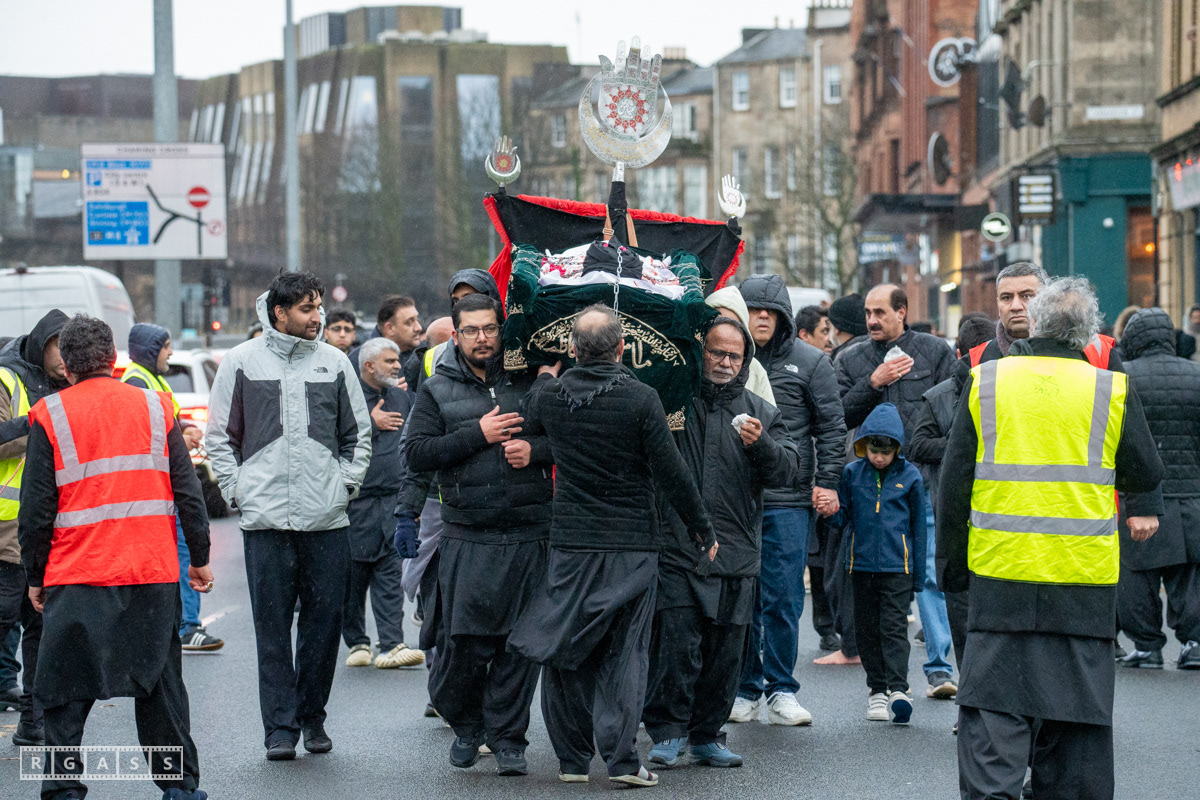 Glasgow, UK. 26th January, 2025 Shia Muslims commemorate the Martyrdom of Imam Musa al-Kadhim, chanting and beating their chests. Shia Asna Ashri Islamic Centre Glasgow