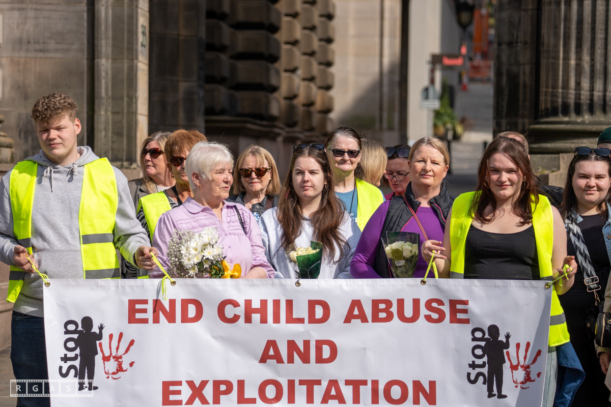 Glasgow UK. 12 April 2025. Million Women March Glasgow from John Street to Glasgow Green to demand an end to child abuse and to highlight the failure of systems intended to protect children.