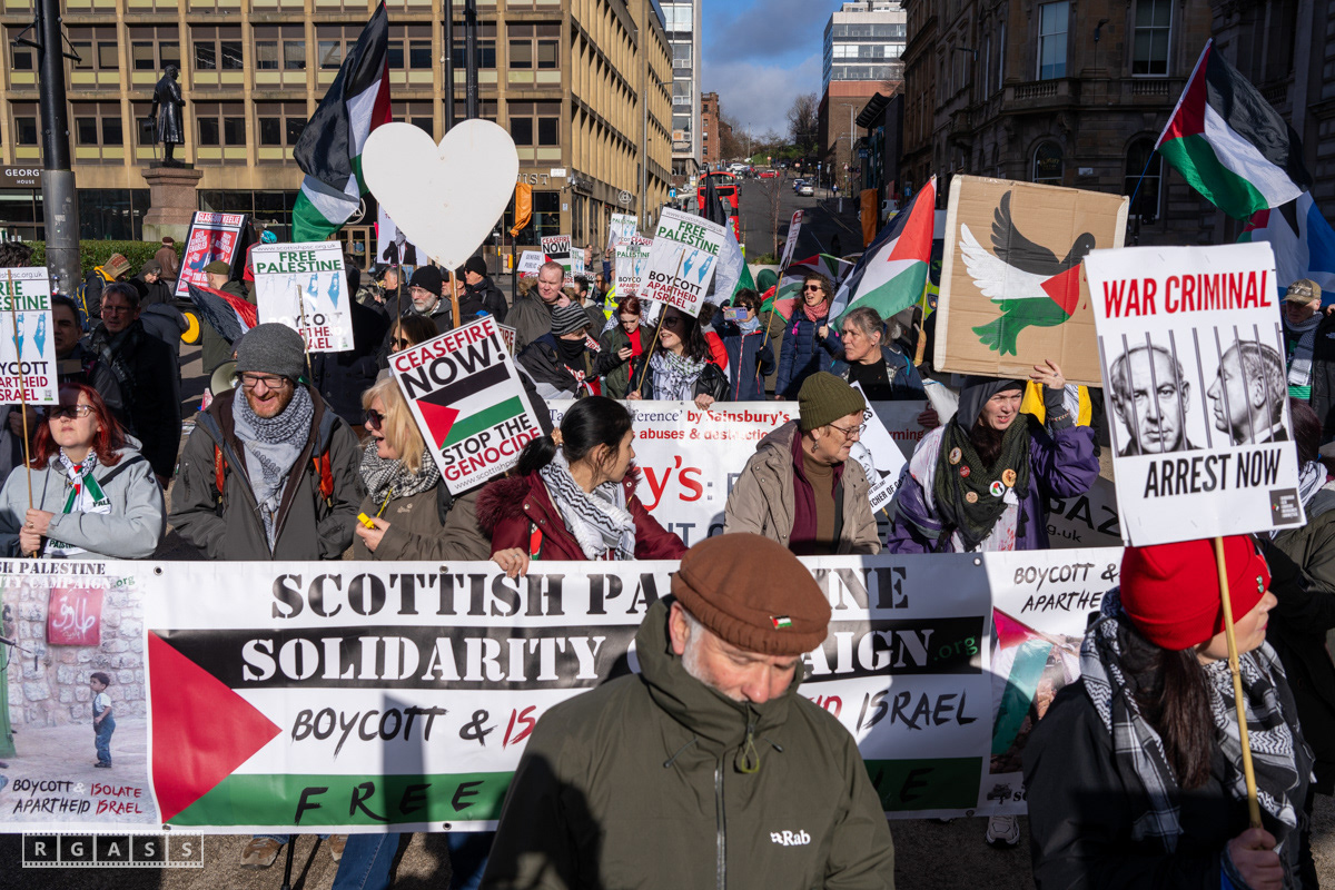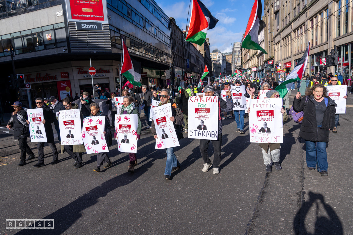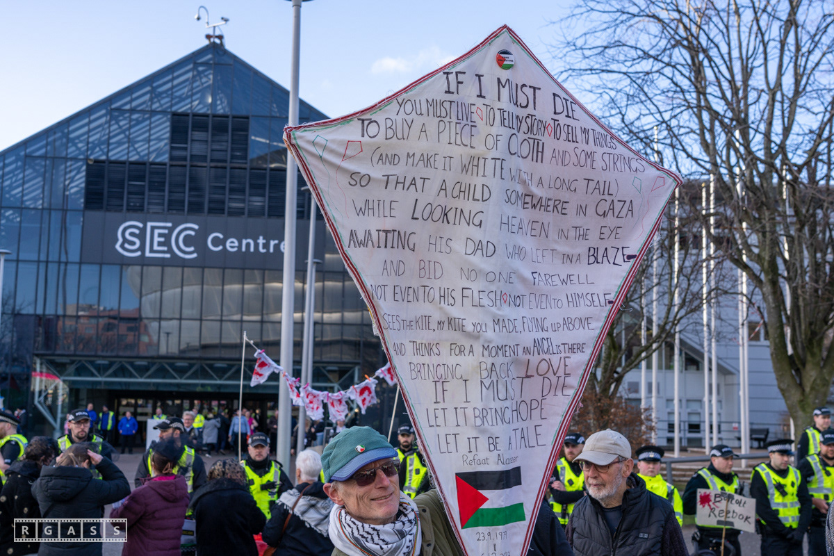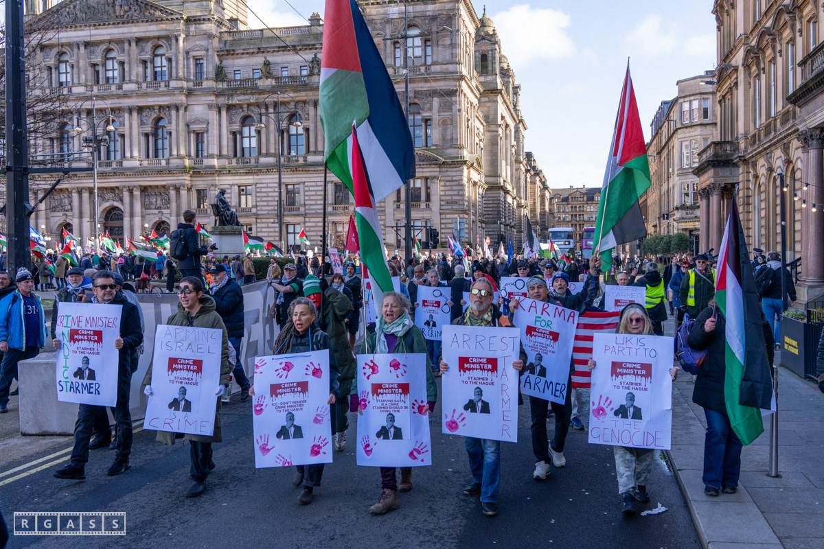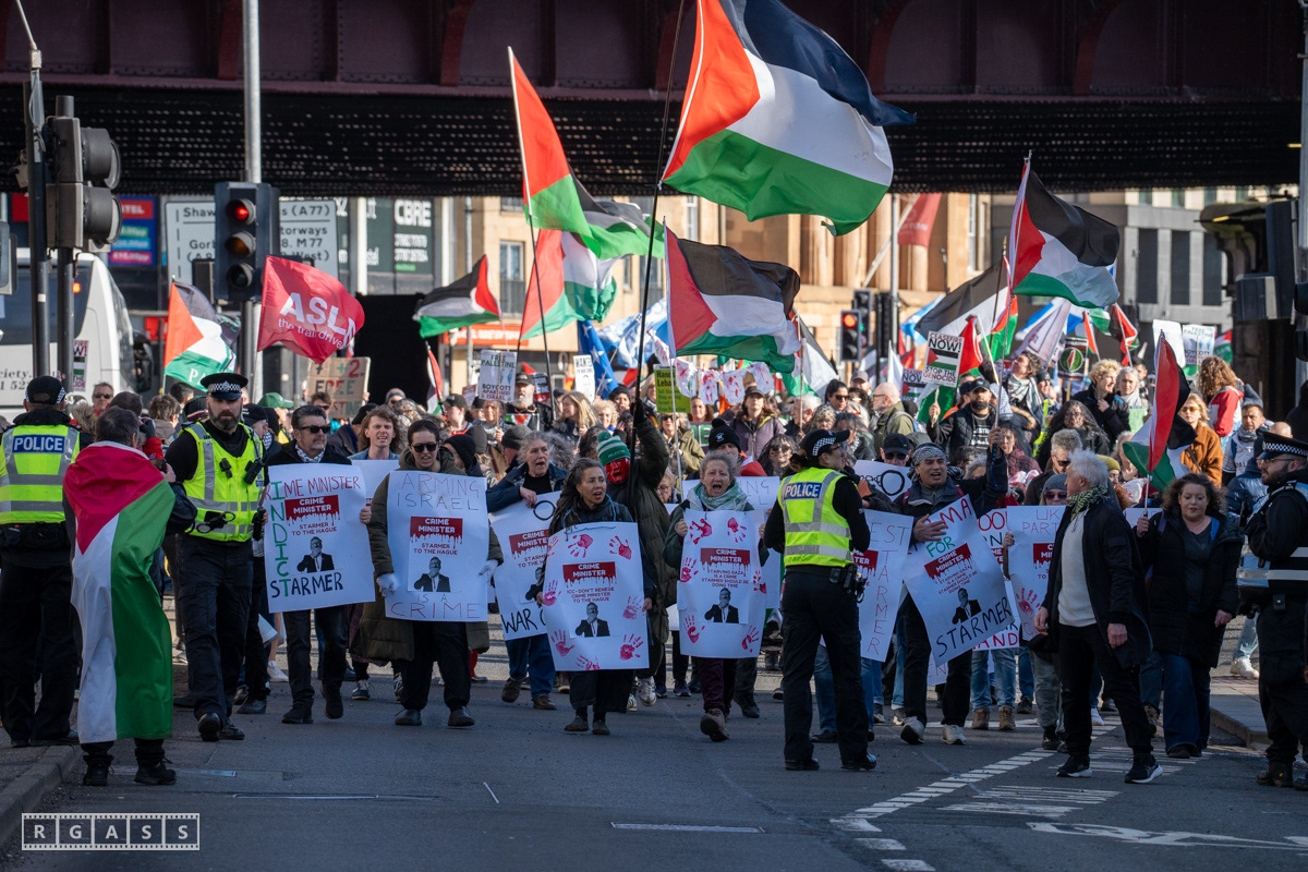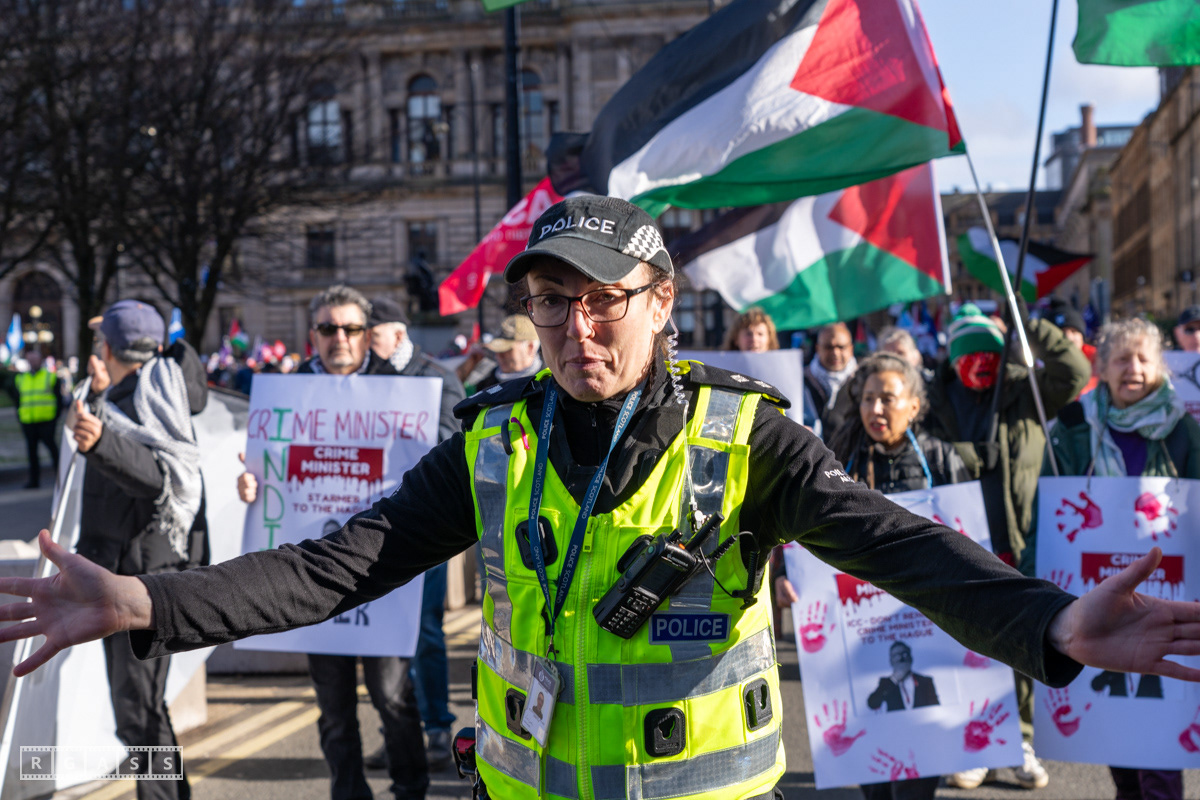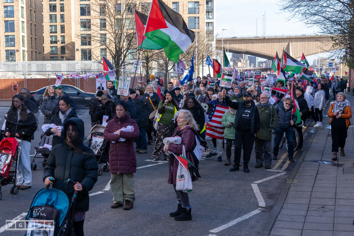 Glasgow, UK. 22nd Feb, 2025. Pro-Palestinian march from George Square to a rally to protest outside the Scottish Labour Party Conference at the SEC.