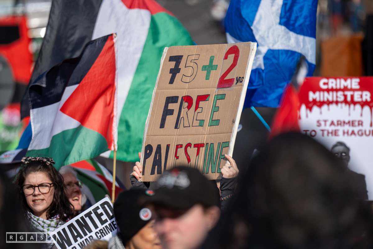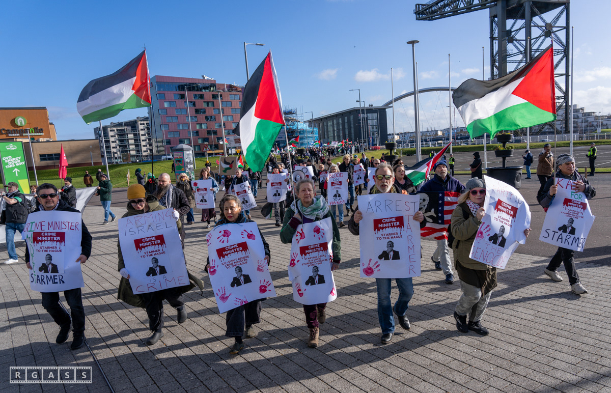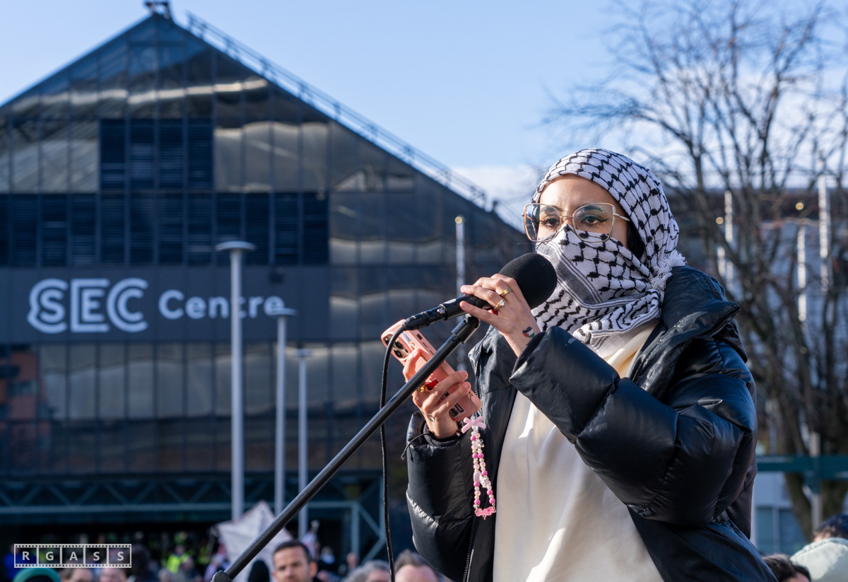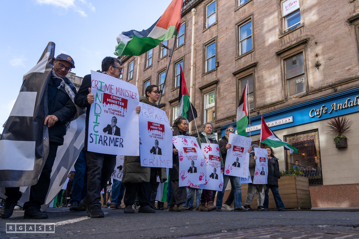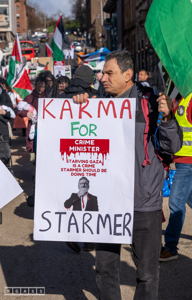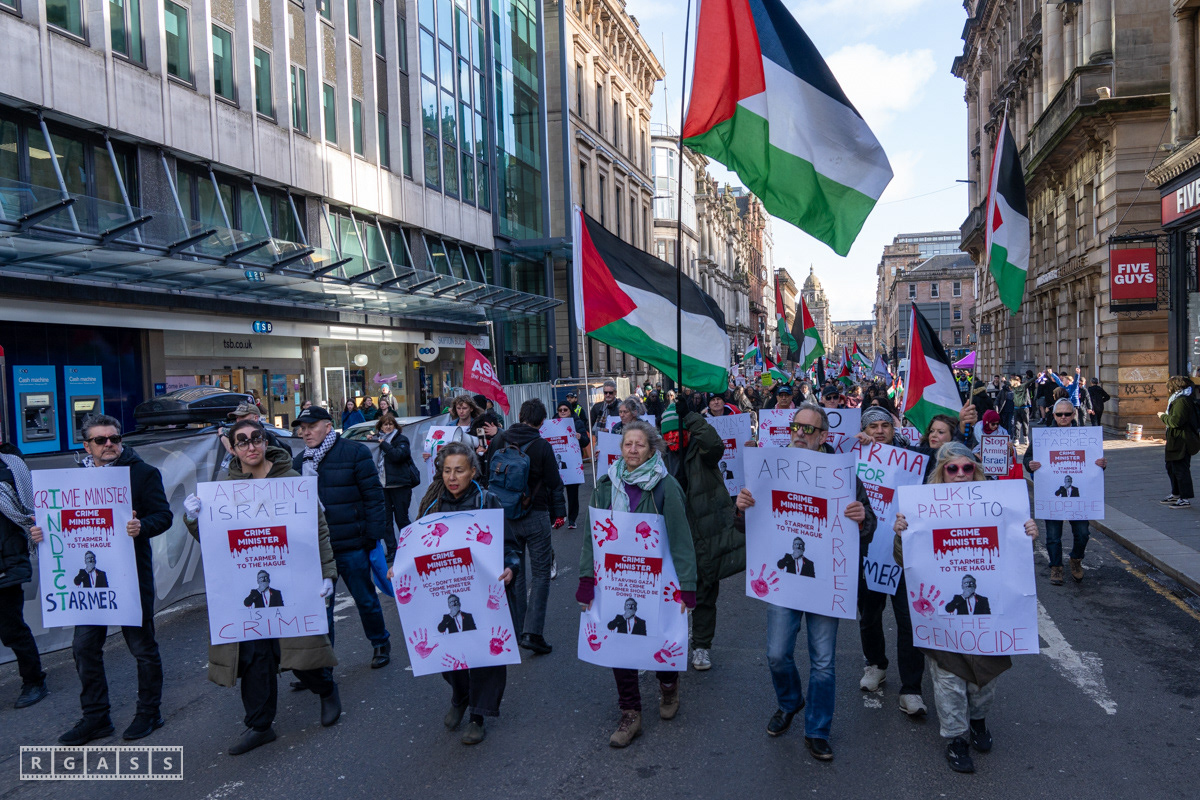 Glasgow, UK. 22nd Feb, 2025. Pro-Palestinian march from George Square to a rally to protest outside the Scottish Labour Party Conference at the SEC.