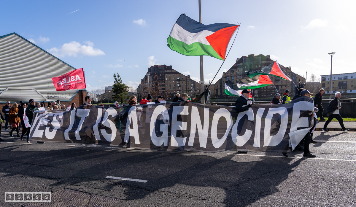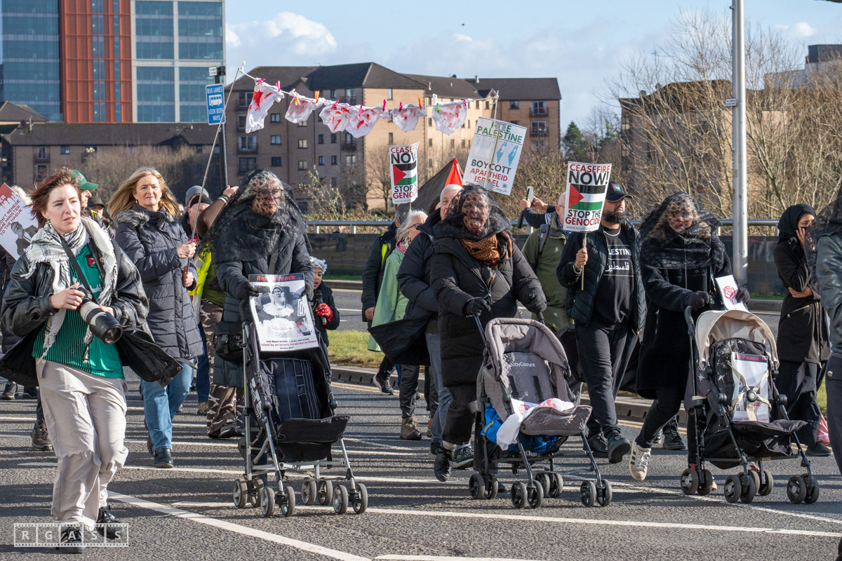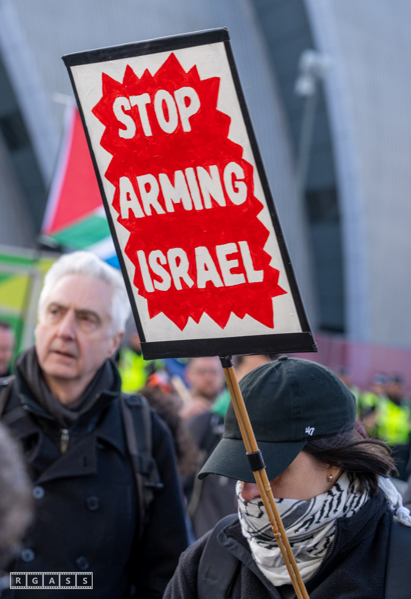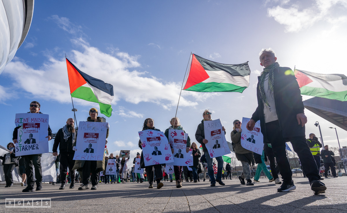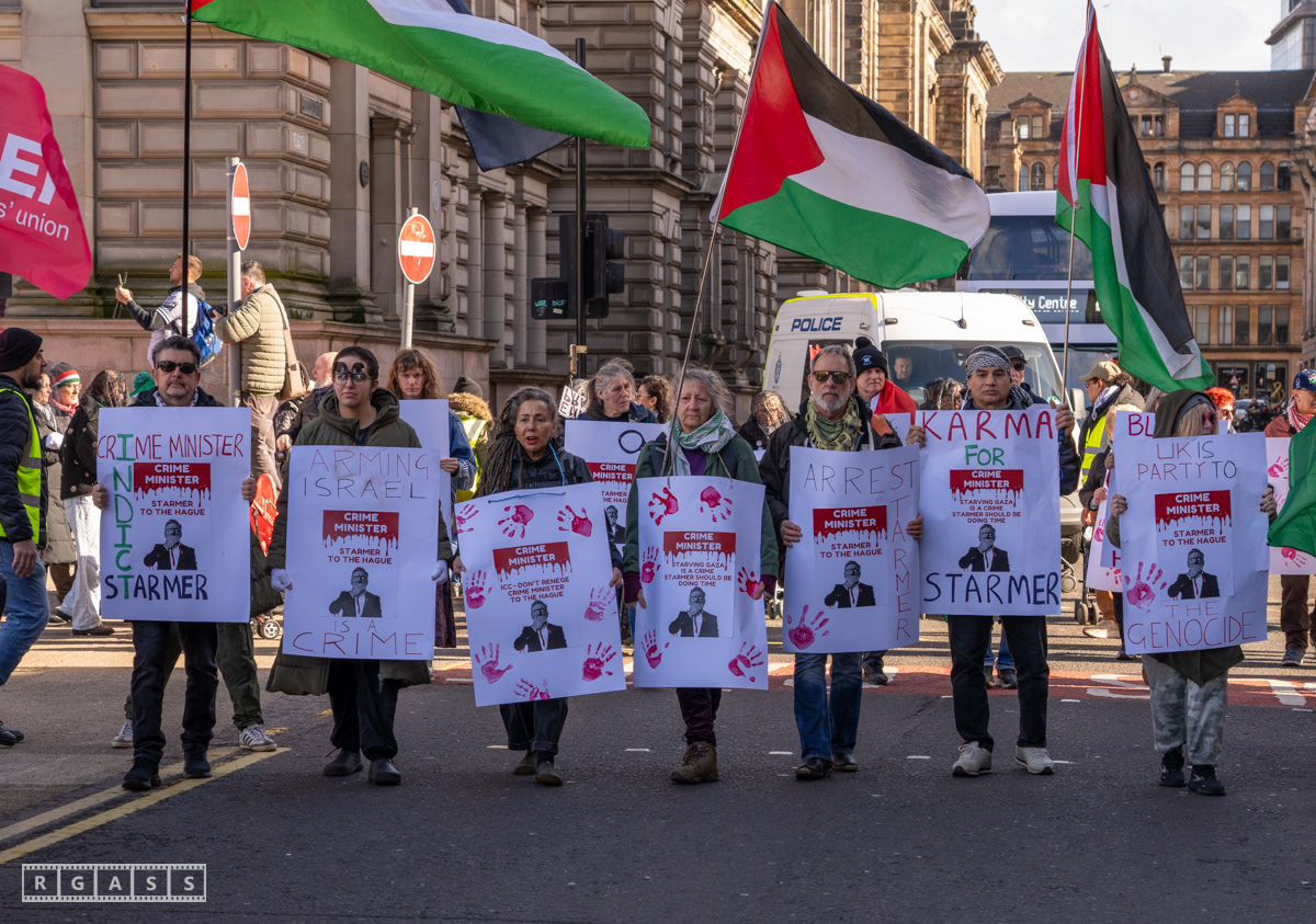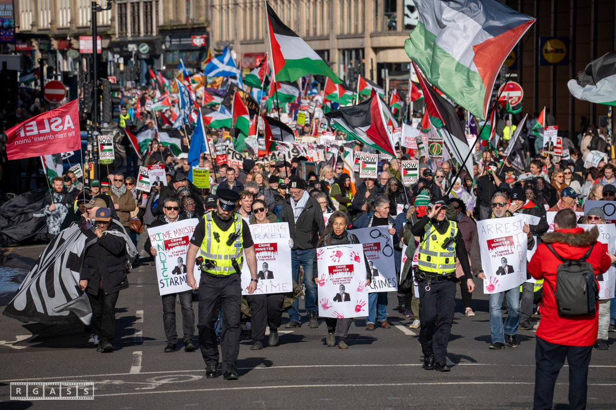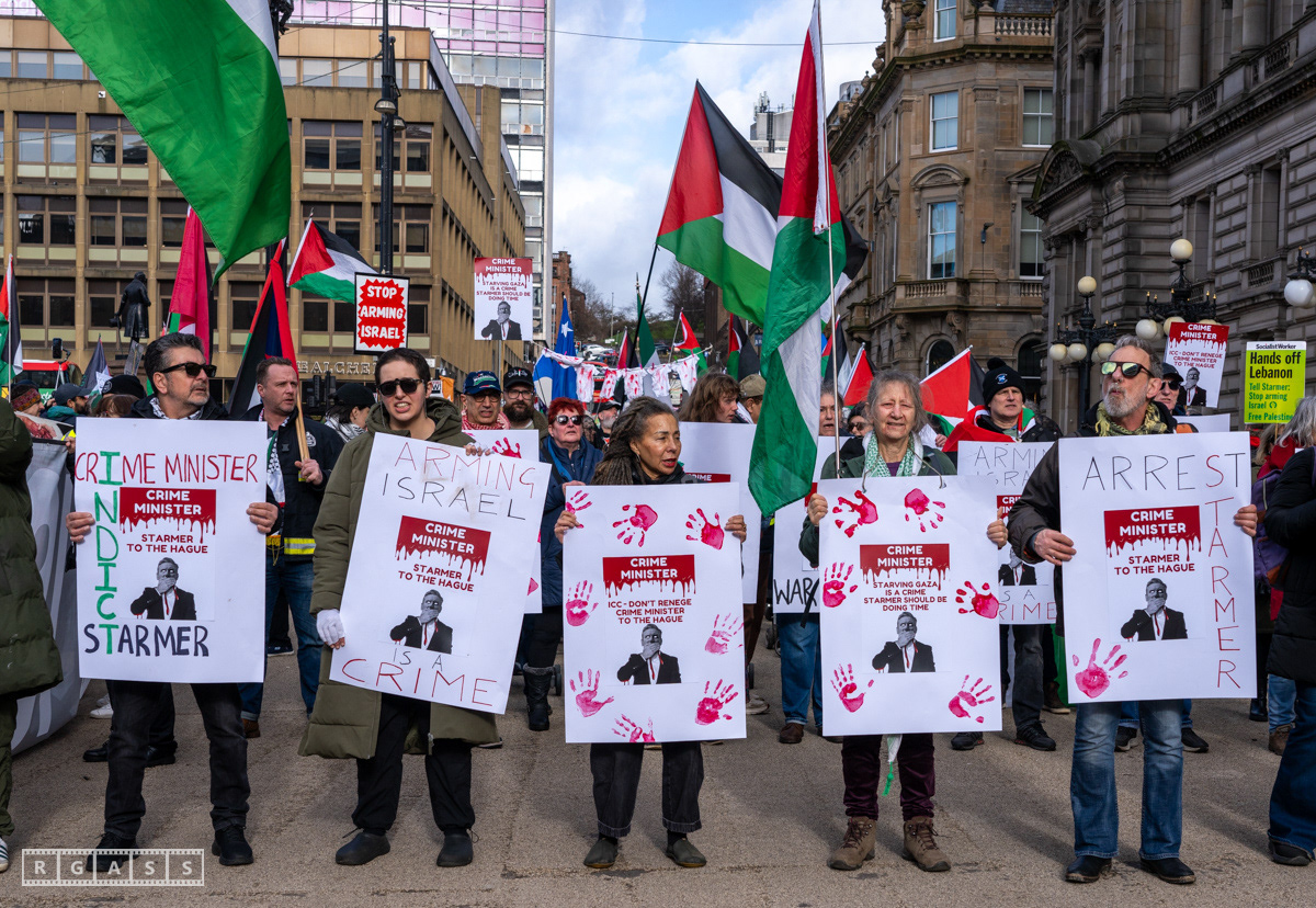 Glasgow, UK. 22nd Feb, 2025. Pro-Palestinian march from George Square to a rally to protest outside the Scottish Labour Party Conference at the SEC.