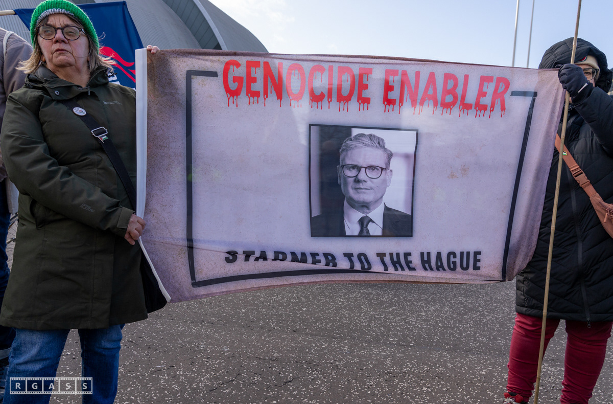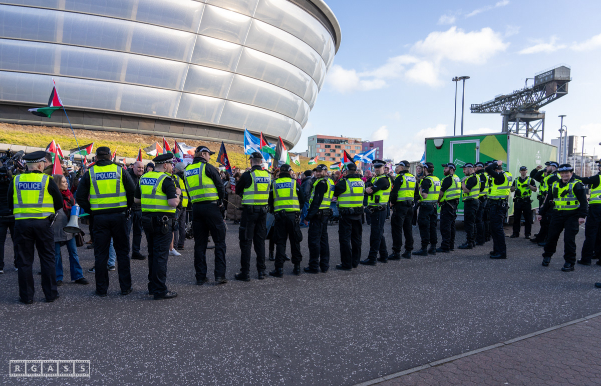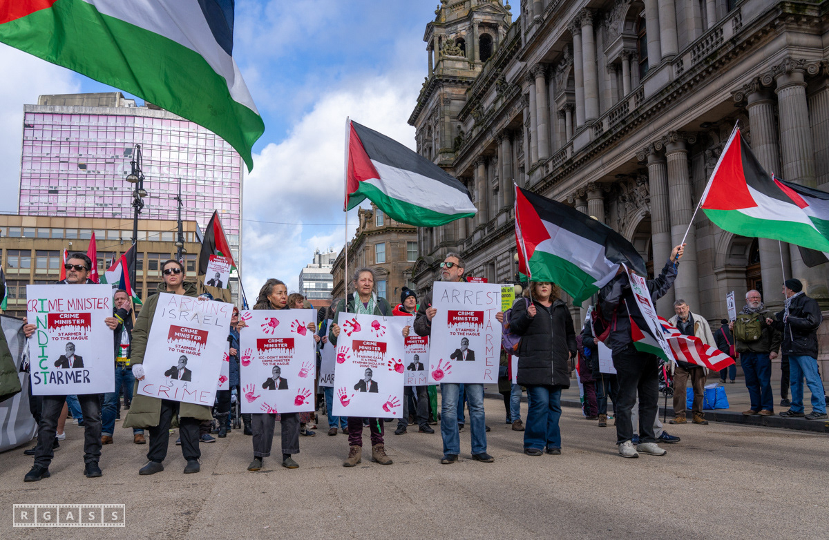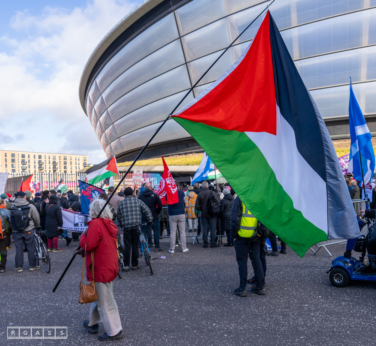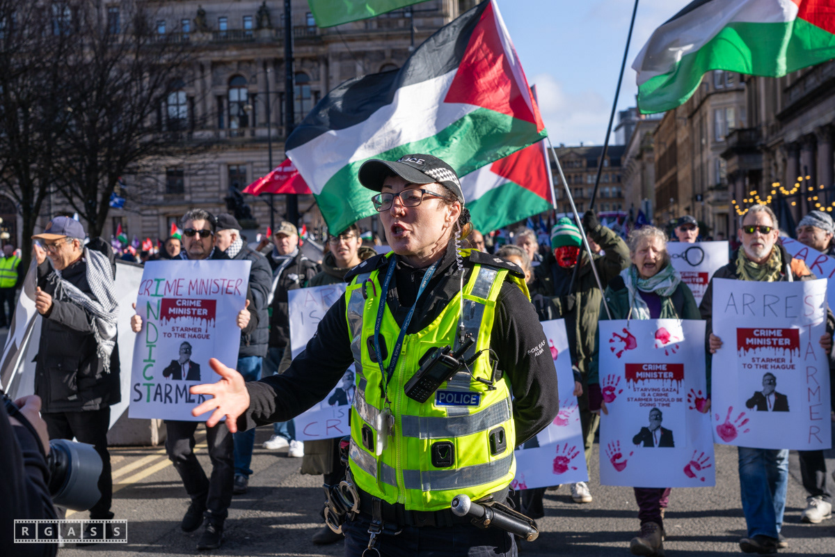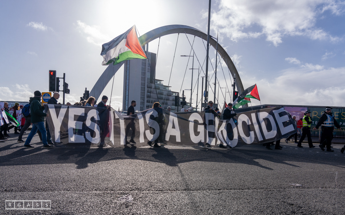 Glasgow, UK. 22nd Feb, 2025. Pro-Palestinian march from George Square to a rally to protest outside the Scottish Labour Party Conference at the SEC.