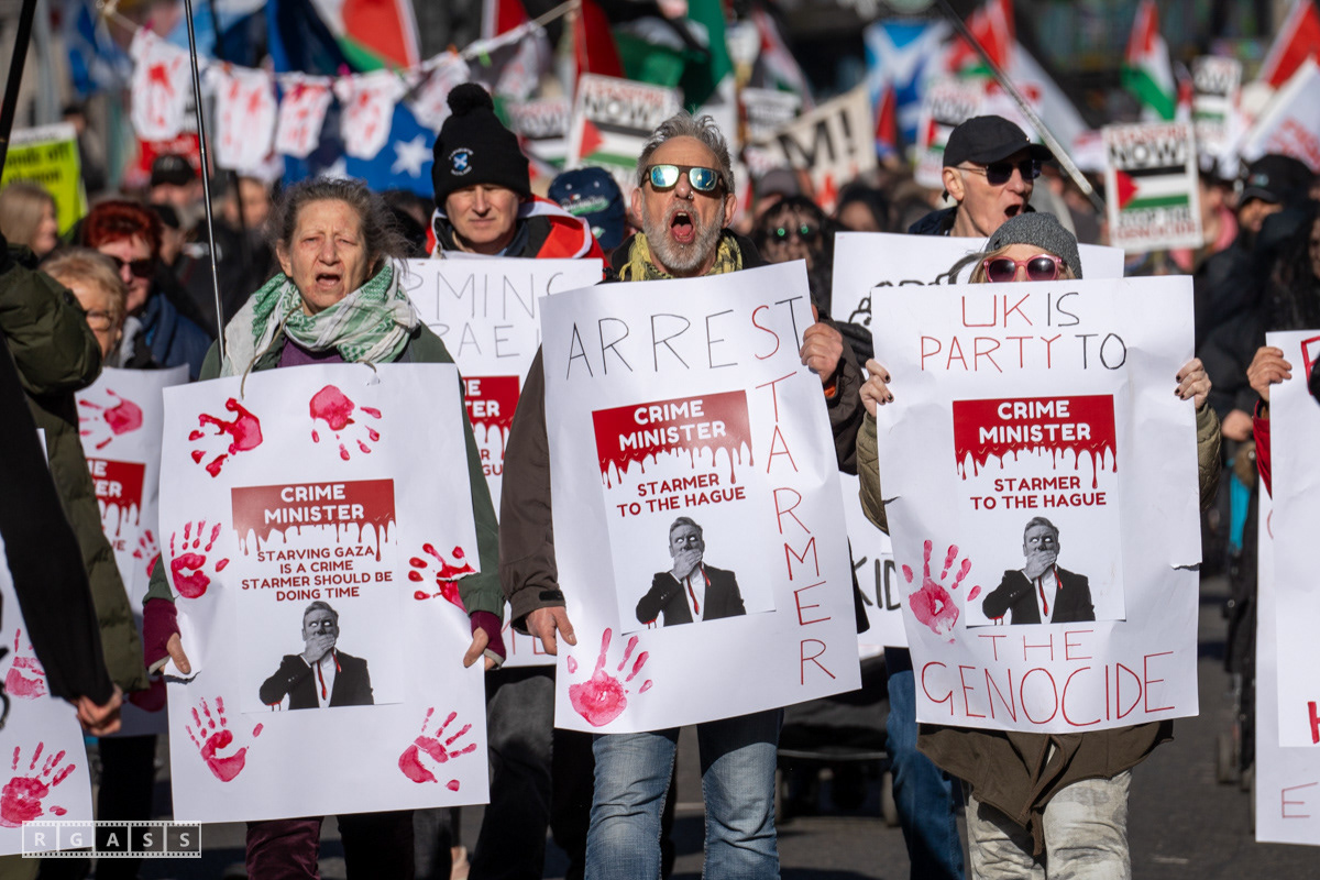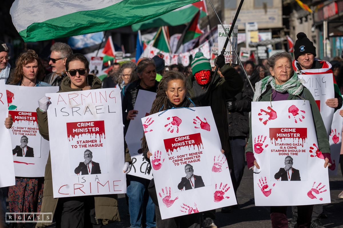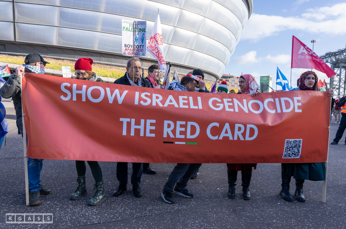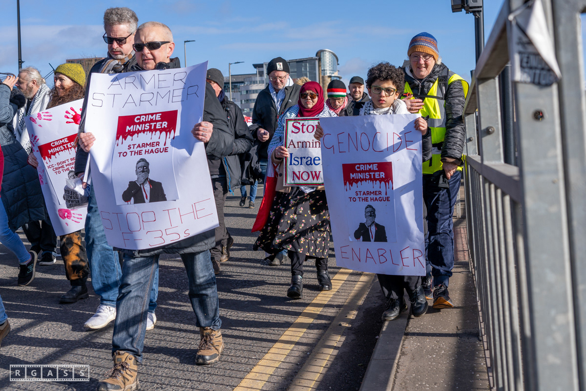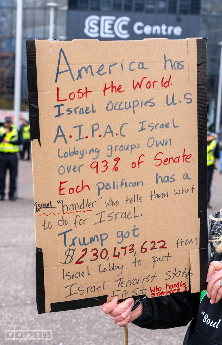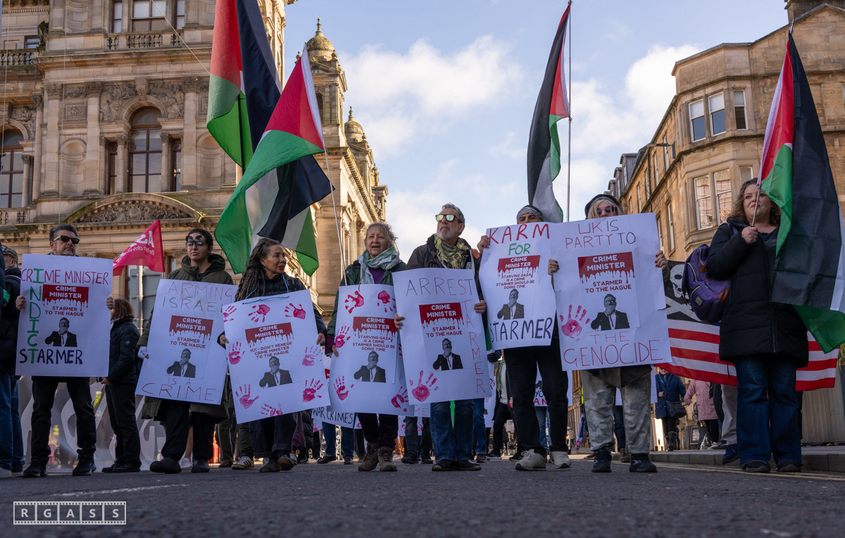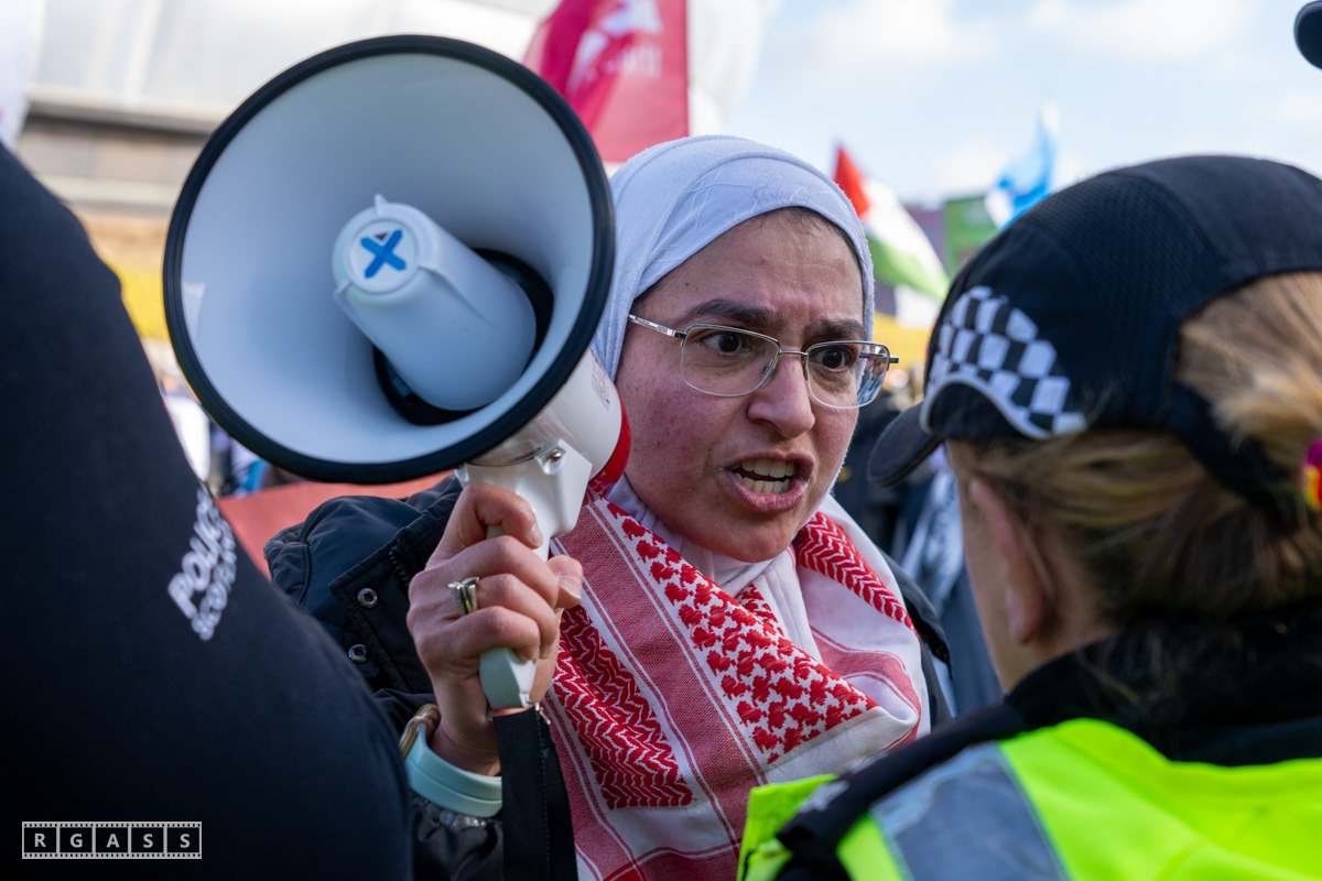 Glasgow, UK. 22nd Feb, 2025. Pro-Palestinian march from George Square to a rally to protest outside the Scottish Labour Party Conference at the SEC.