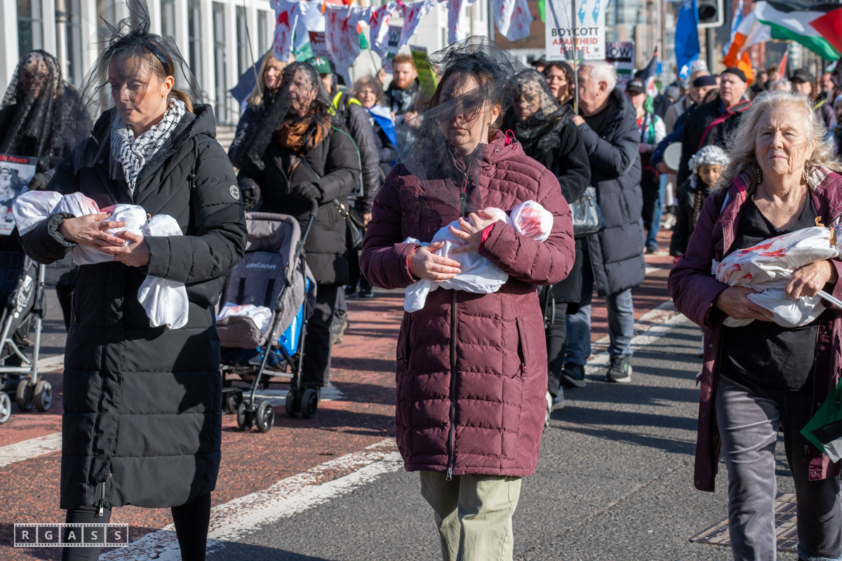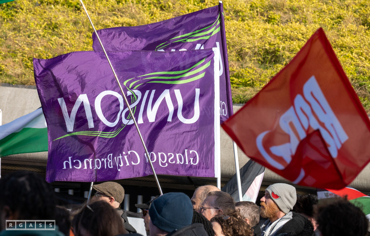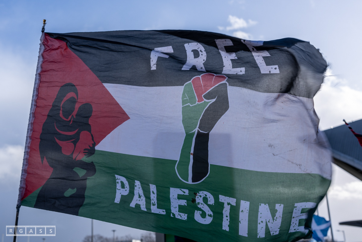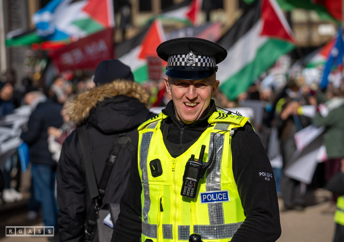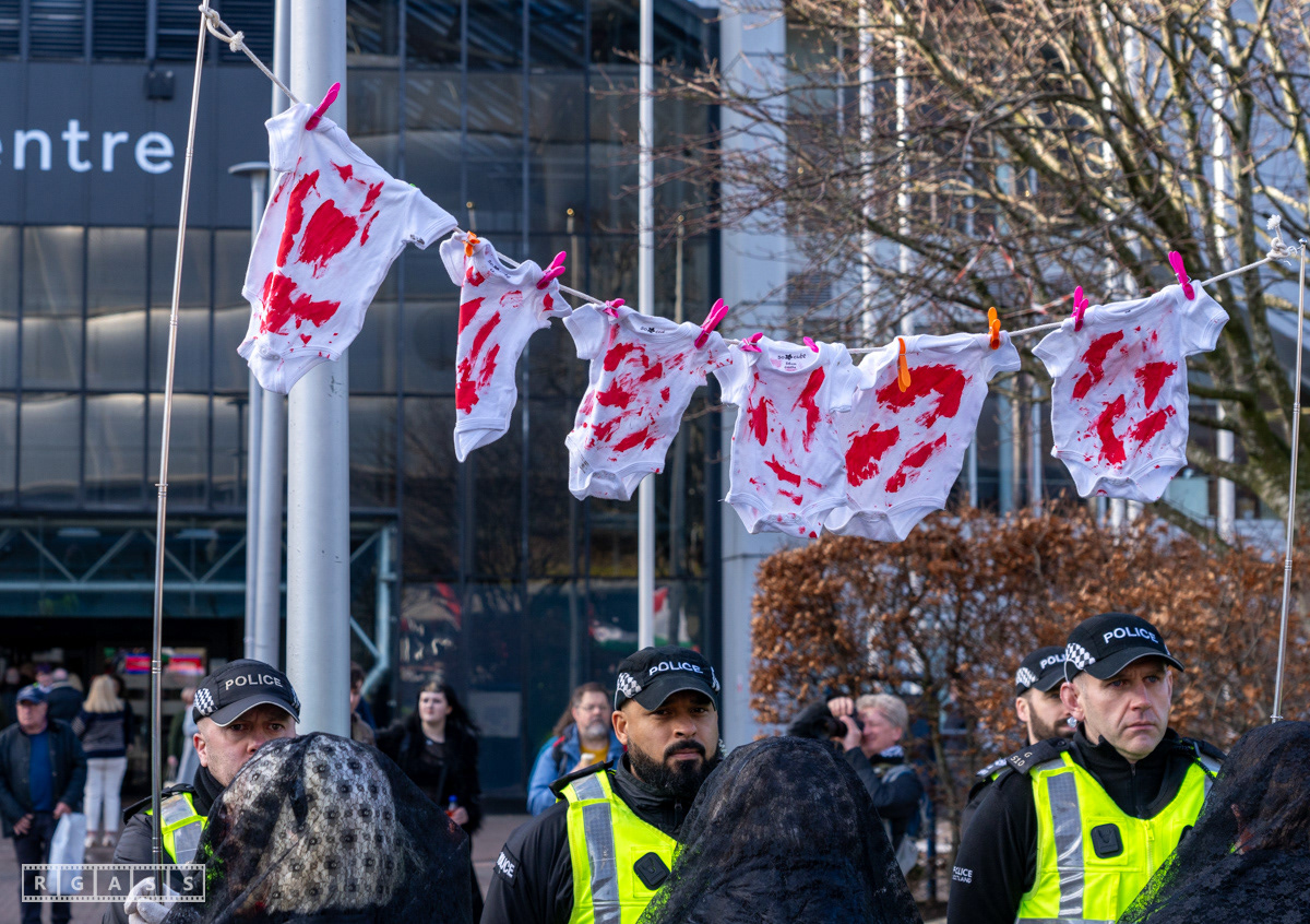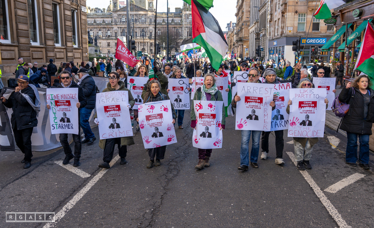 Glasgow, UK. 22nd Feb, 2025. Pro-Palestinian march from George Square to a rally to protest outside the Scottish Labour Party Conference at the SEC.