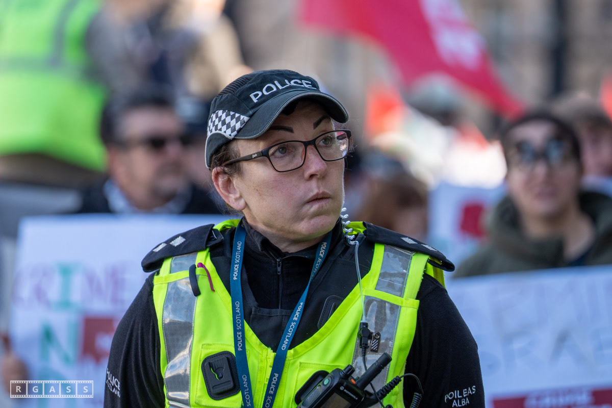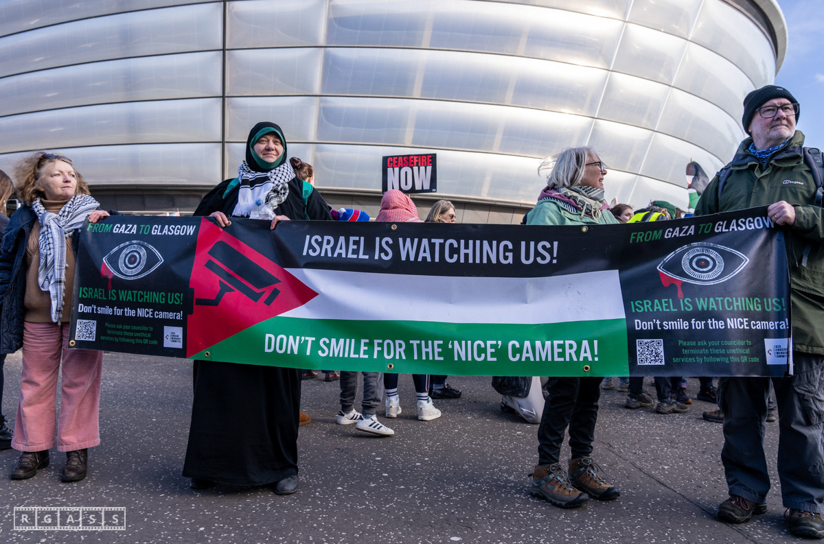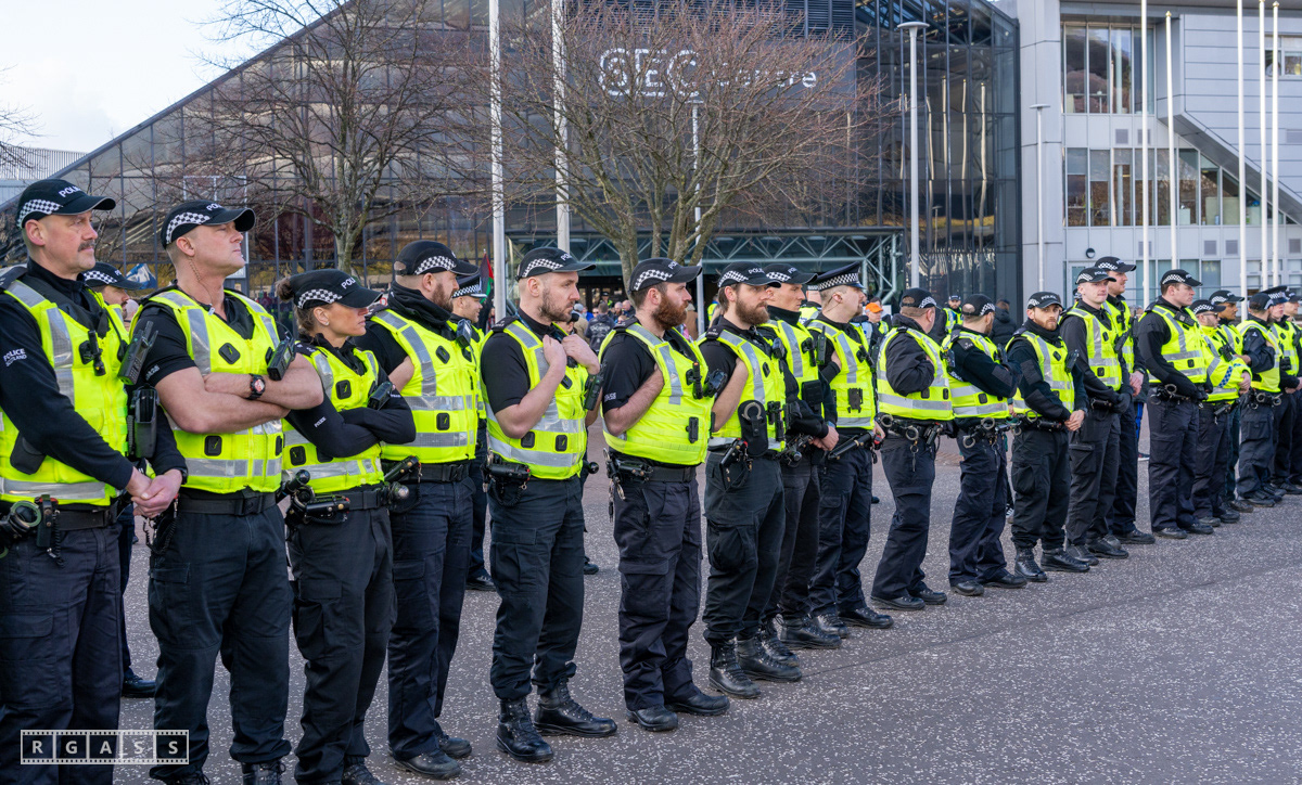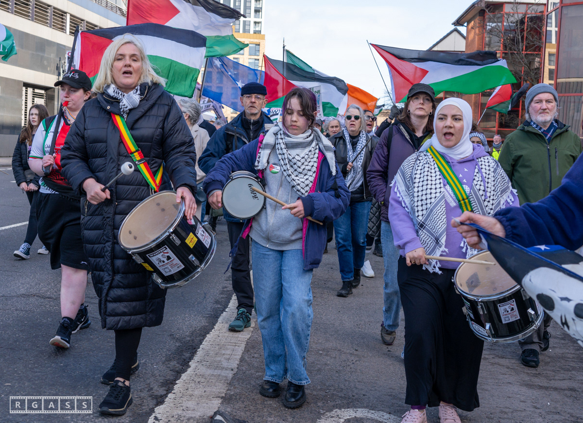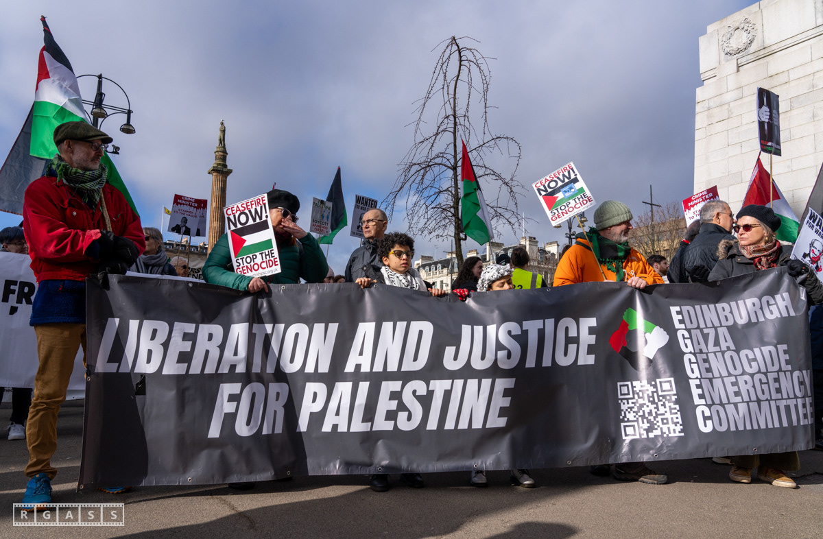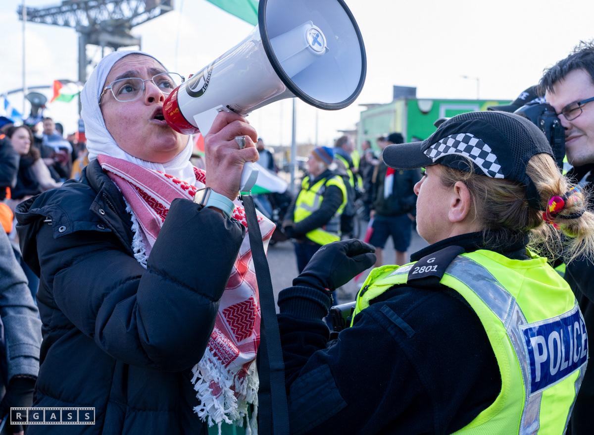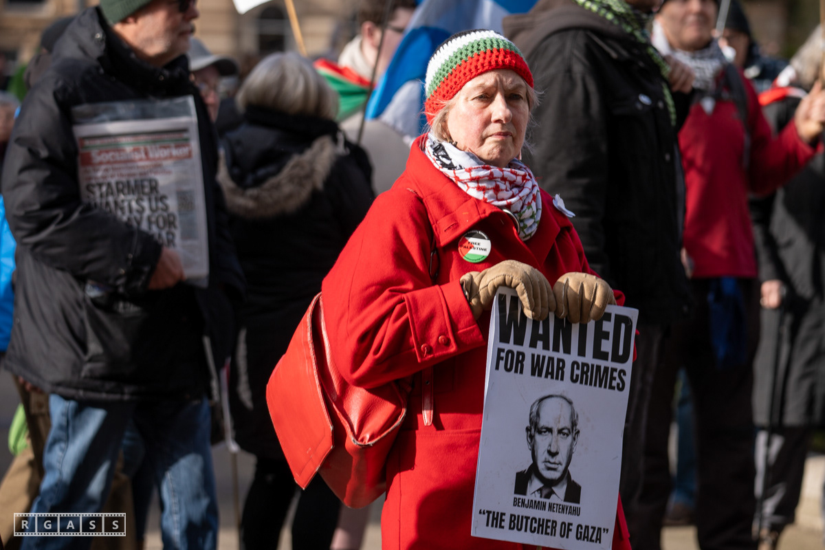 Glasgow, UK. 22nd Feb, 2025. Pro-Palestinian march from George Square to a rally to protest outside the Scottish Labour Party Conference at the SEC.