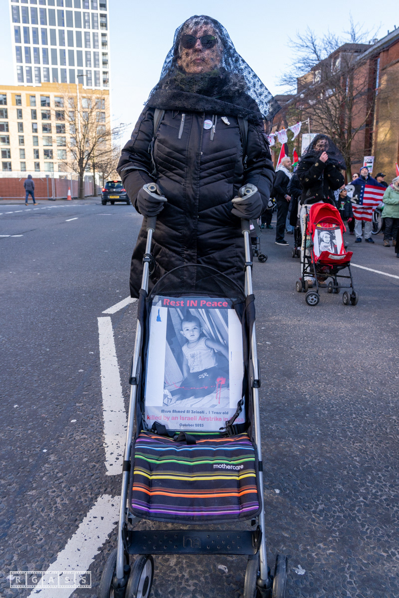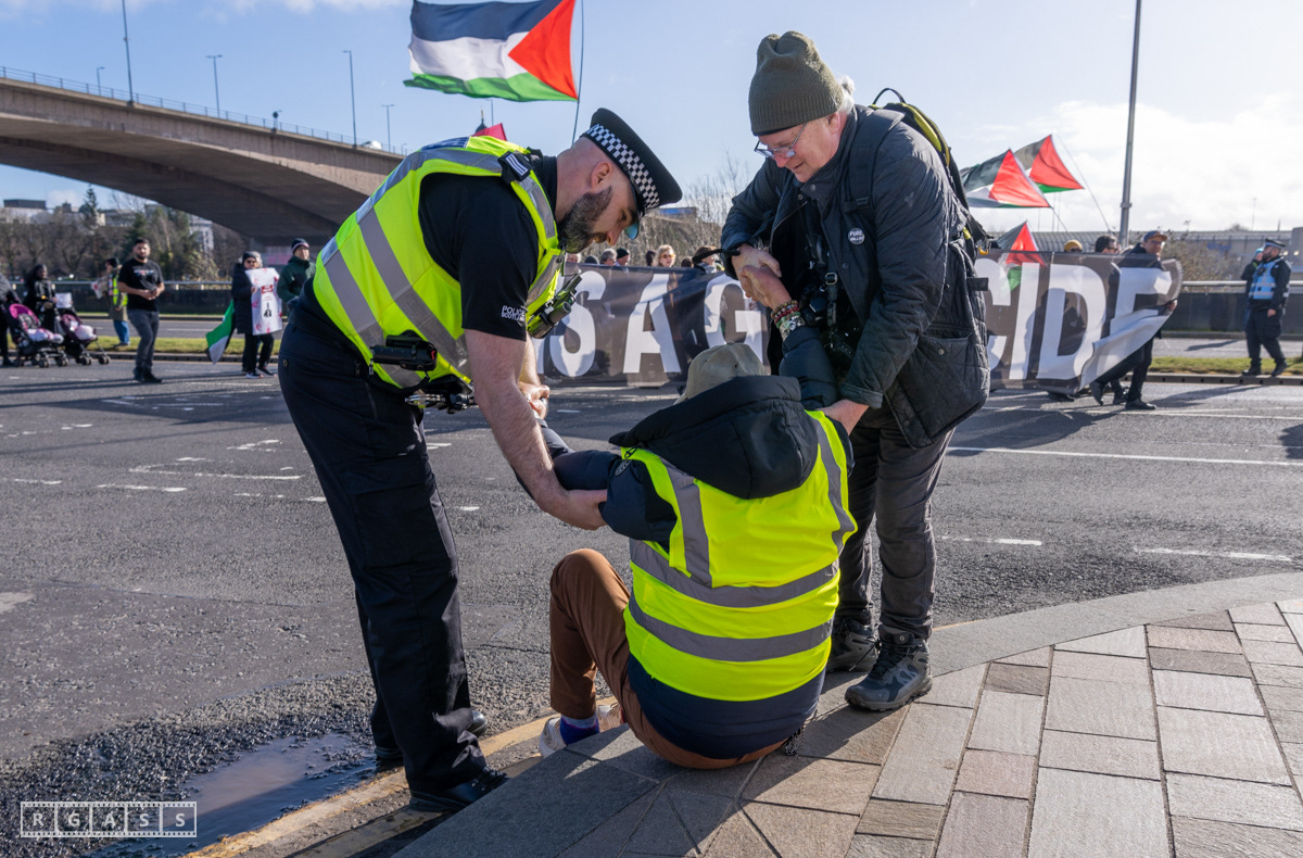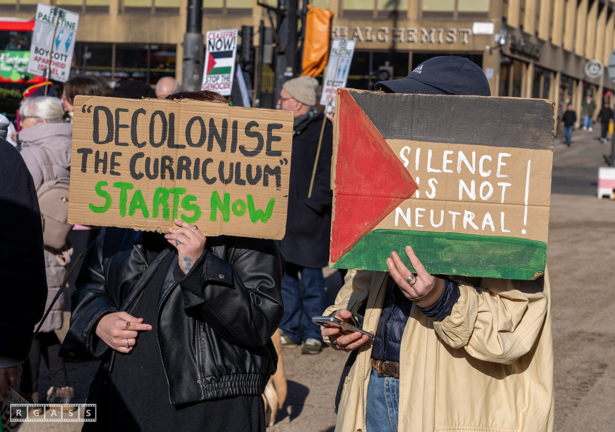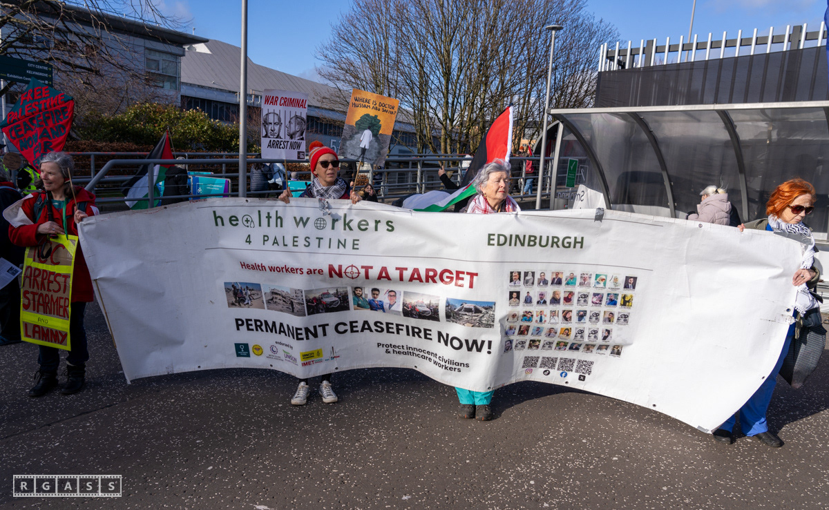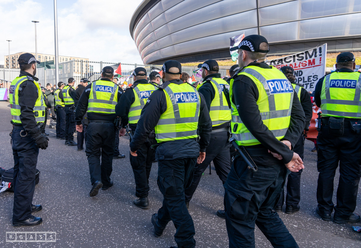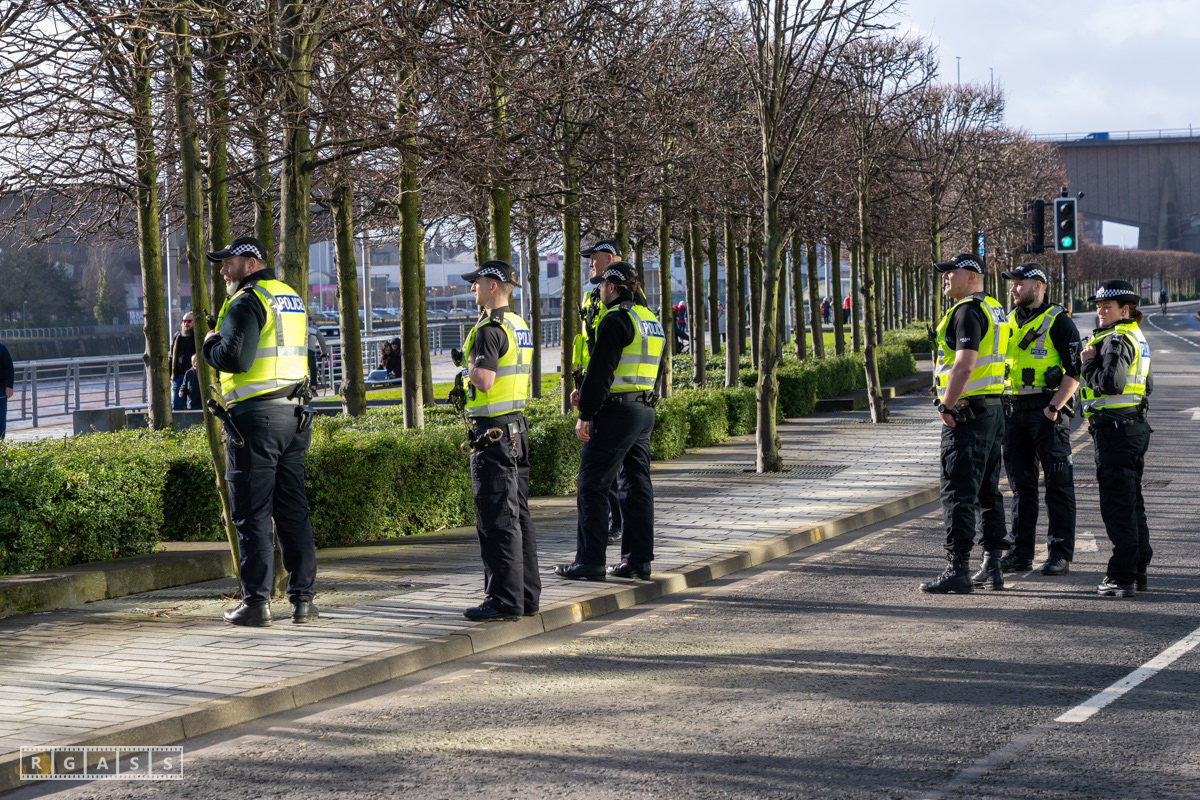 Glasgow, UK. 22nd Feb, 2025. Pro-Palestinian march from George Square to a rally to protest outside the Scottish Labour Party Conference at the SEC.