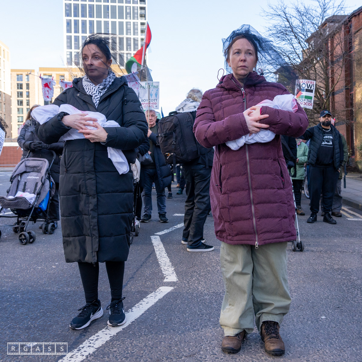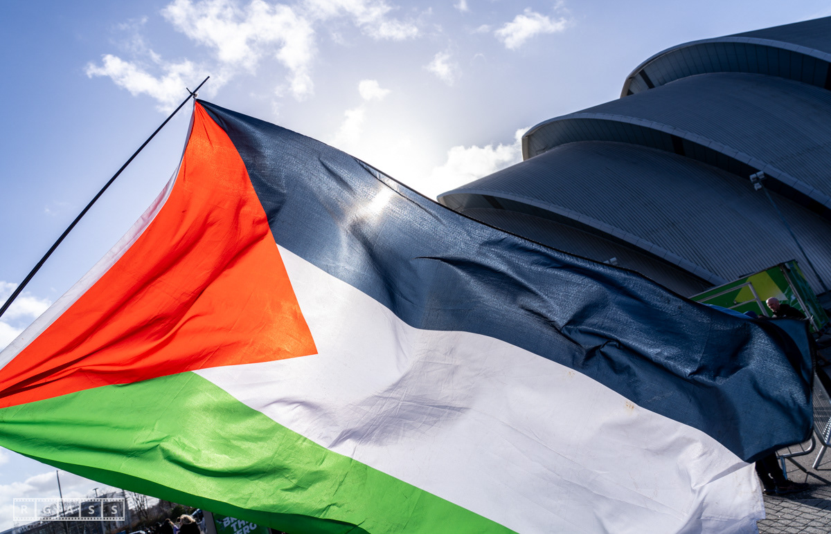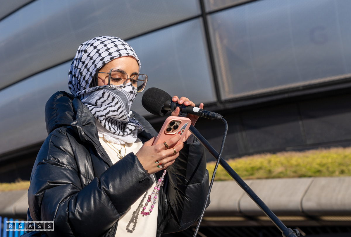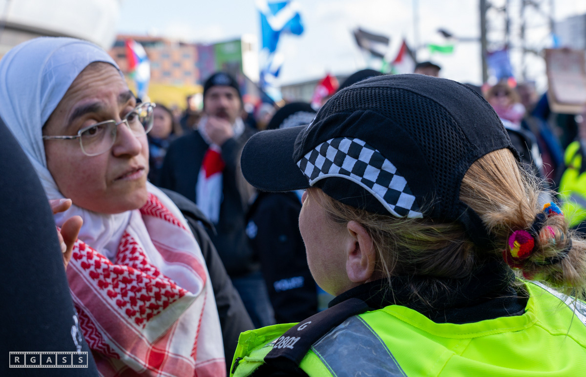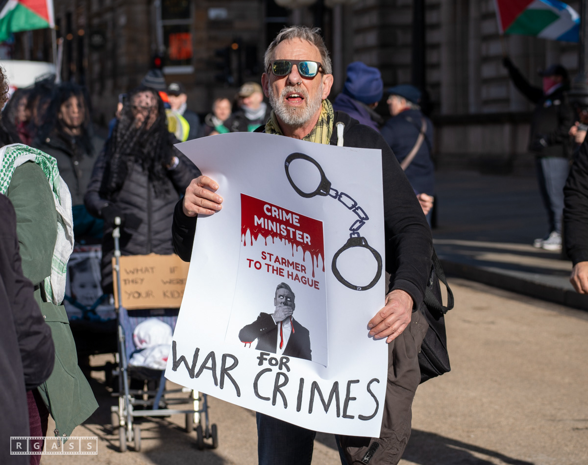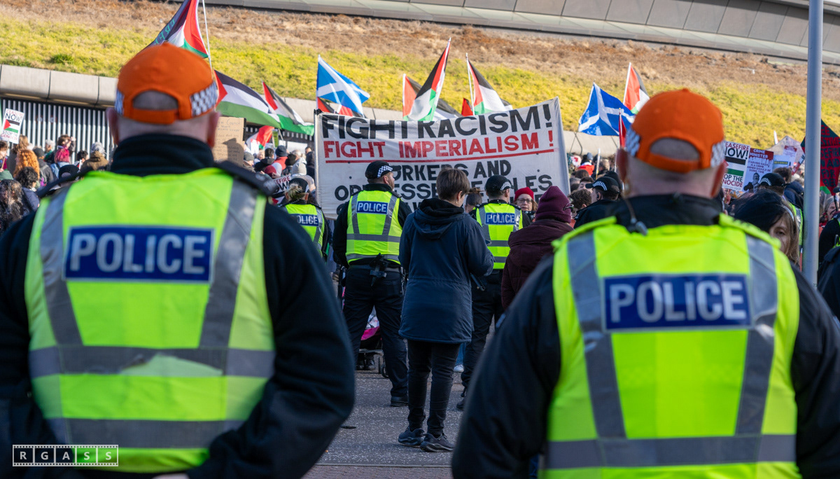 Glasgow, UK. 22nd Feb, 2025. Pro-Palestinian march from George Square to a rally to protest outside the Scottish Labour Party Conference at the SEC.