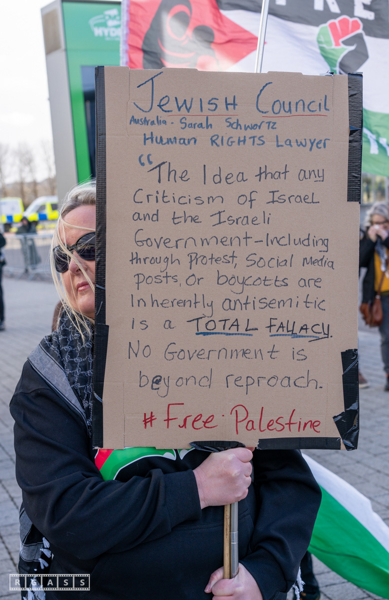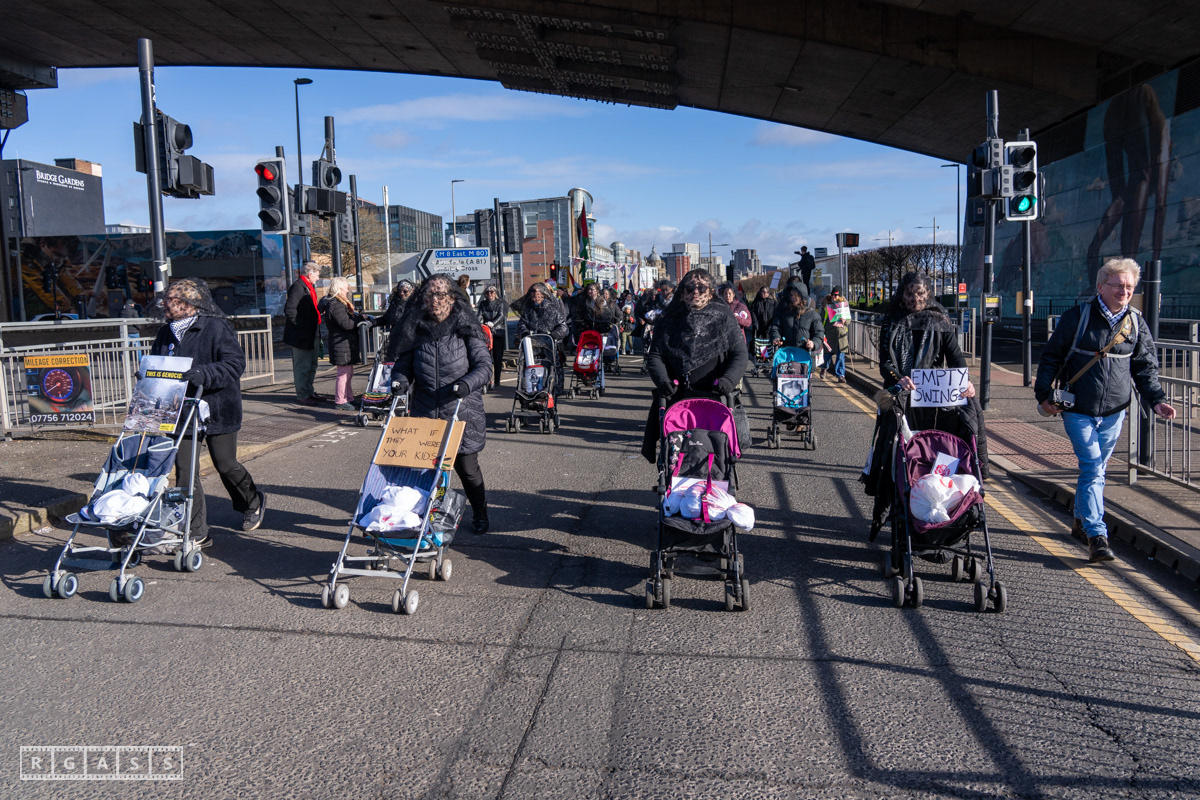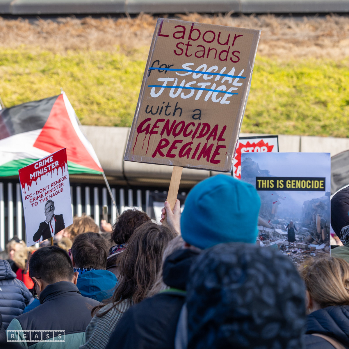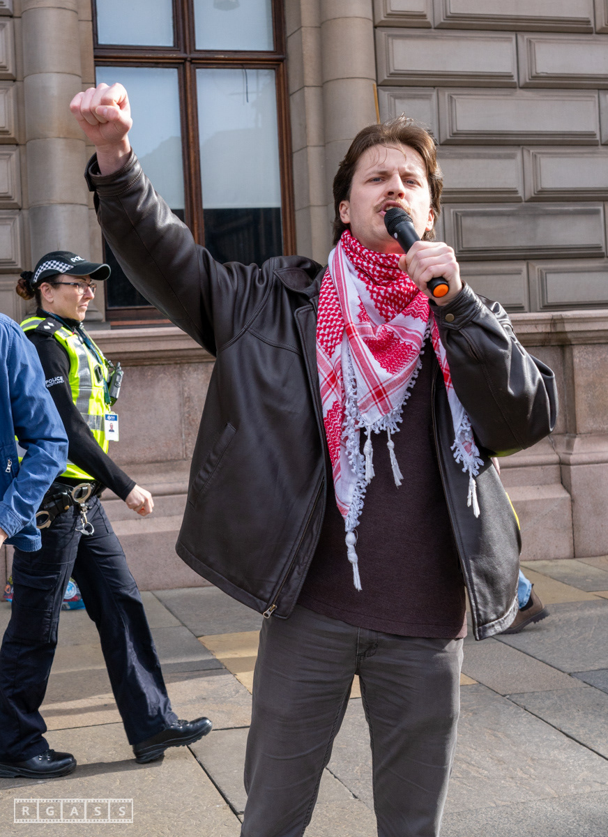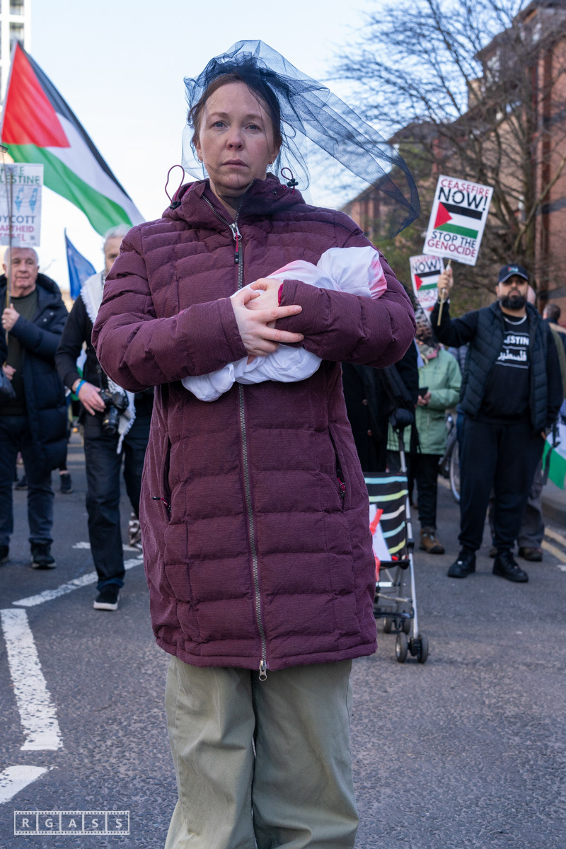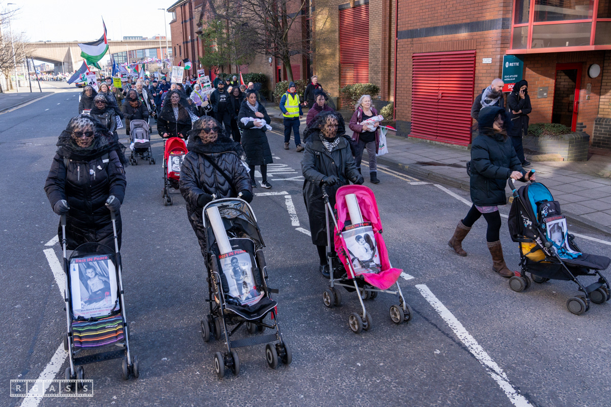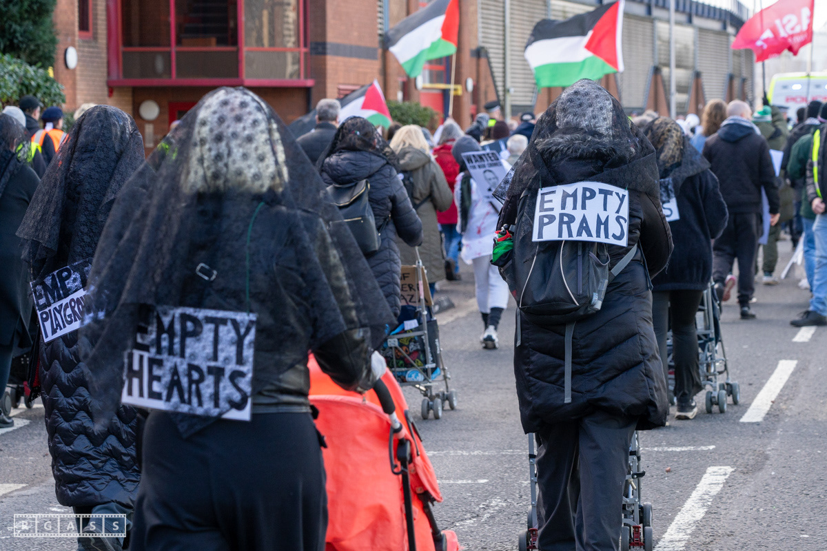 Glasgow, UK. 22nd Feb, 2025. Pro-Palestinian march from George Square to a rally to protest outside the Scottish Labour Party Conference at the SEC.