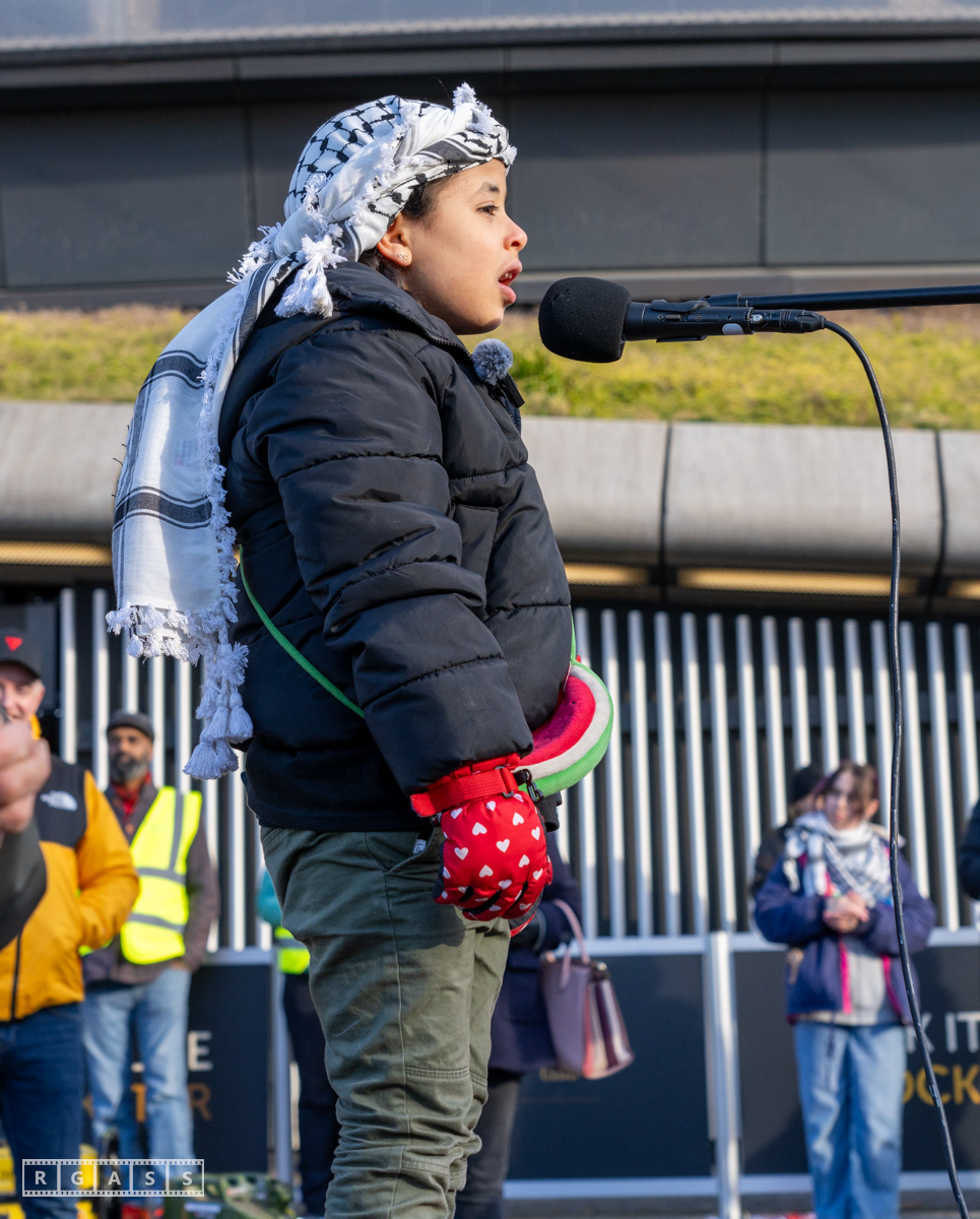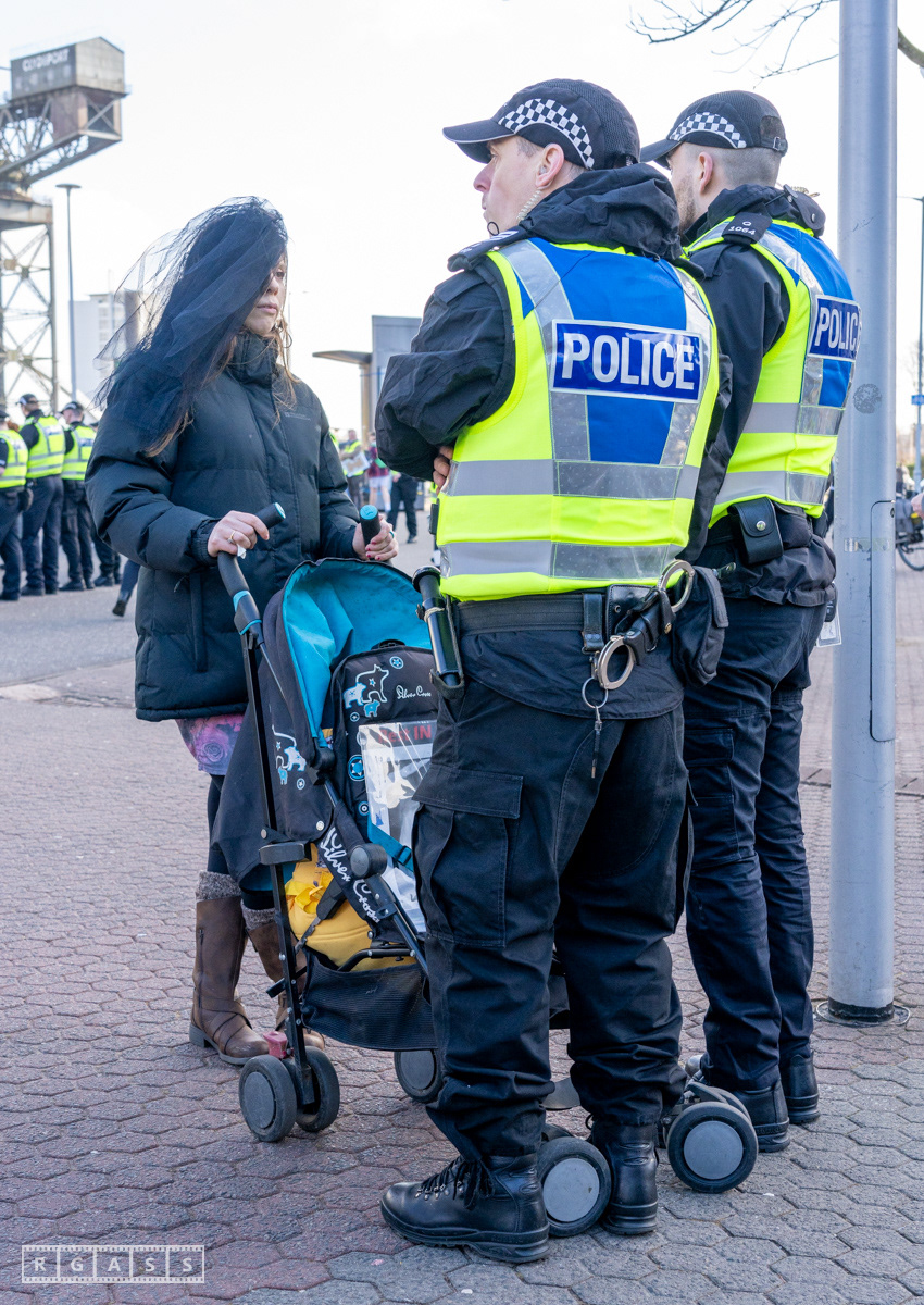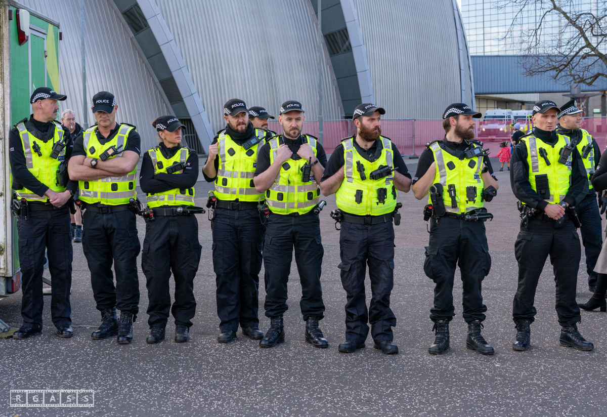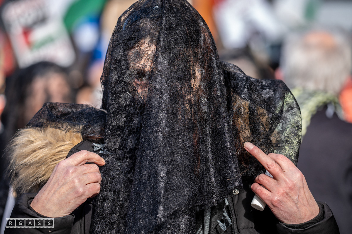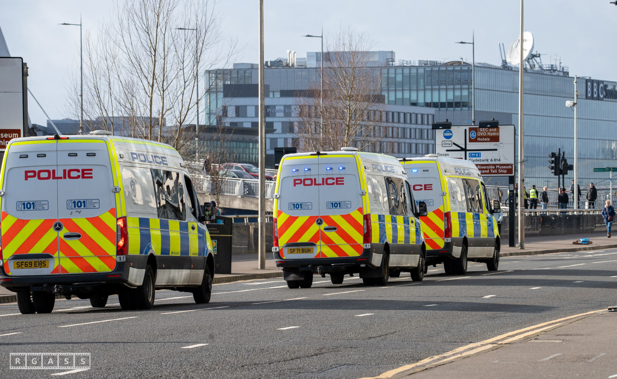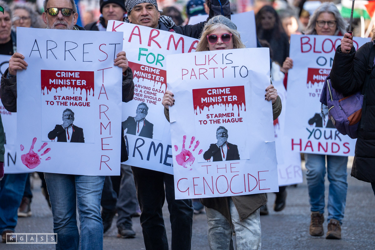 Glasgow, UK. 22nd Feb, 2025. Pro-Palestinian march from George Square to a rally to protest outside the Scottish Labour Party Conference at the SEC.