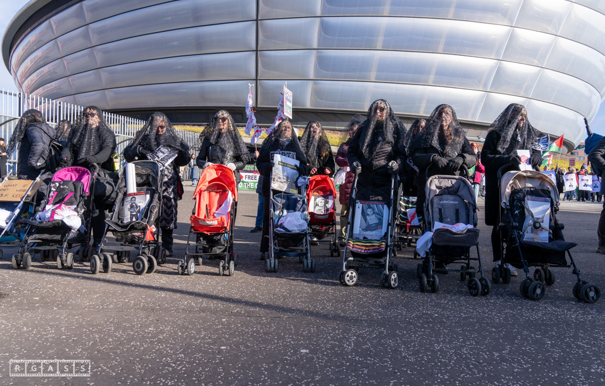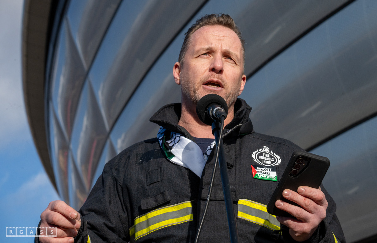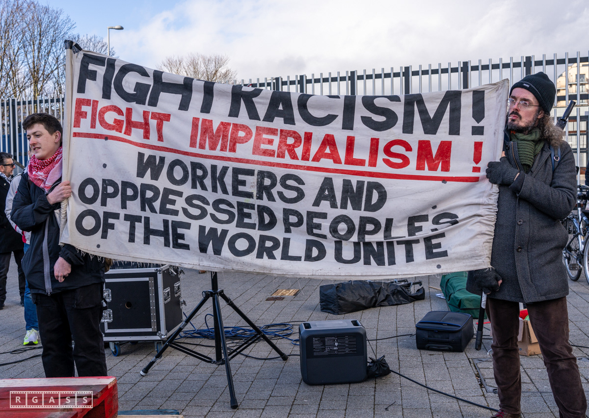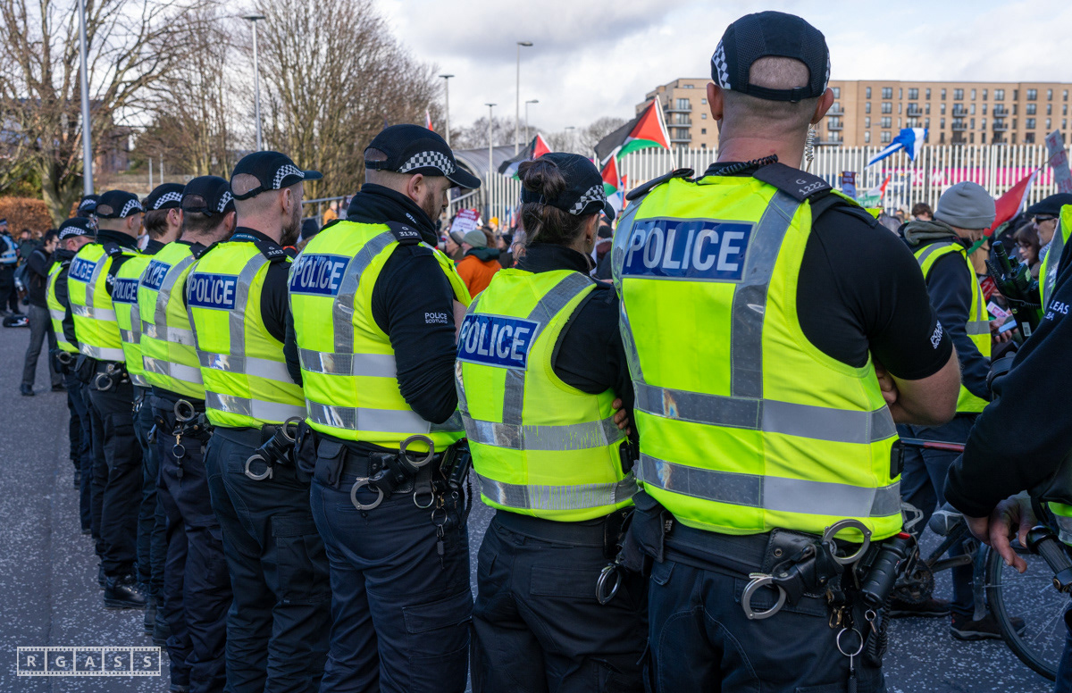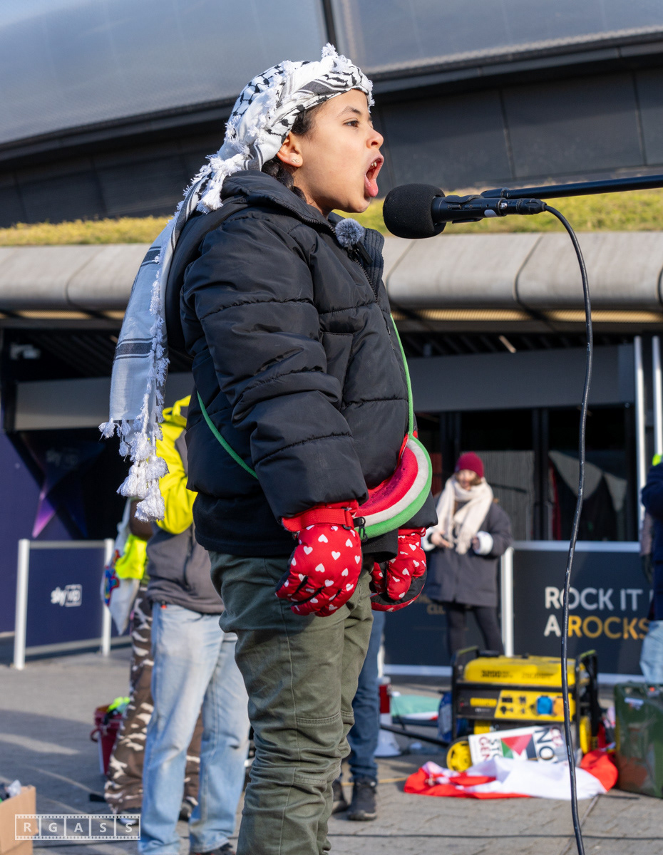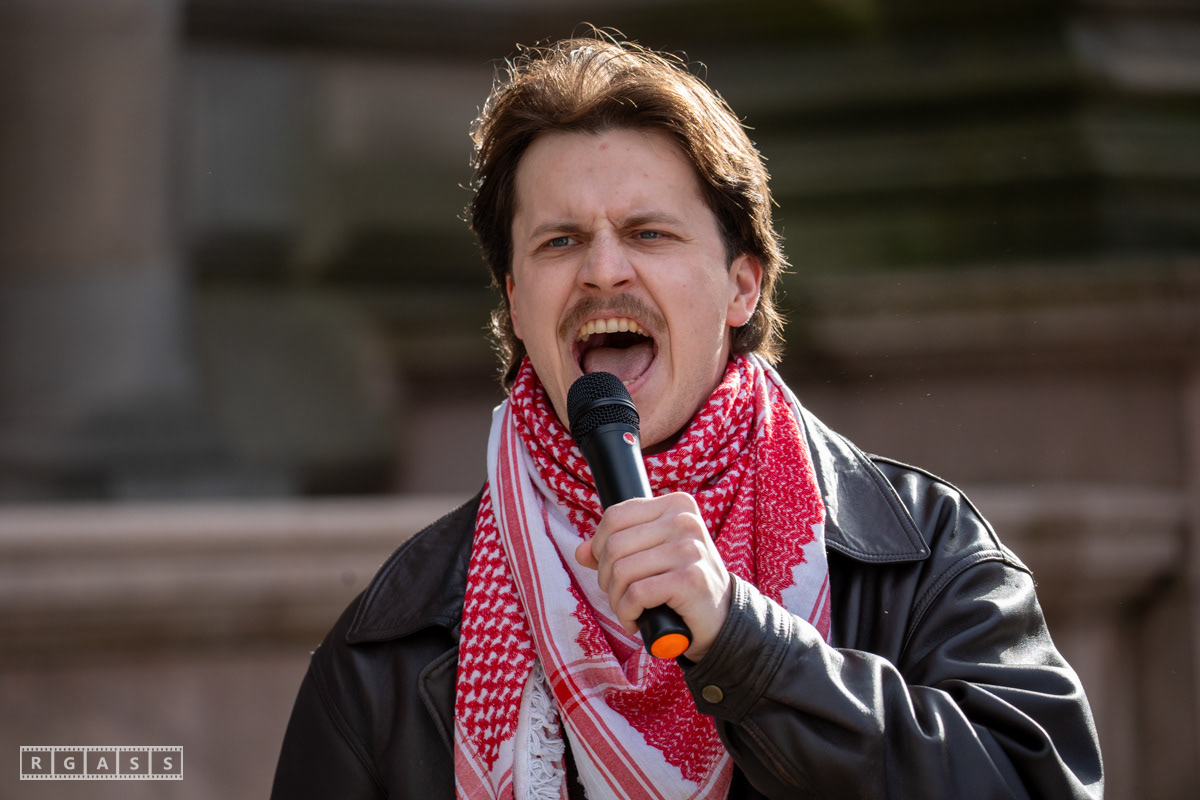 Glasgow, UK. 22nd Feb, 2025. Pro-Palestinian march from George Square to a rally to protest outside the Scottish Labour Party Conference at the SEC.