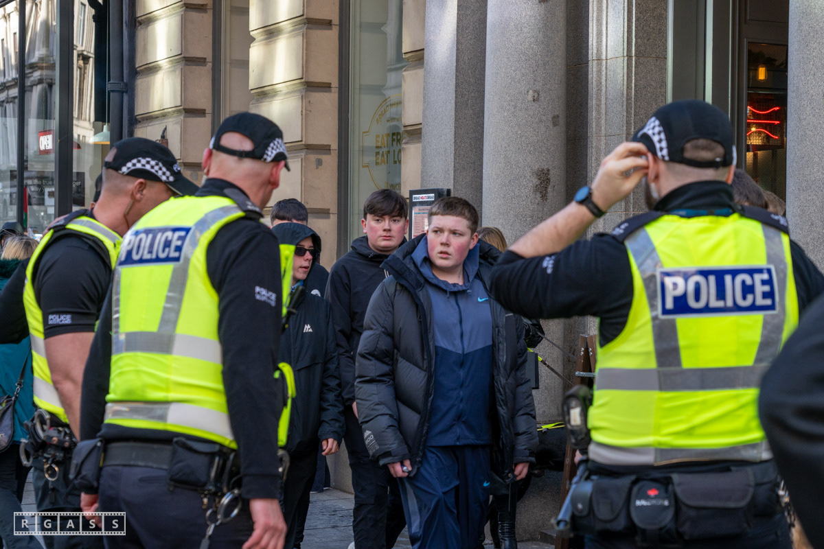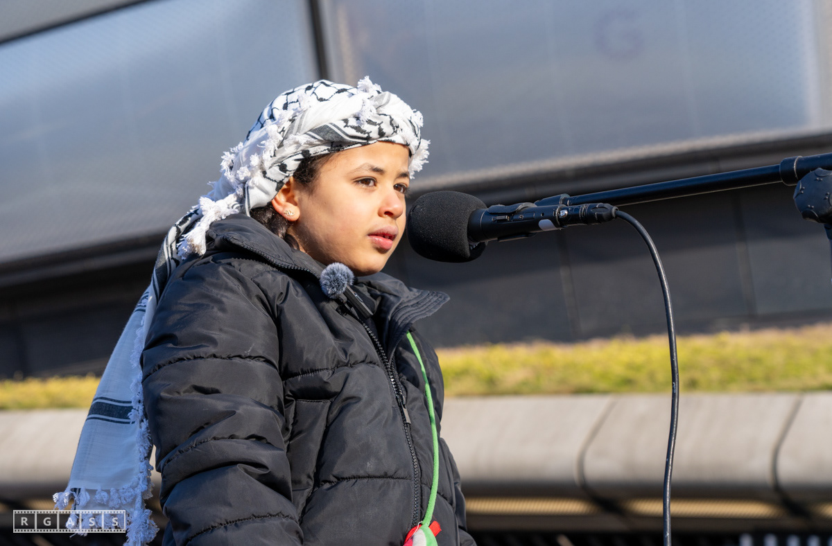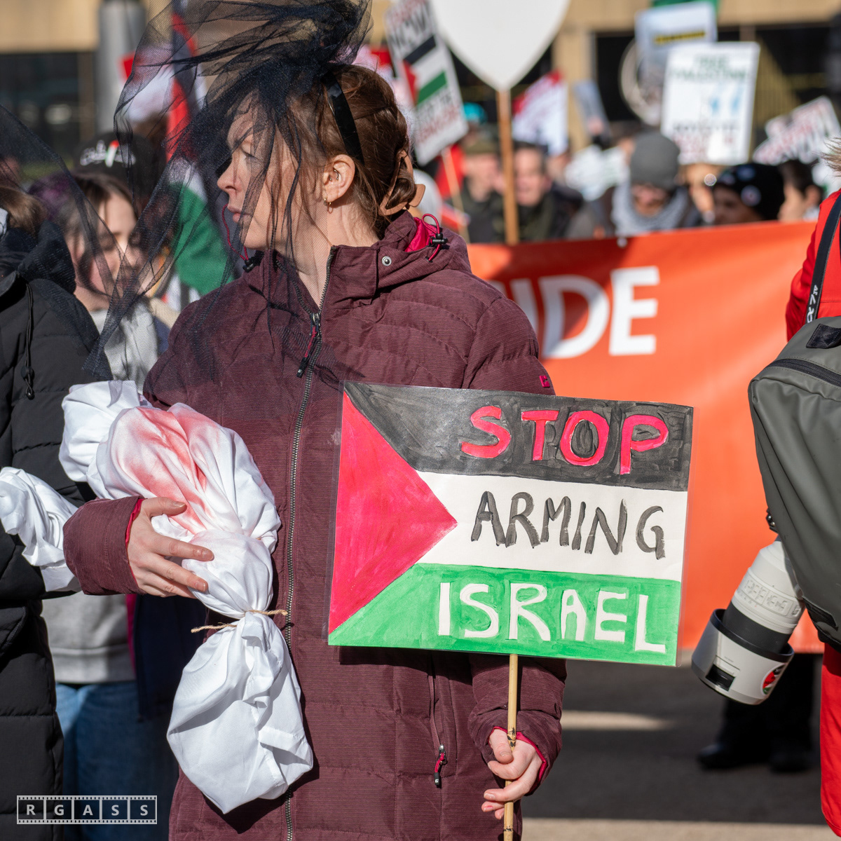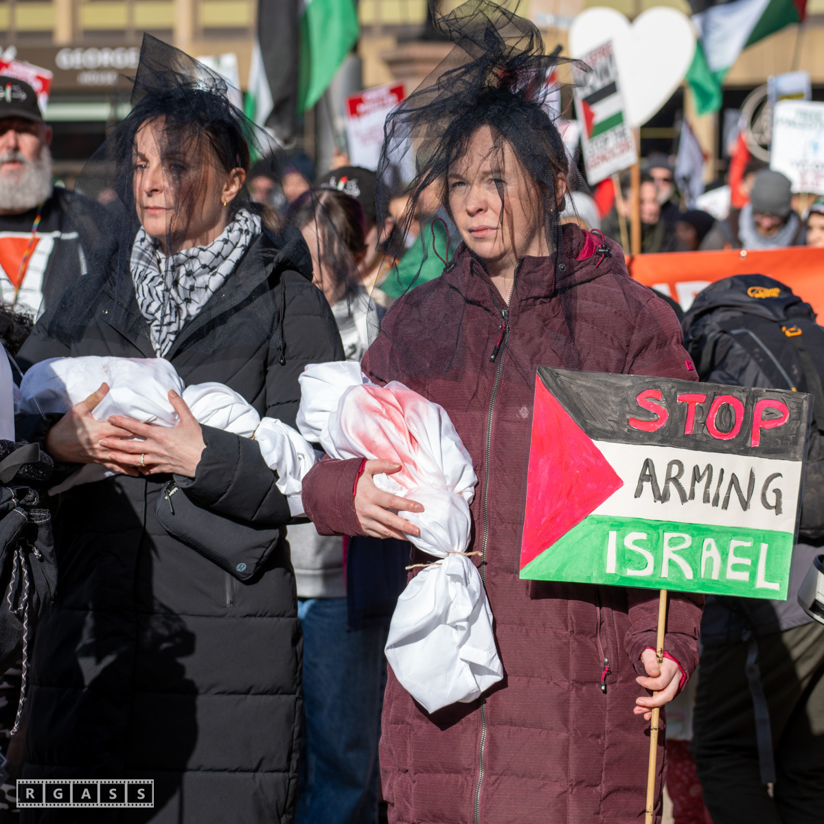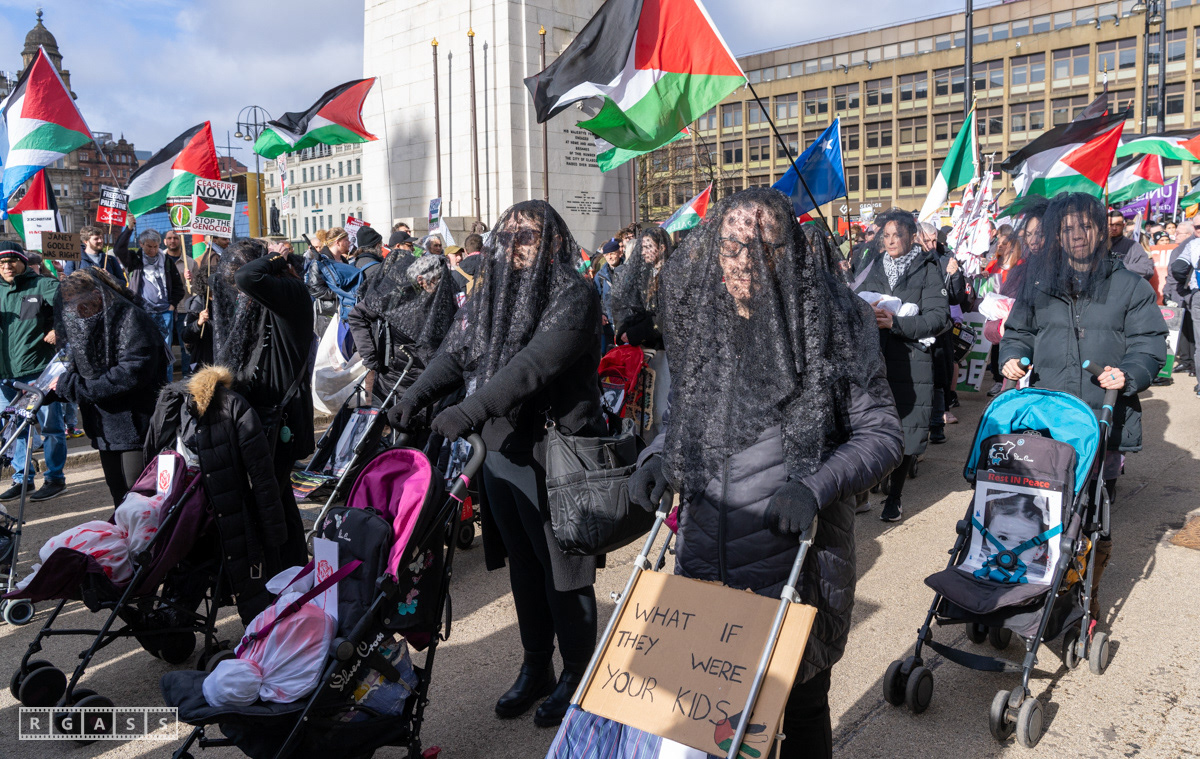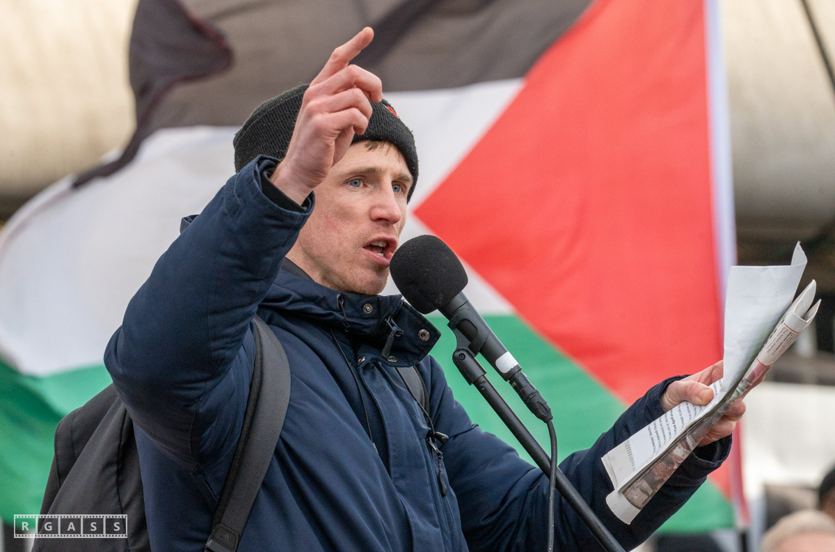 Glasgow, UK. 22nd Feb, 2025. Pro-Palestinian march from George Square to a rally to protest outside the Scottish Labour Party Conference at the SEC.