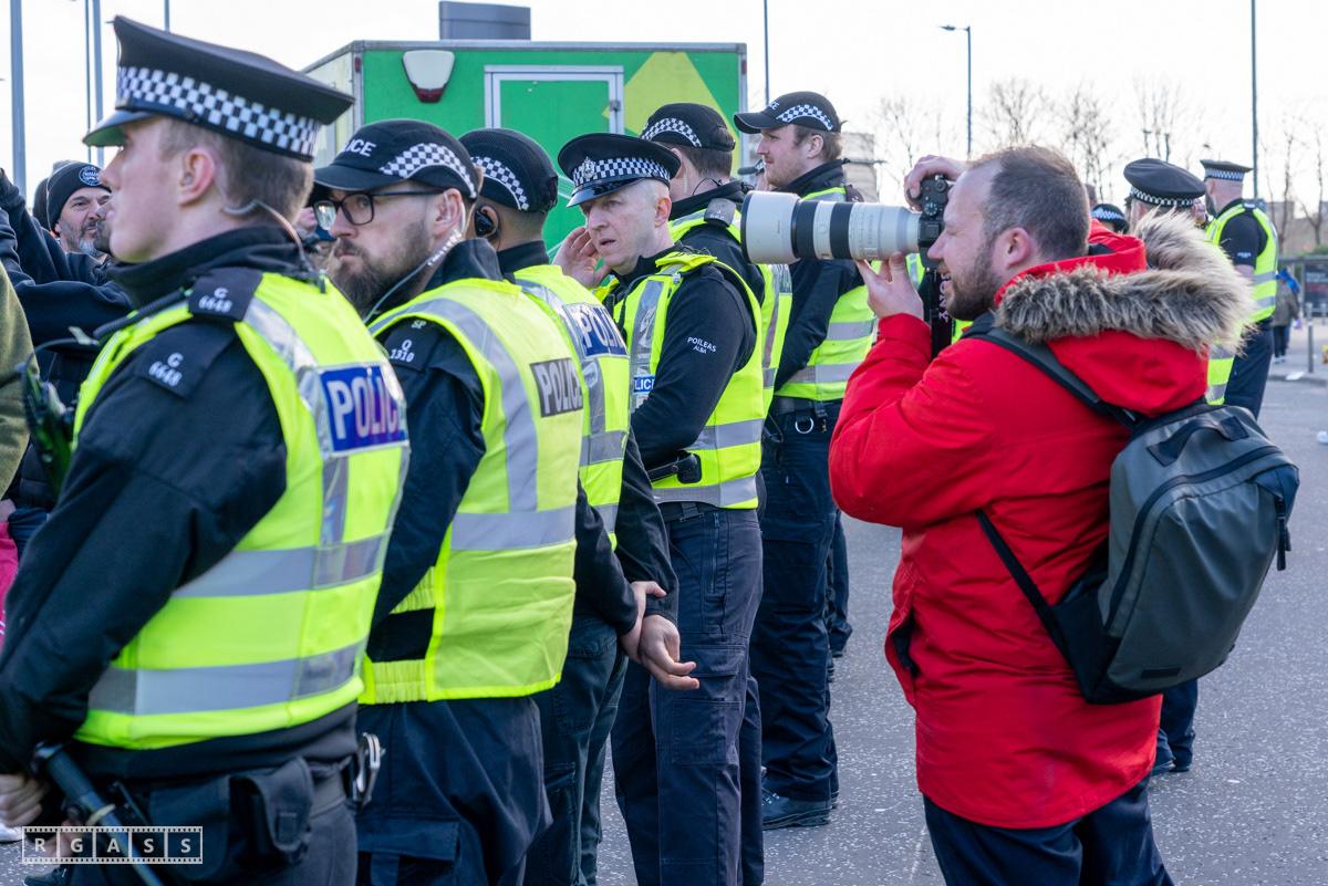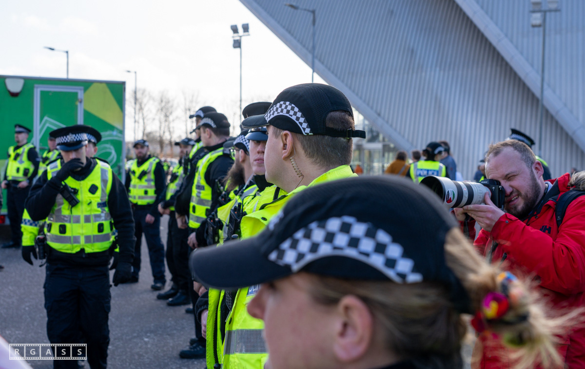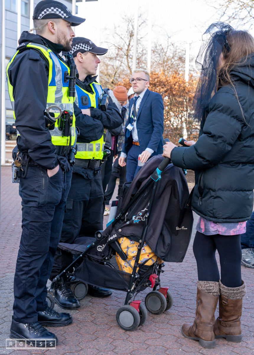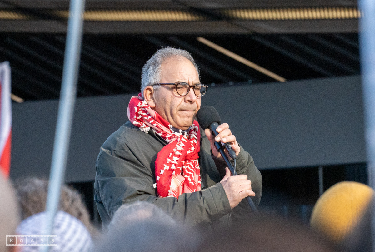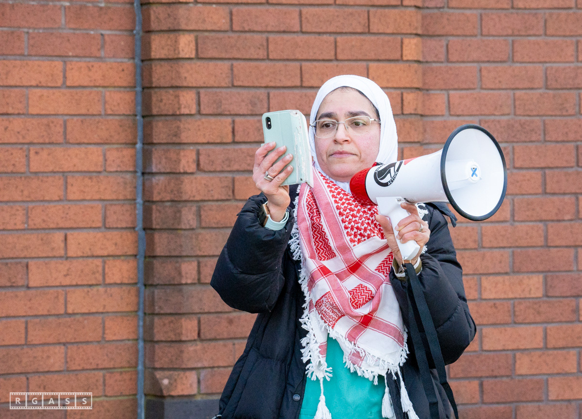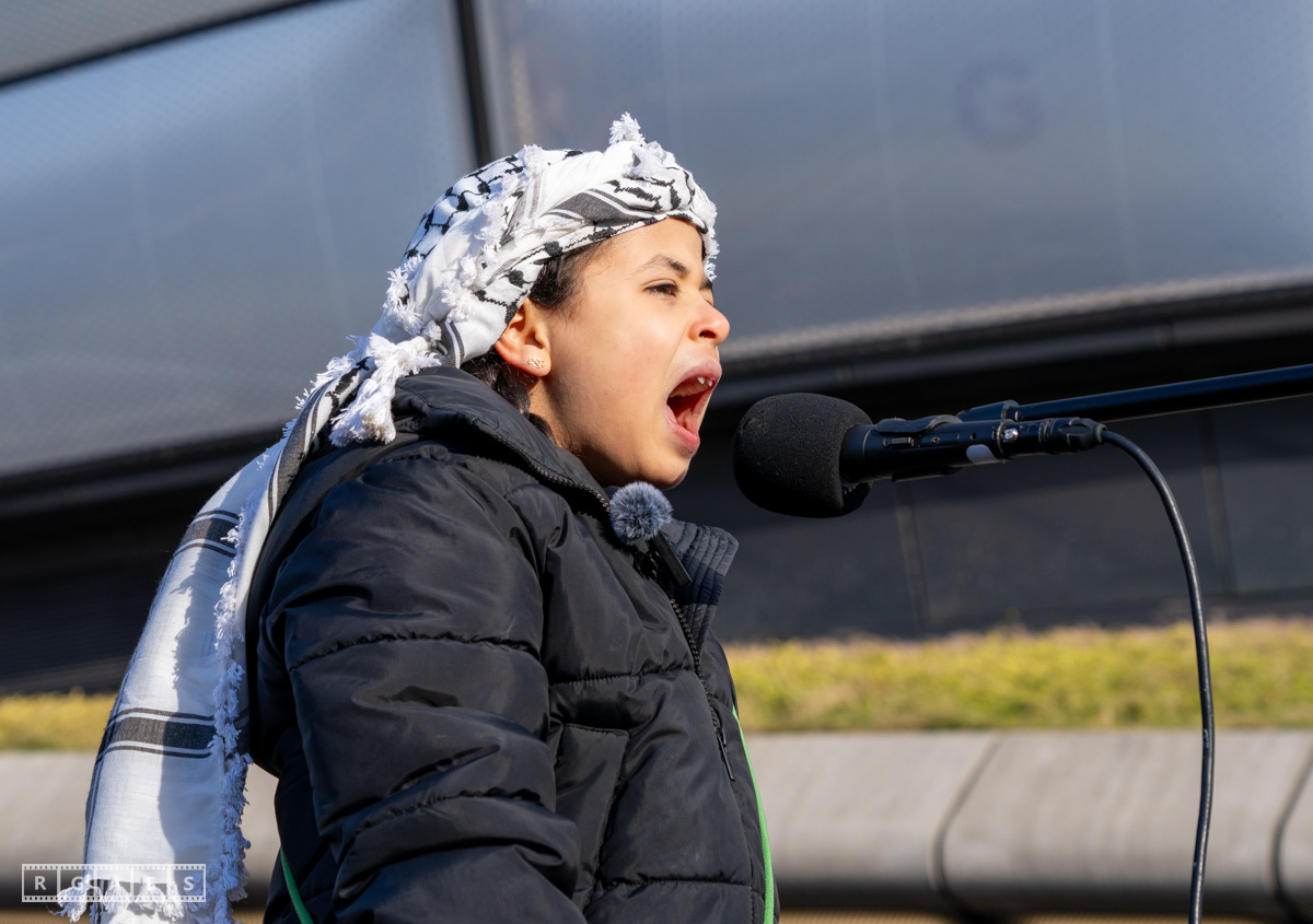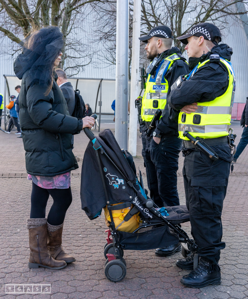 Glasgow, UK. 22nd Feb, 2025. Pro-Palestinian march from George Square to a rally to protest outside the Scottish Labour Party Conference at the SEC.