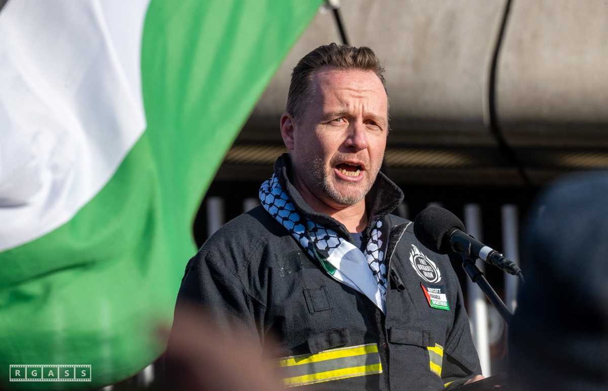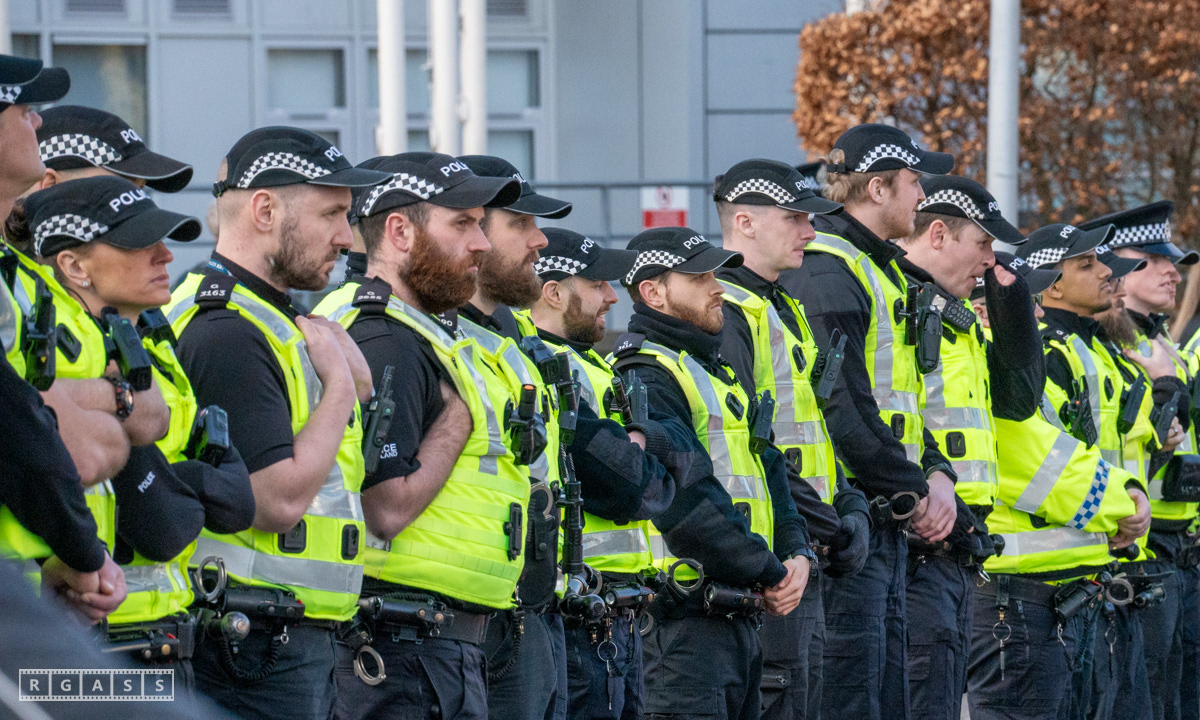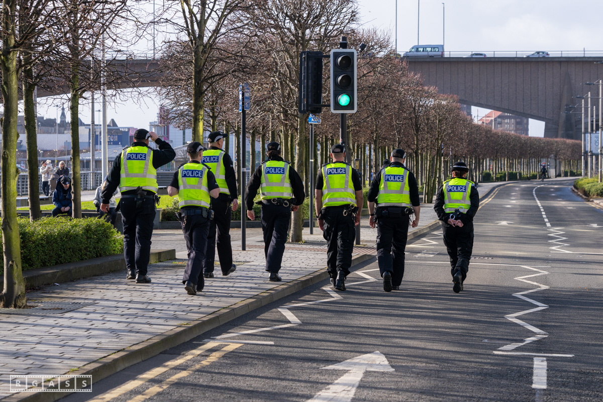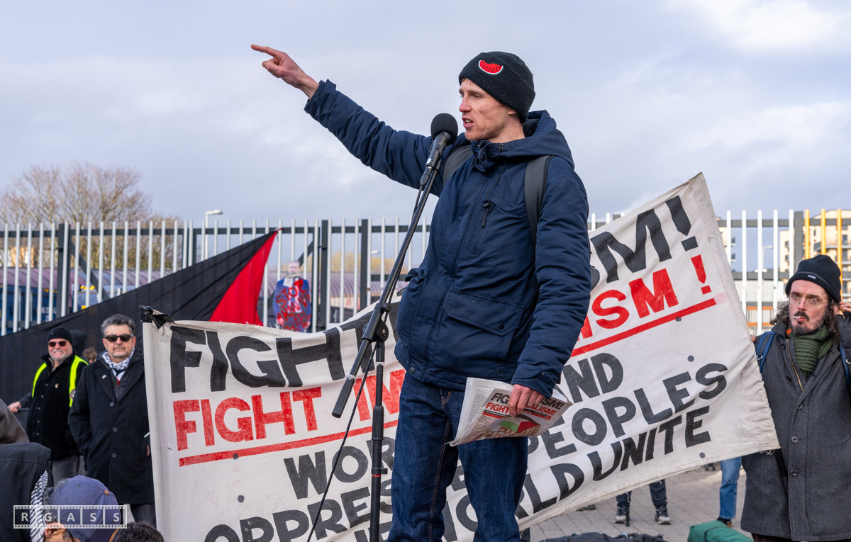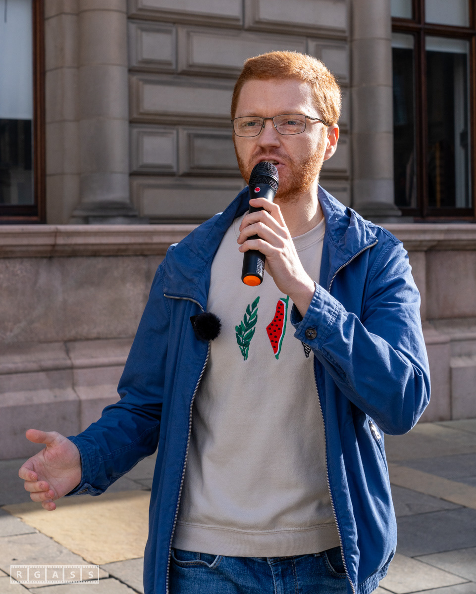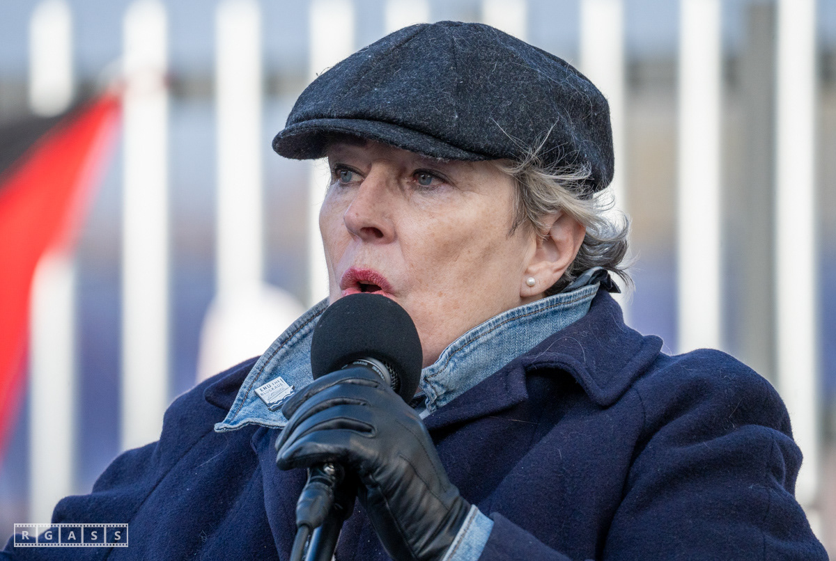 Glasgow, UK. 22nd Feb, 2025. Pro-Palestinian march from George Square to a rally to protest outside the Scottish Labour Party Conference at the SEC.