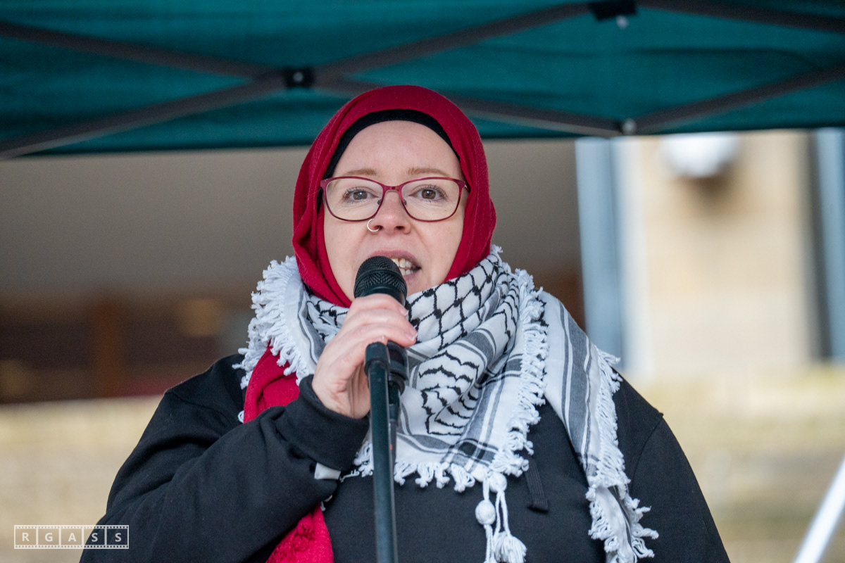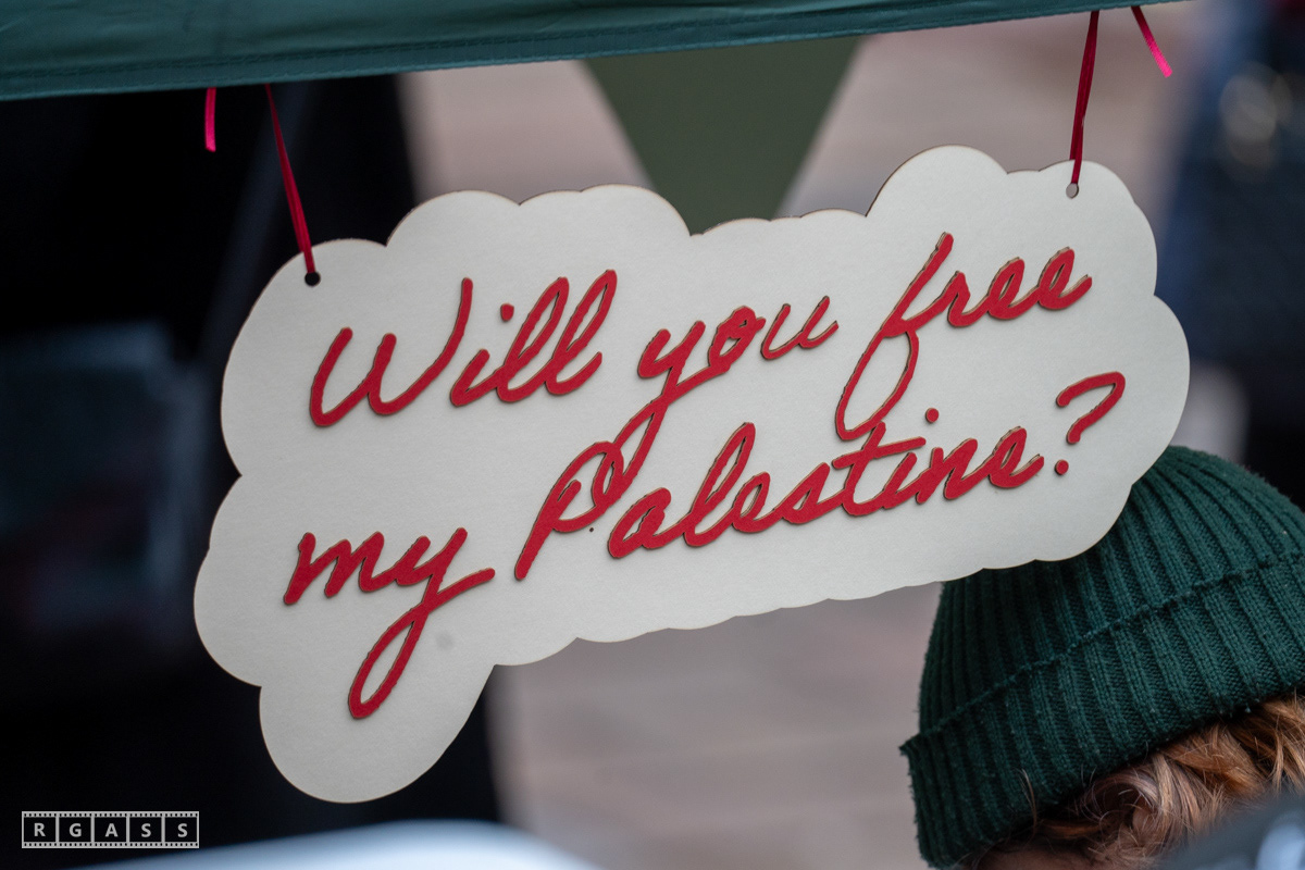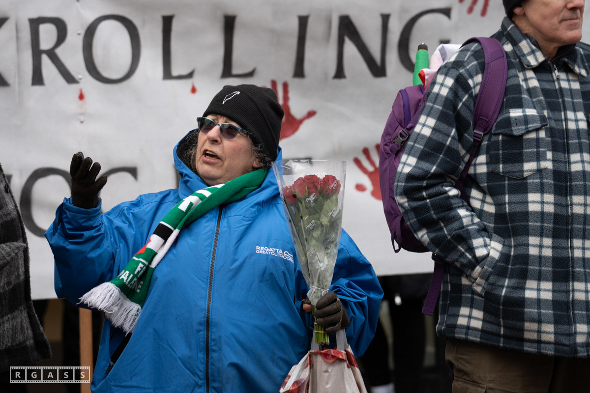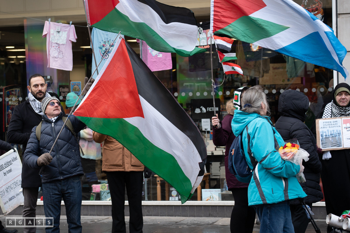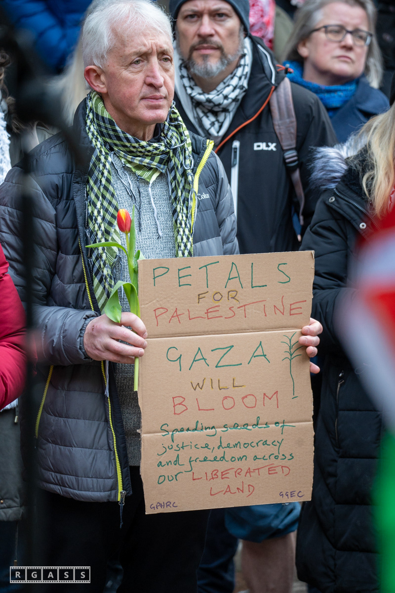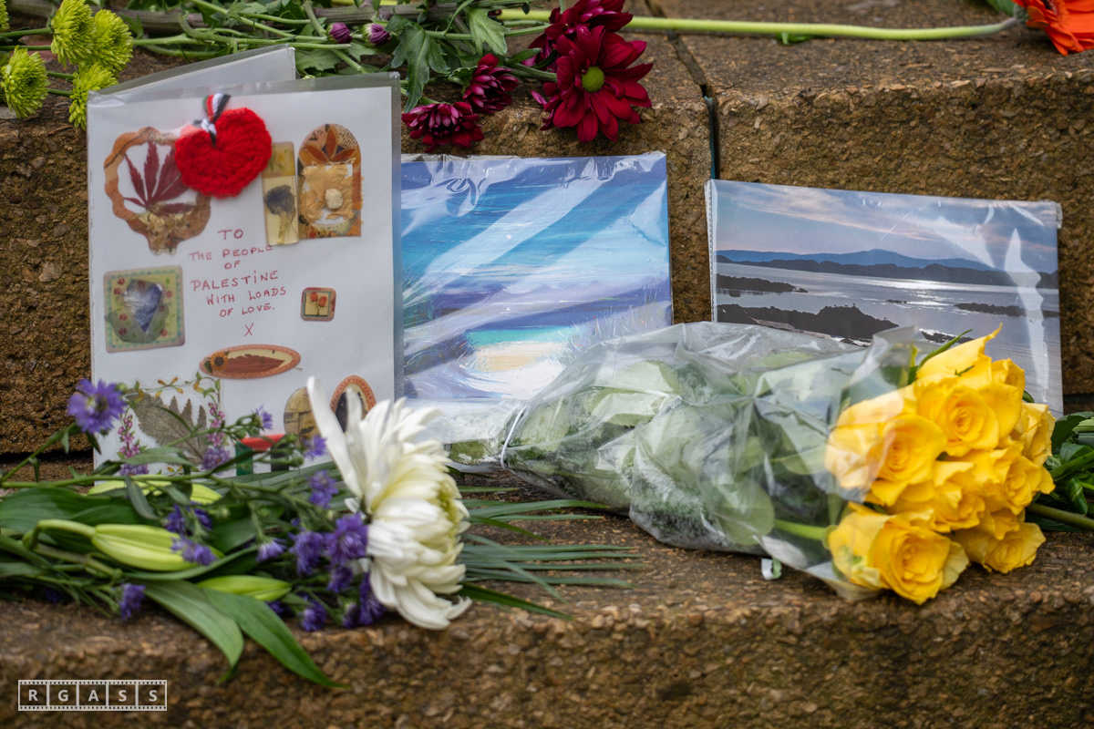 Glasgow. 15th February 2025. 'Petals For Palestine' ' at the steps of the Buchanan Galleries.