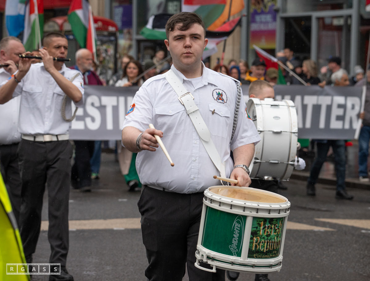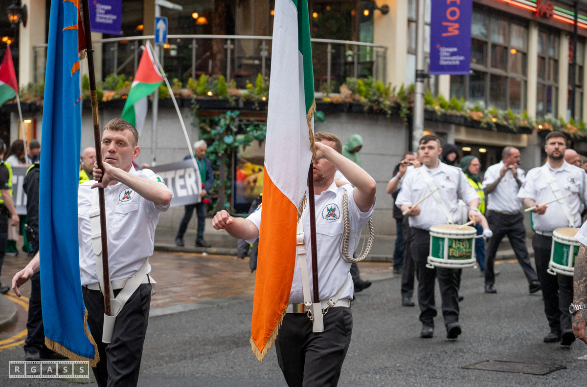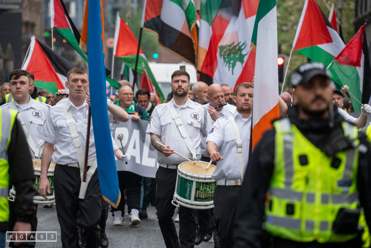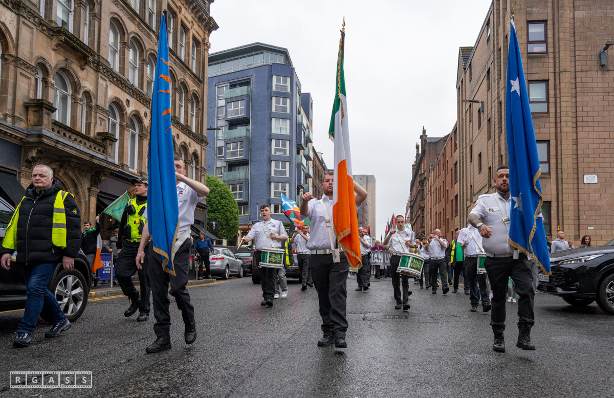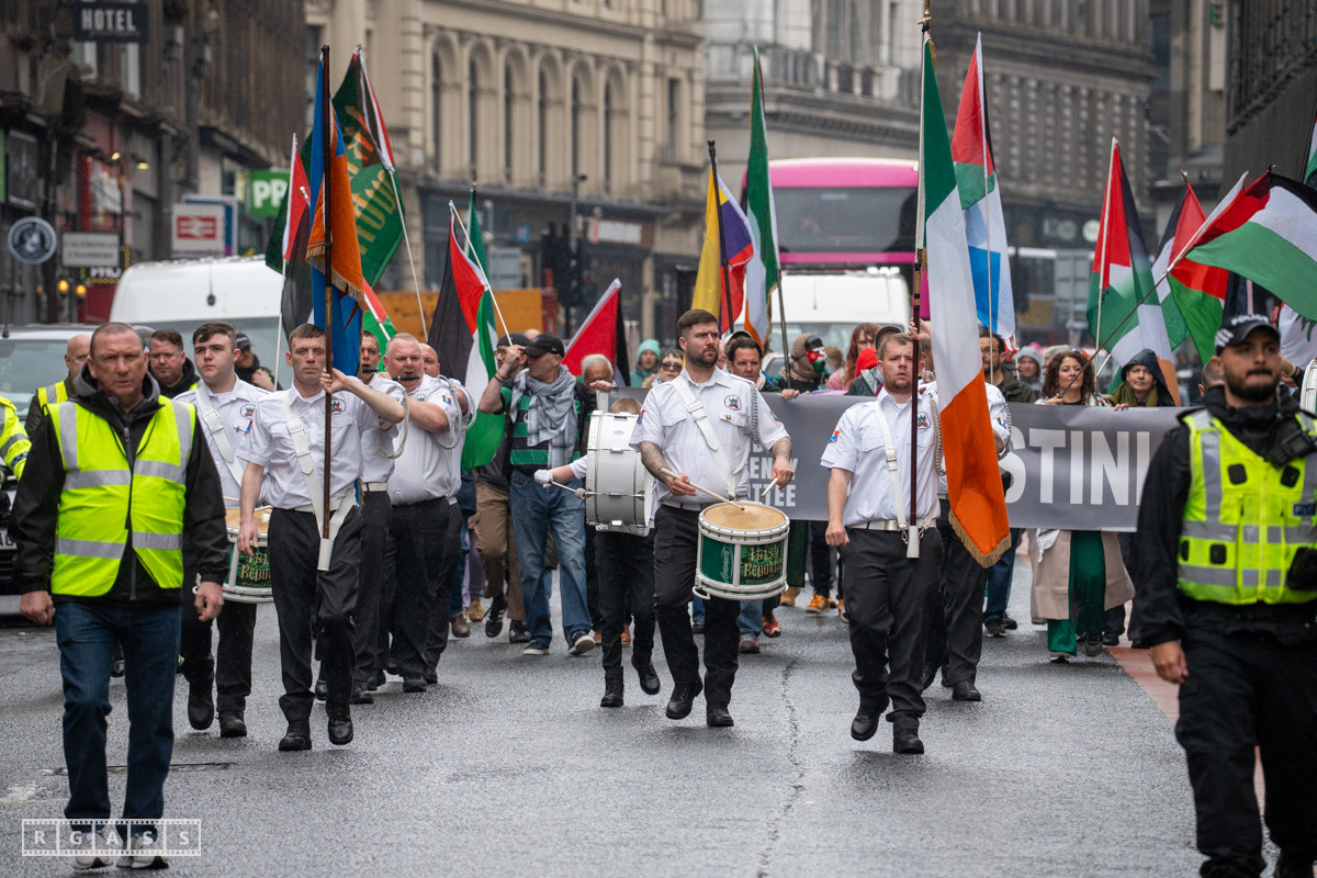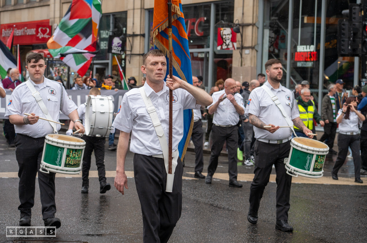 April 26th 2025, Glasgow, Scotland, UK: Republican March including a Palestinian Block, to commemorate the Easter Rising of 1916 by Irish republicans against British rule in Ireland.