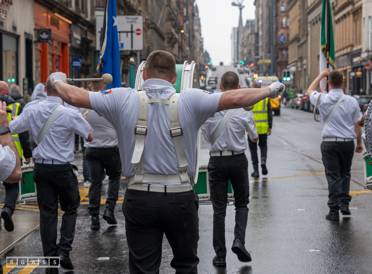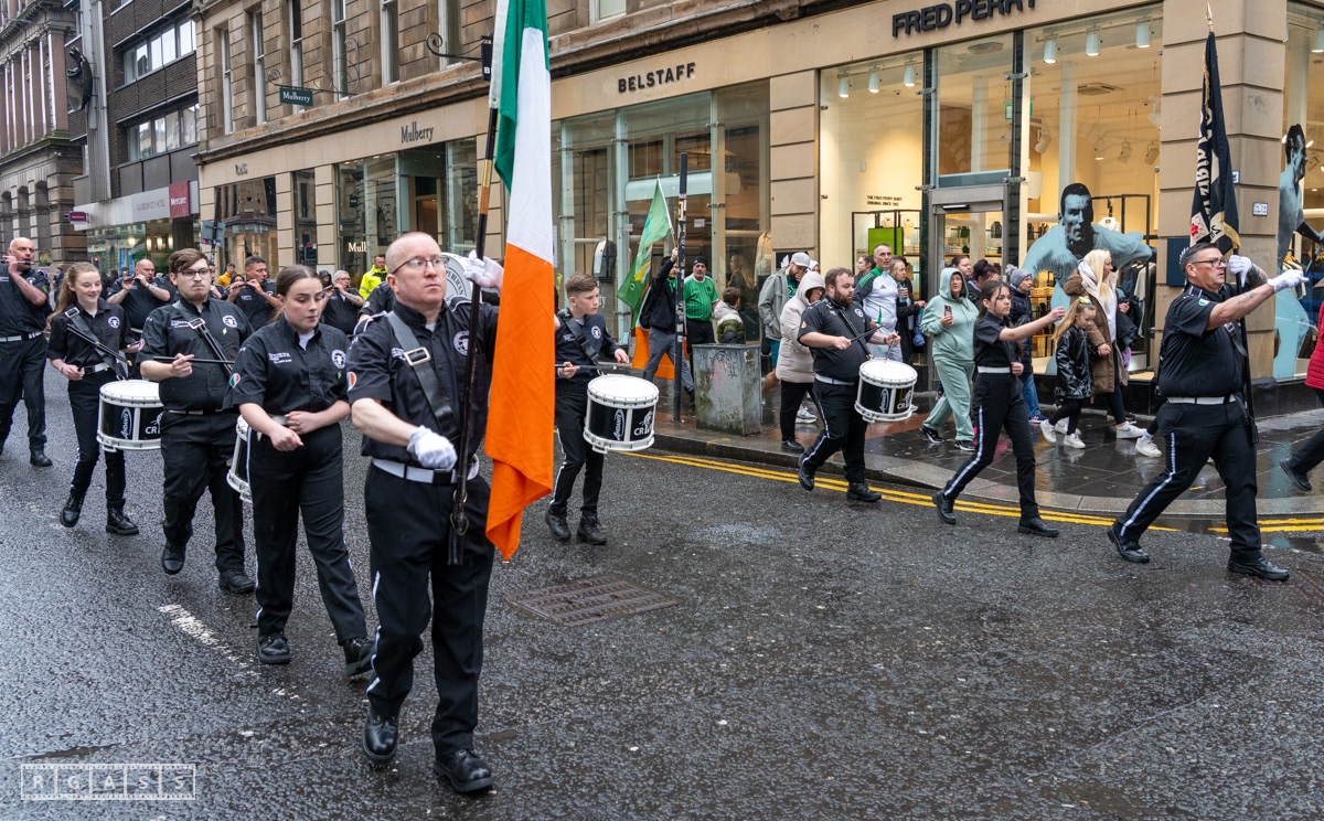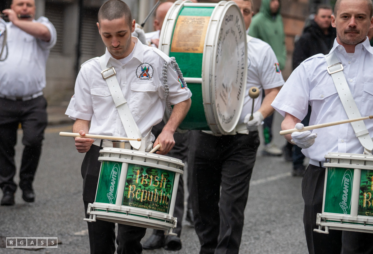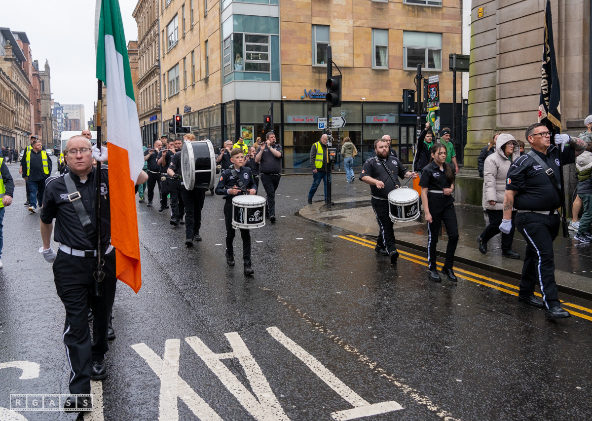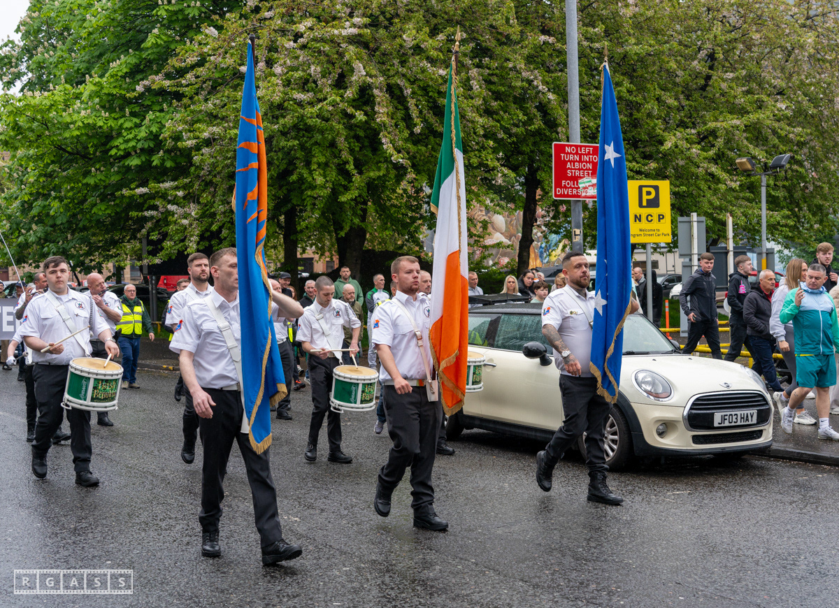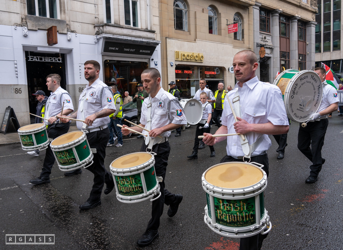 April 26th 2025, Glasgow, Scotland, UK: Republican March including a Palestinian Block, to commemorate the Easter Rising of 1916 by Irish republicans against British rule in Ireland.