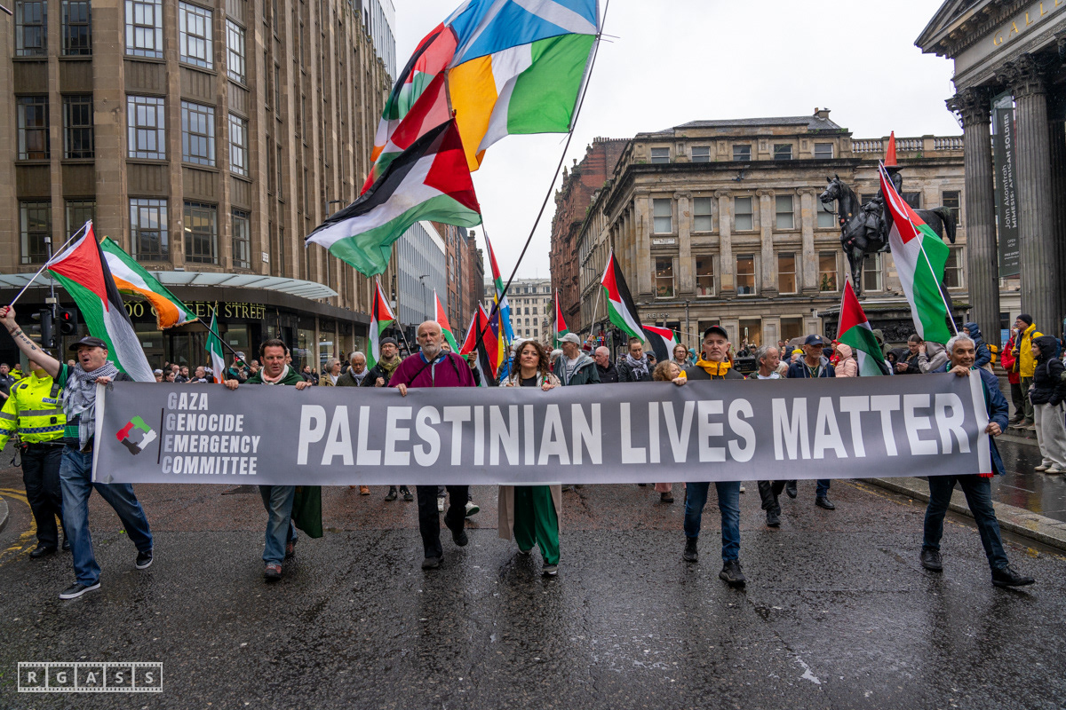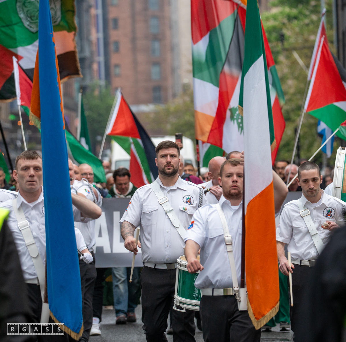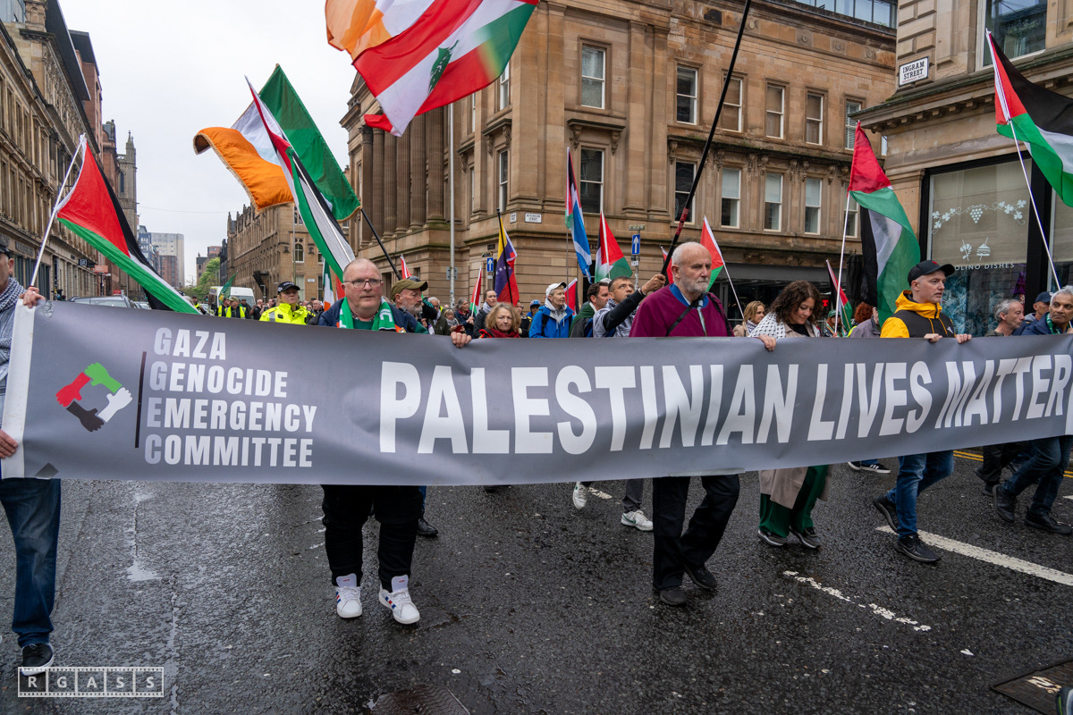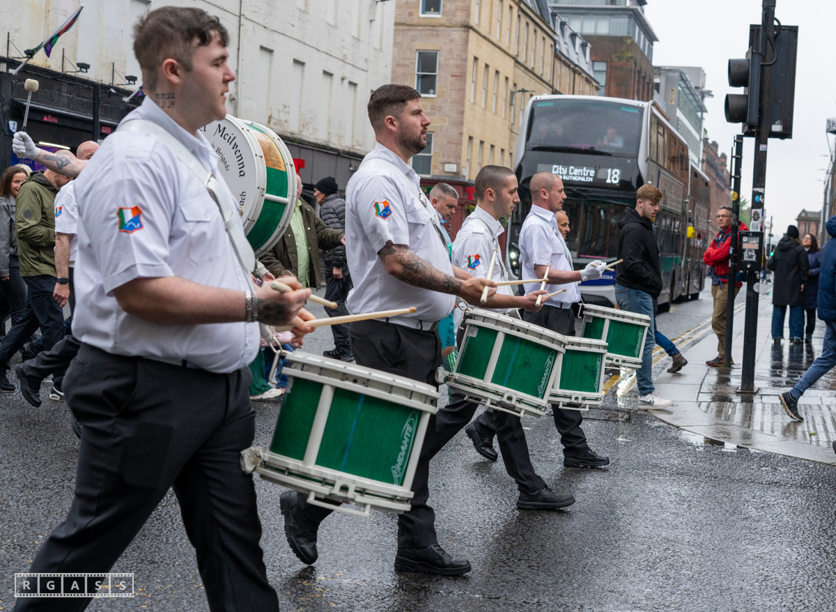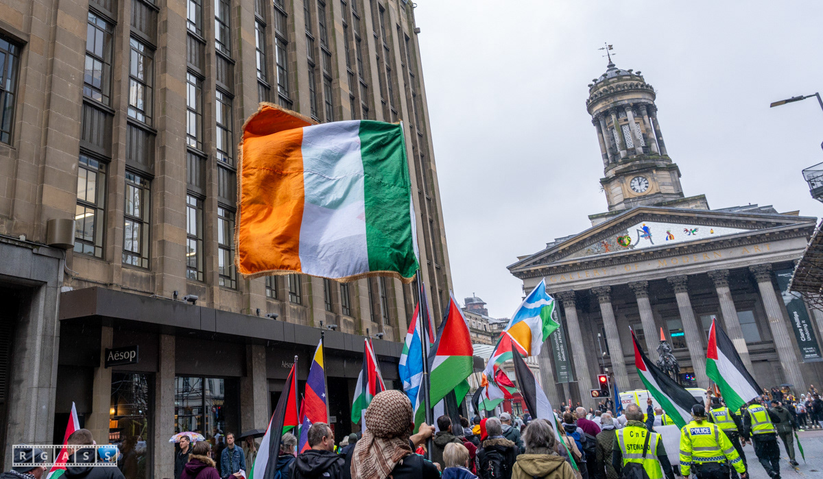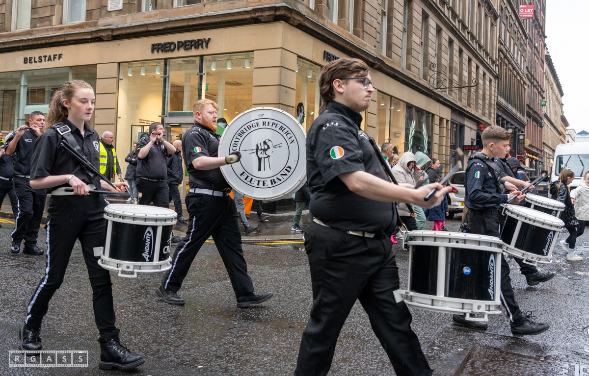 April 26th 2025, Glasgow, Scotland, UK: Republican March including a Palestinian Block, to commemorate the Easter Rising of 1916 by Irish republicans against British rule in Ireland.