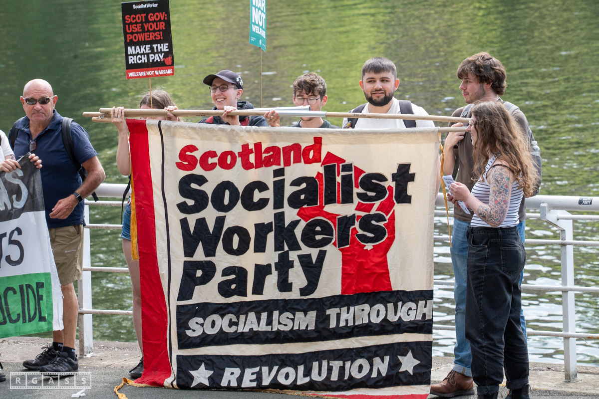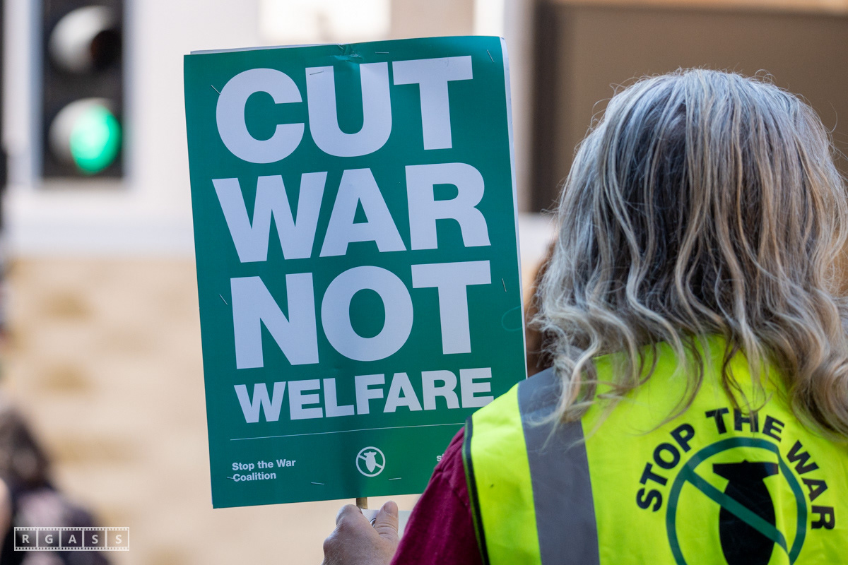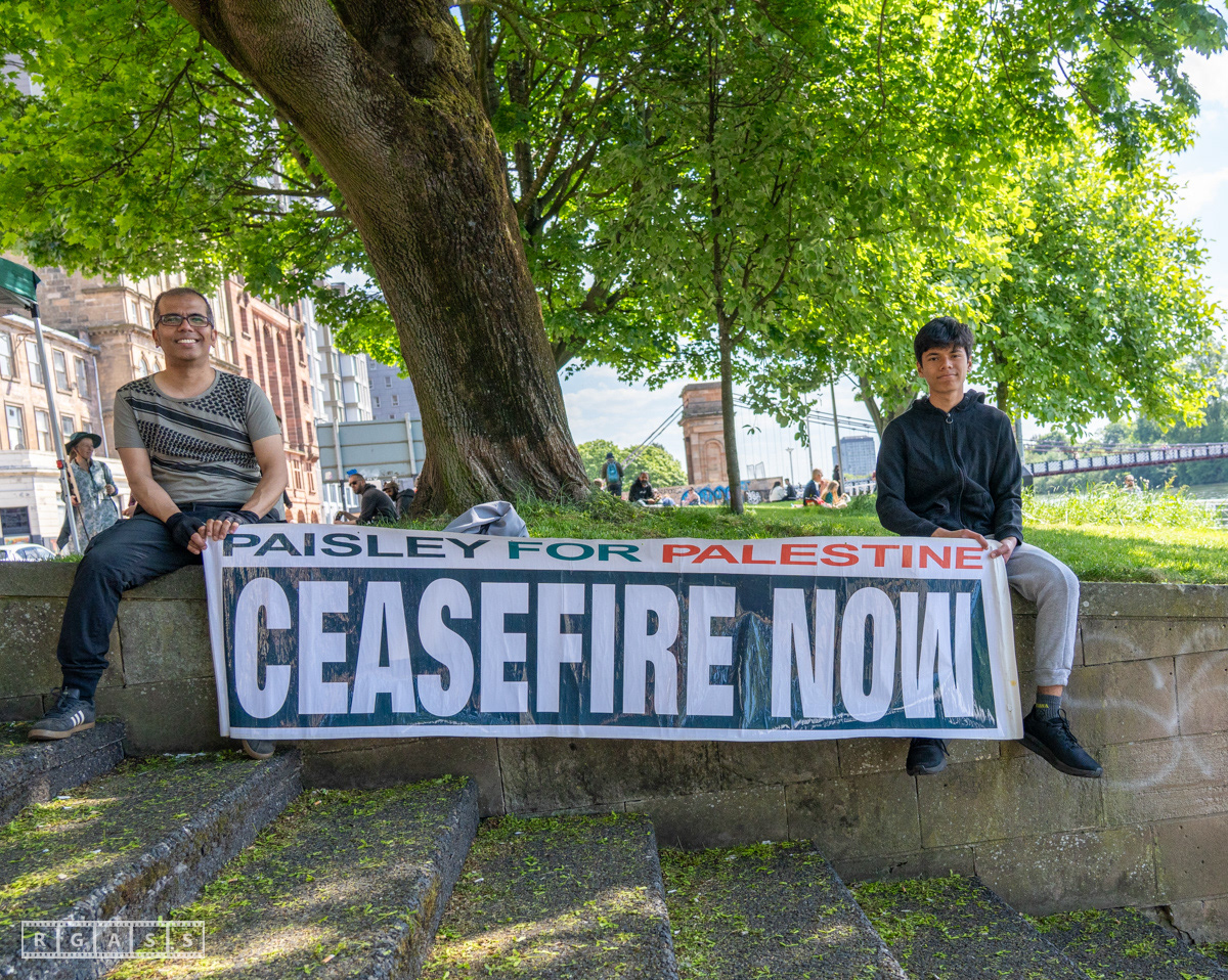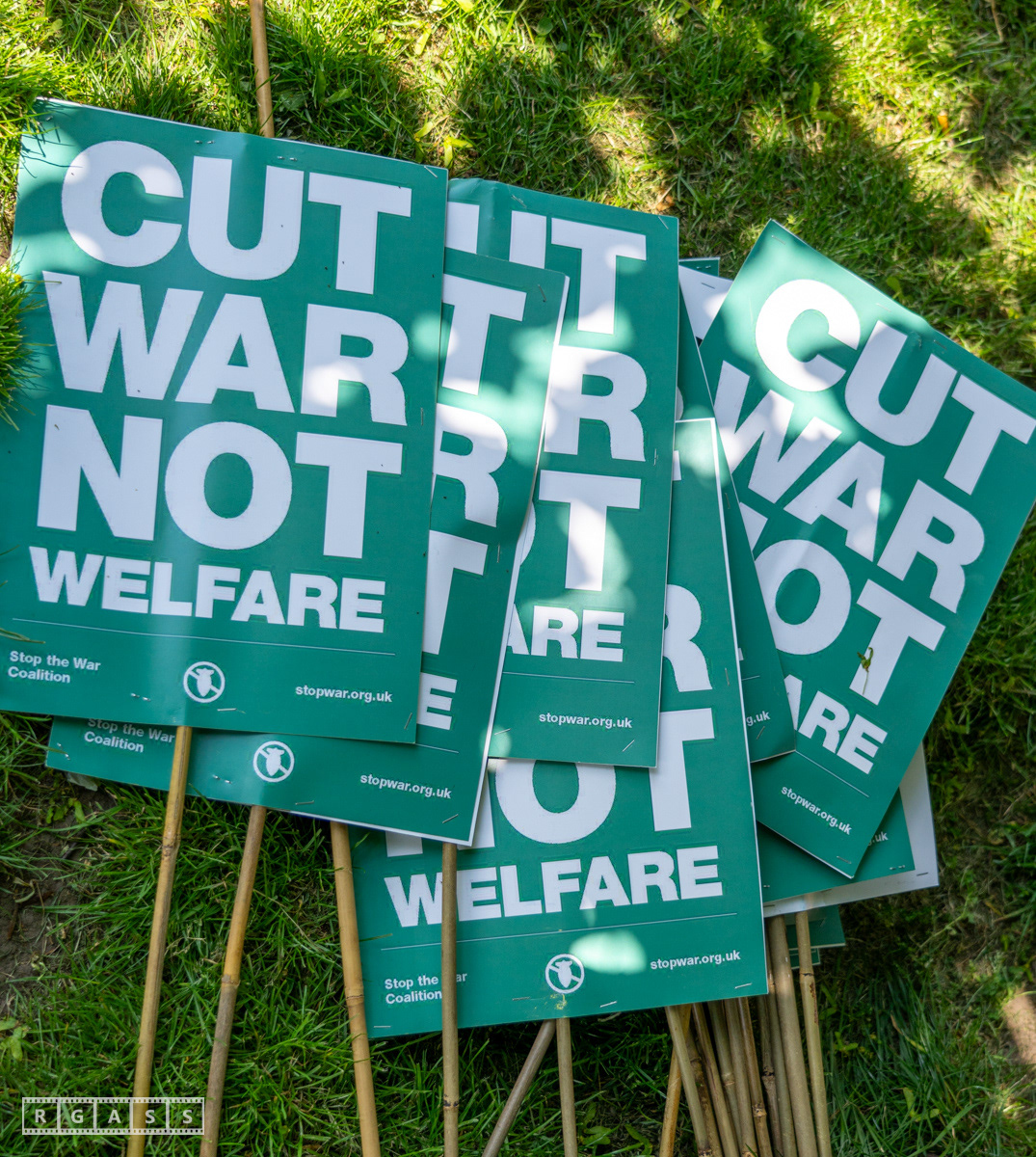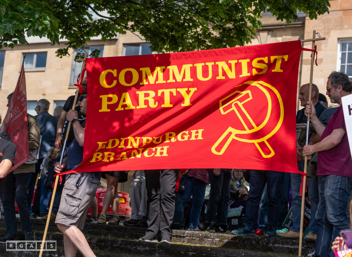 Glasgow, UK. 10 May 2025. Scottish CND and Glasgow Stop the War Coalition’s “Welfare Not Warfare” march and demonstration from the Buchannan Steps to La Pasionaria the Spanish civil war memorial.