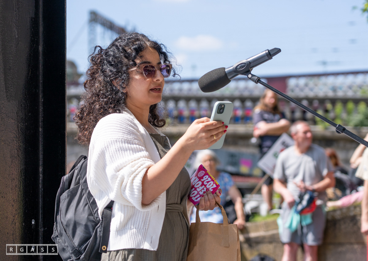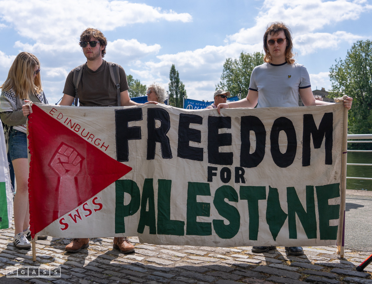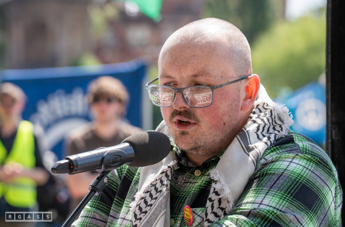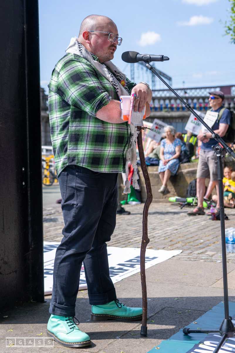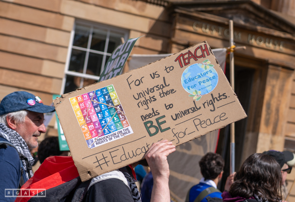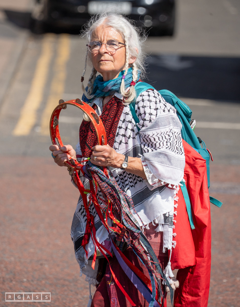 Glasgow, UK. 10 May 2025. Scottish CND and Glasgow Stop the War Coalition’s “Welfare Not Warfare” march and demonstration from the Buchannan Steps to La Pasionaria the Spanish civil war memorial.